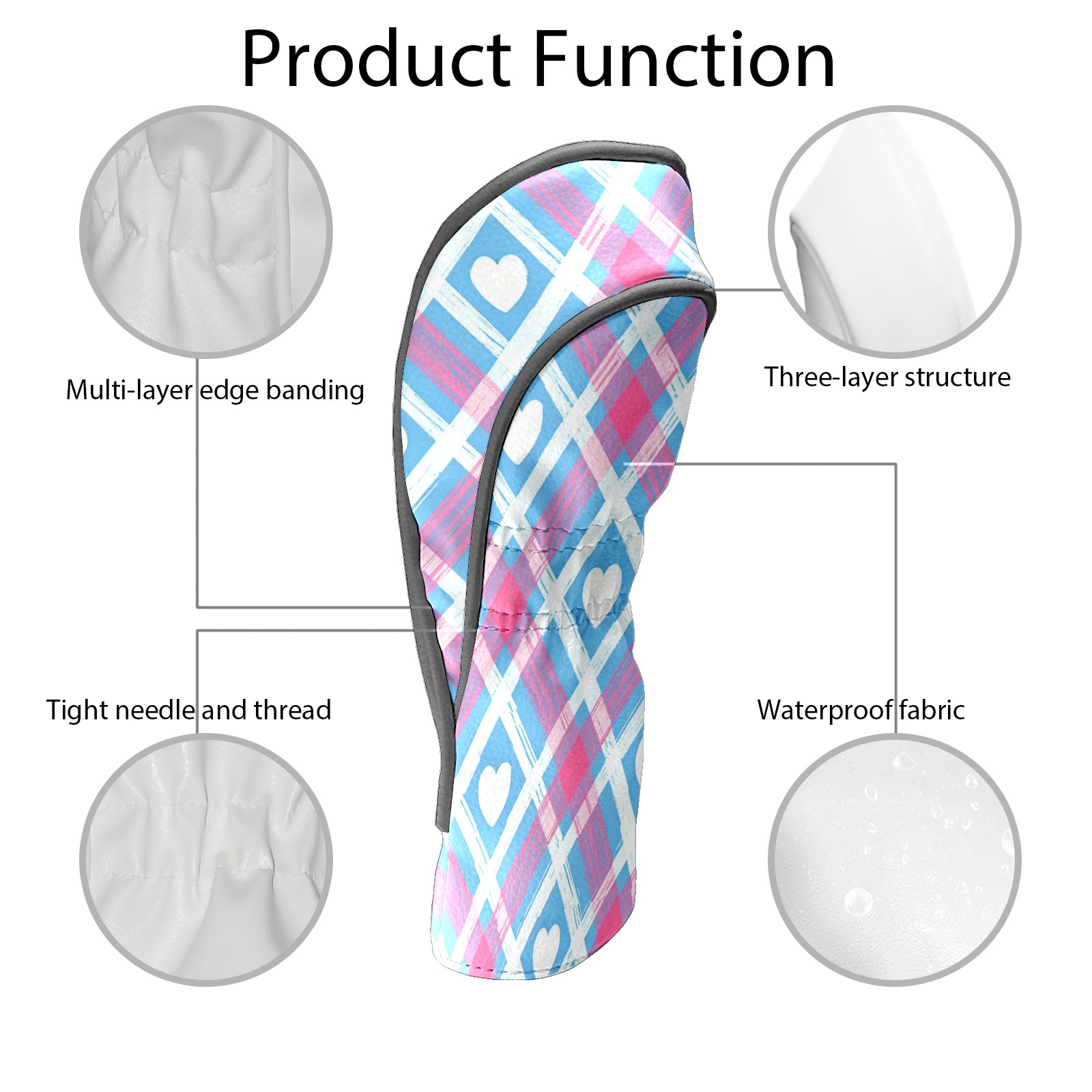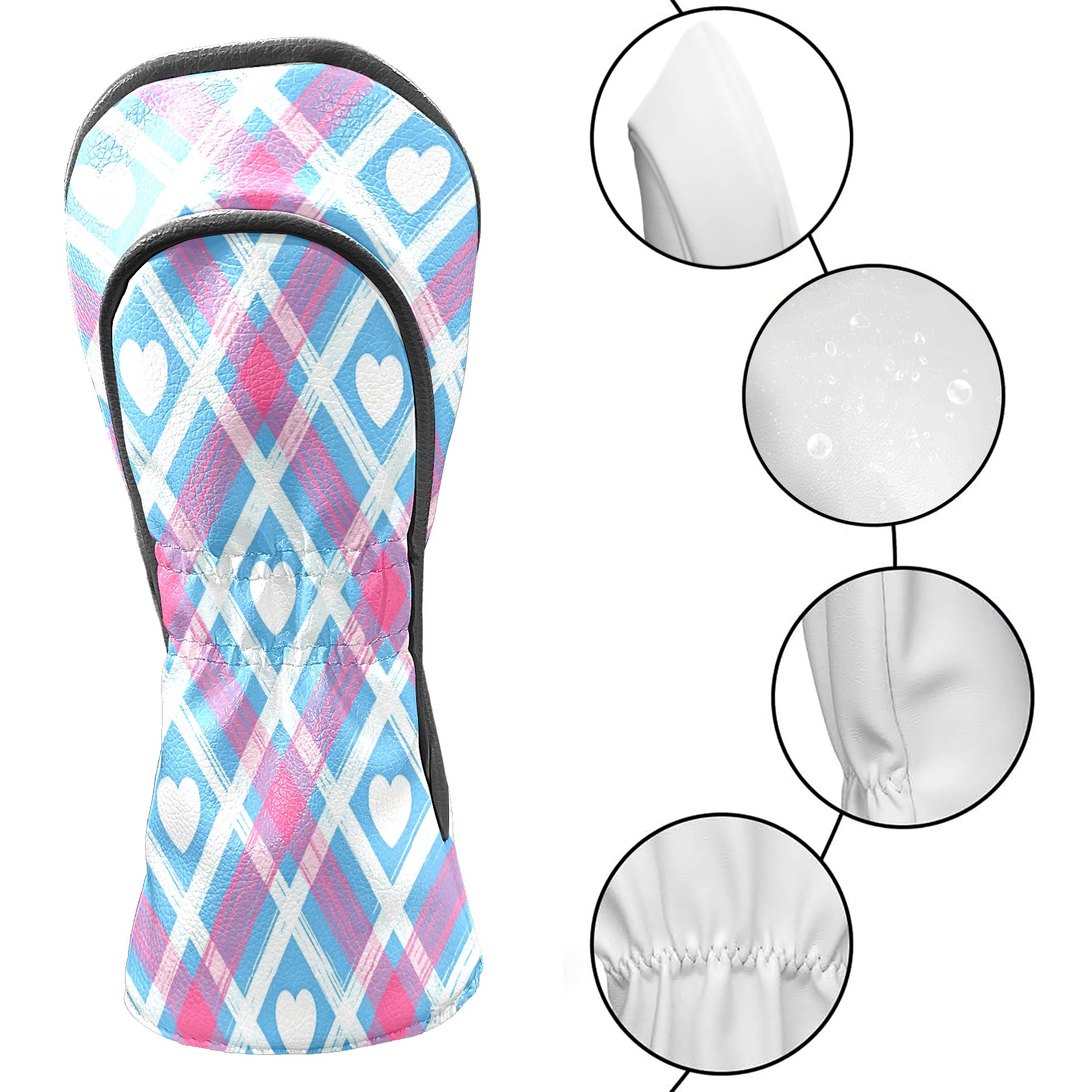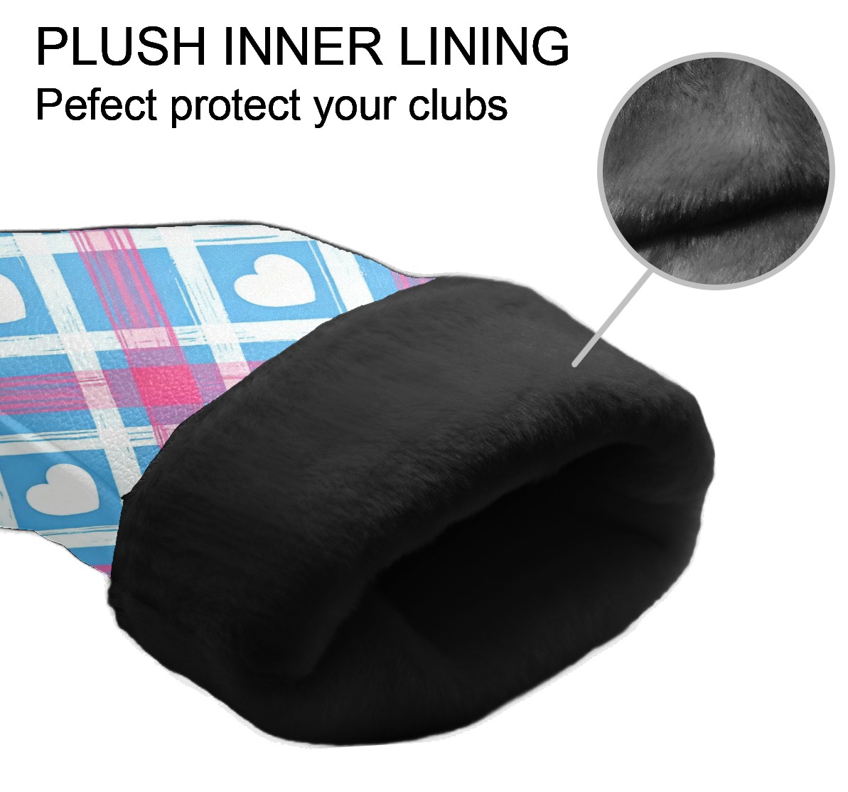 Golf Club Covers PU Leather Waterproof,Golf Club Head Covers for Fairway Woods and Hybrids Line Heart,Unisex Suitable for Most Brands