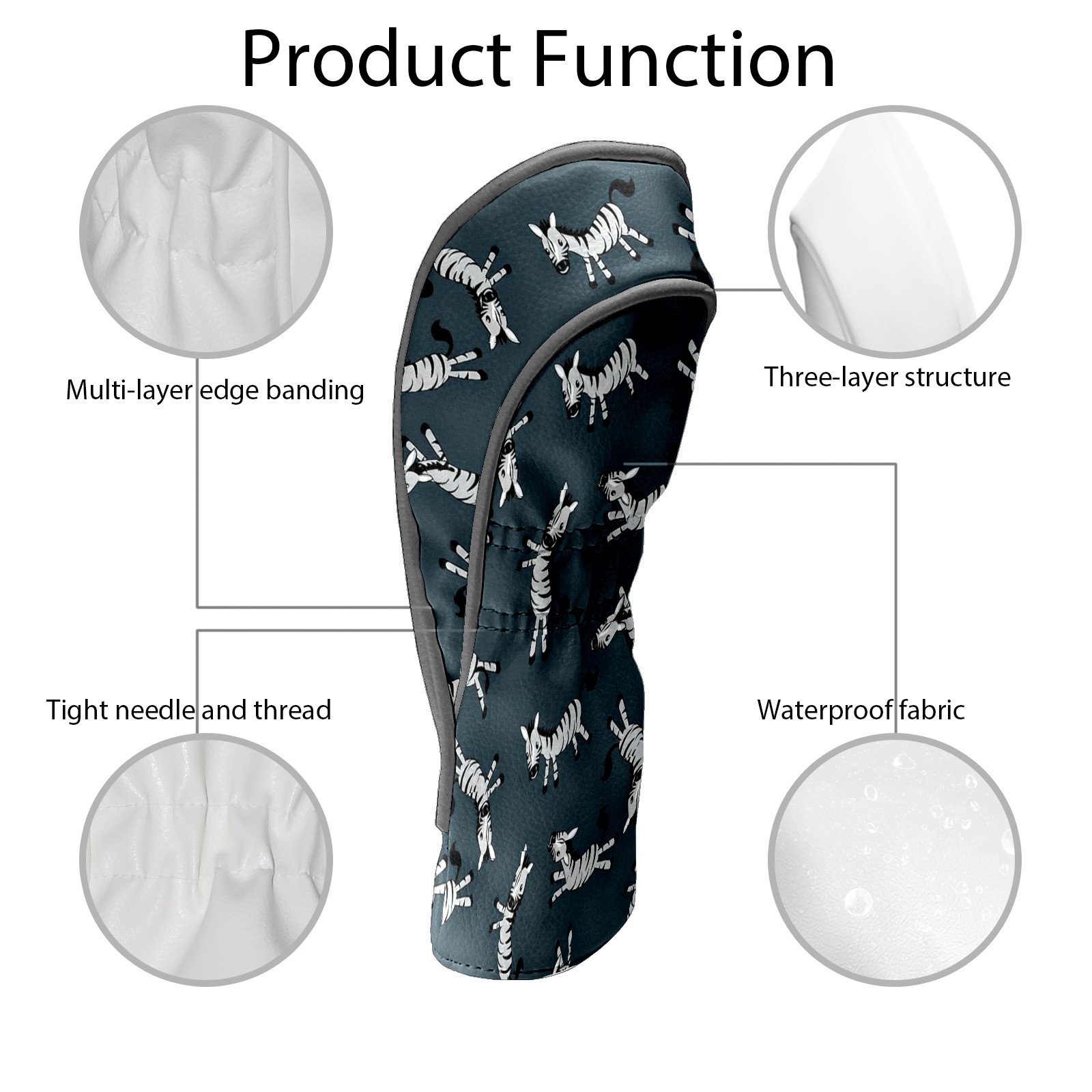 Golf Club Covers PU Leather Waterproof,Golf Club Head Covers for Fairway Woods and Hybrids Cute Cartoon Zebra,Unisex Suitable for Most Brands