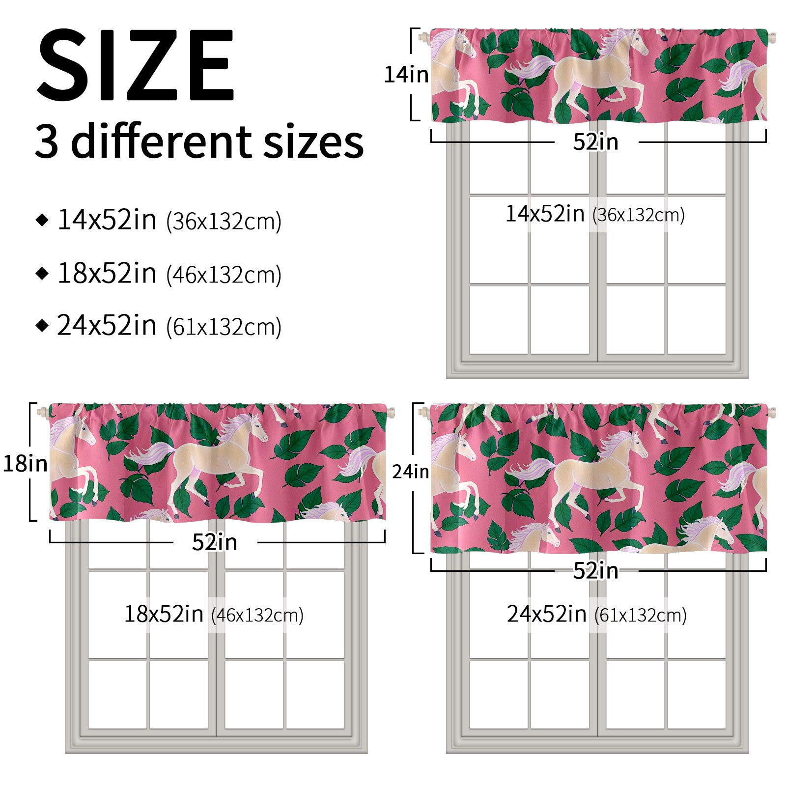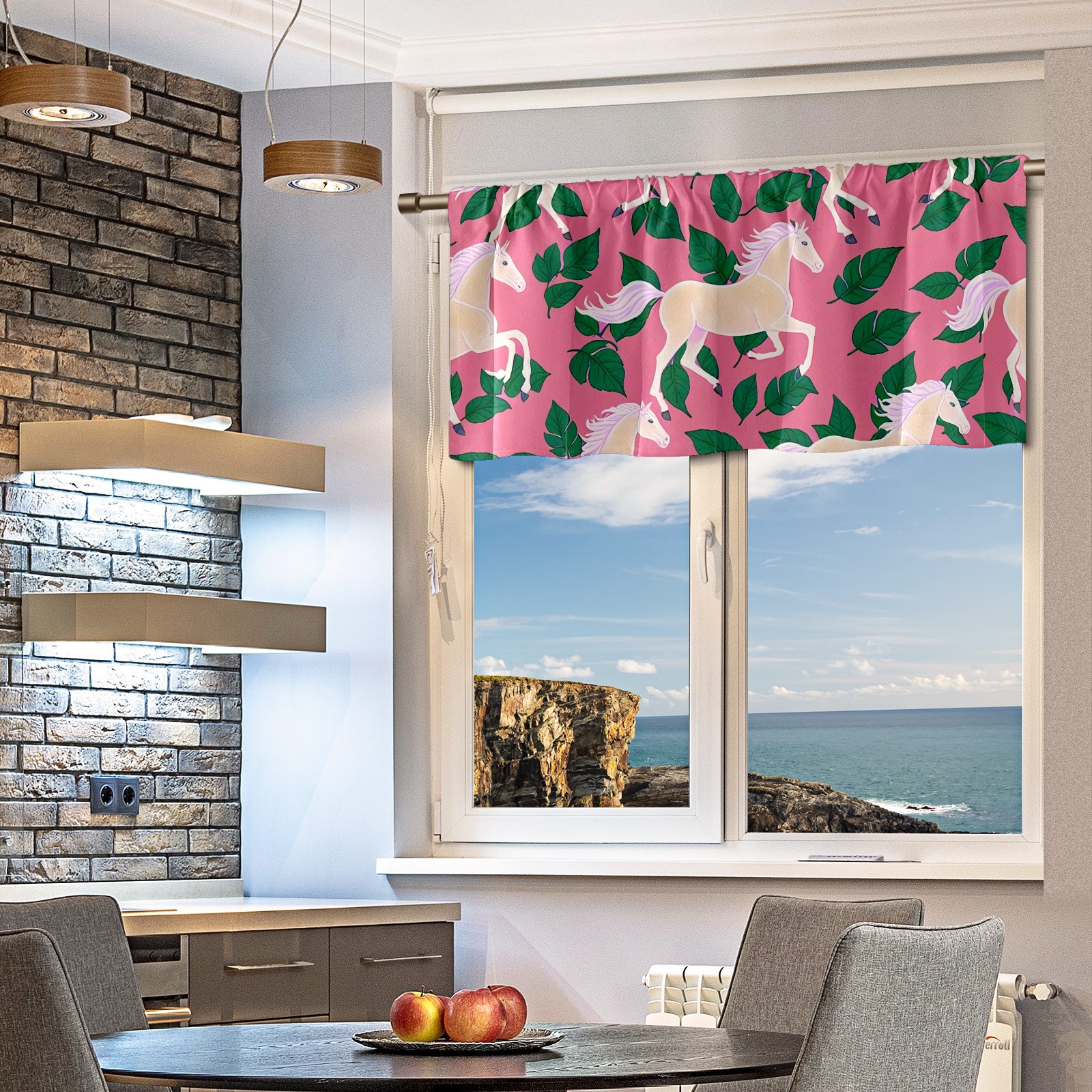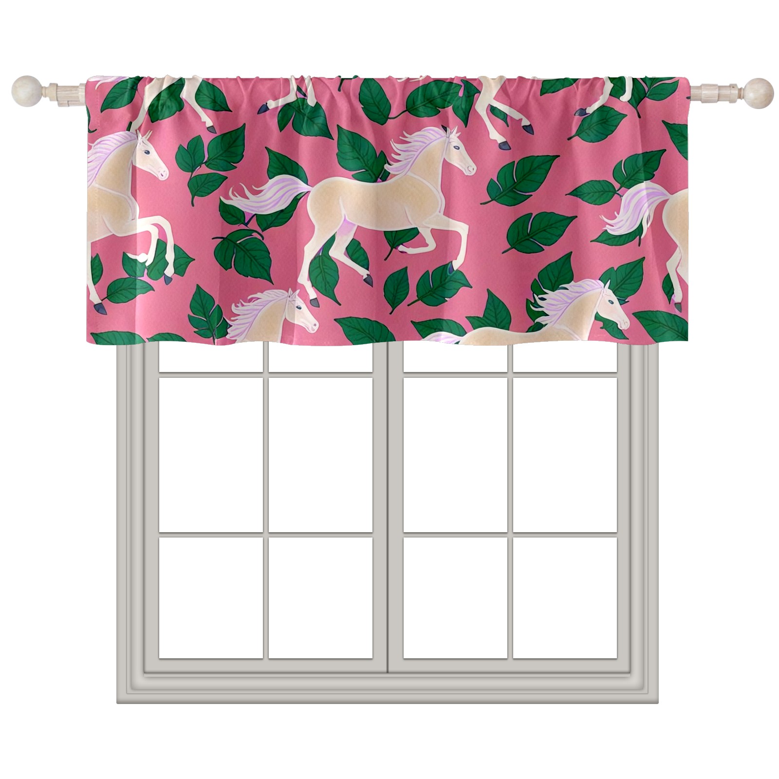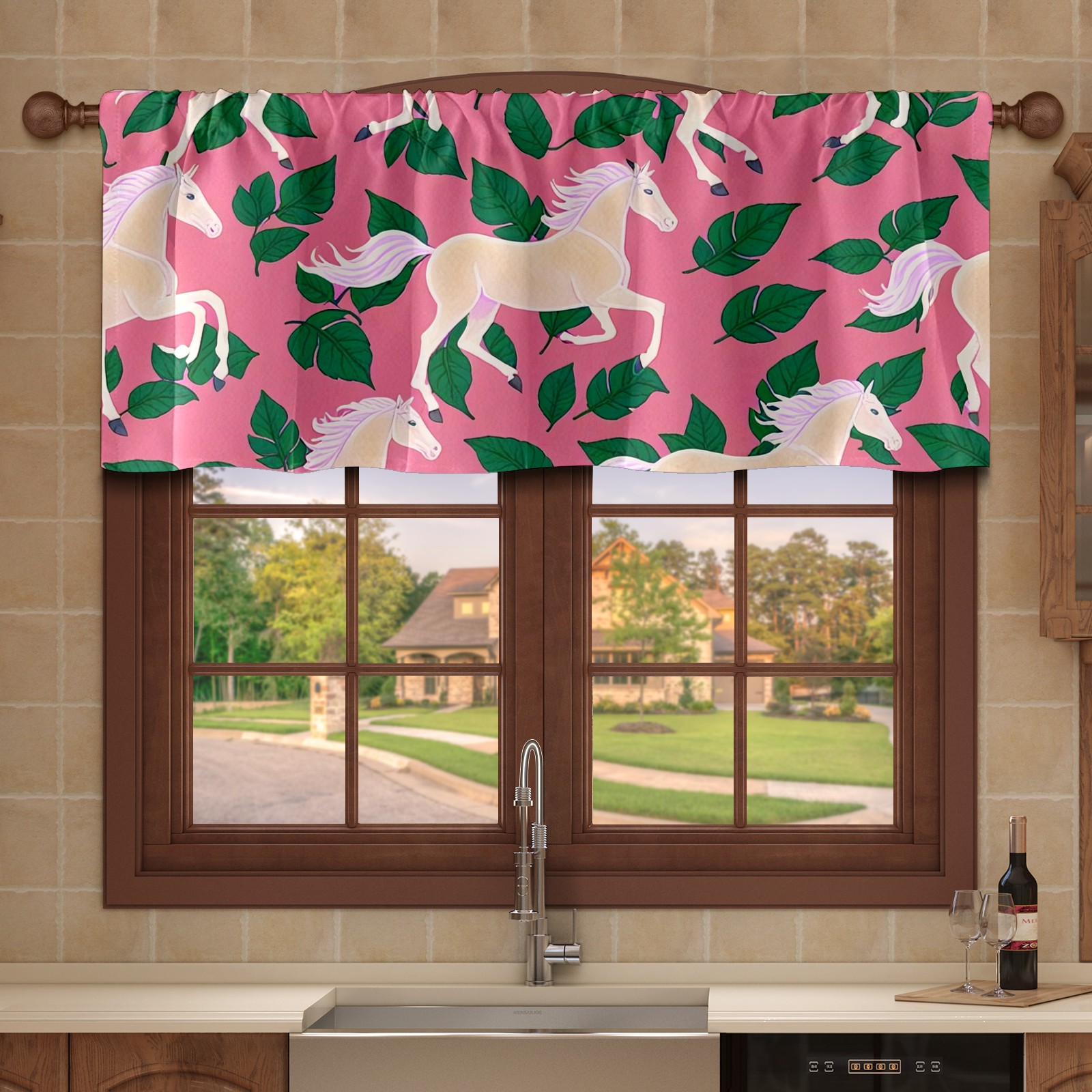 MSINMKOK Valances for Windows Kitchen Curtain Valances Rod Pocket Blackout Valances Short Window Treatment Curtains for Bathroom Living Room 52x14 inch (Horse Silhouettes Pink)
