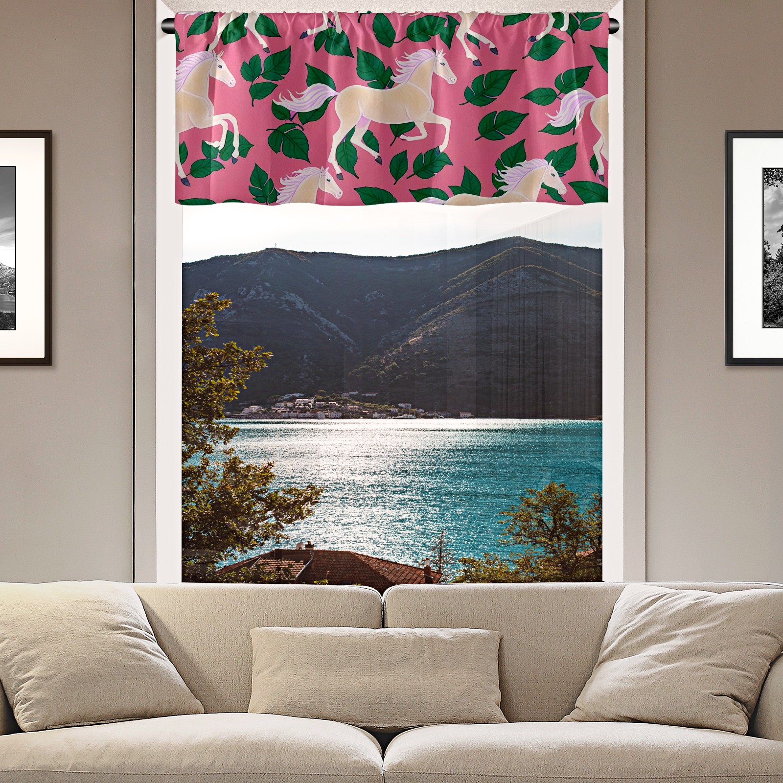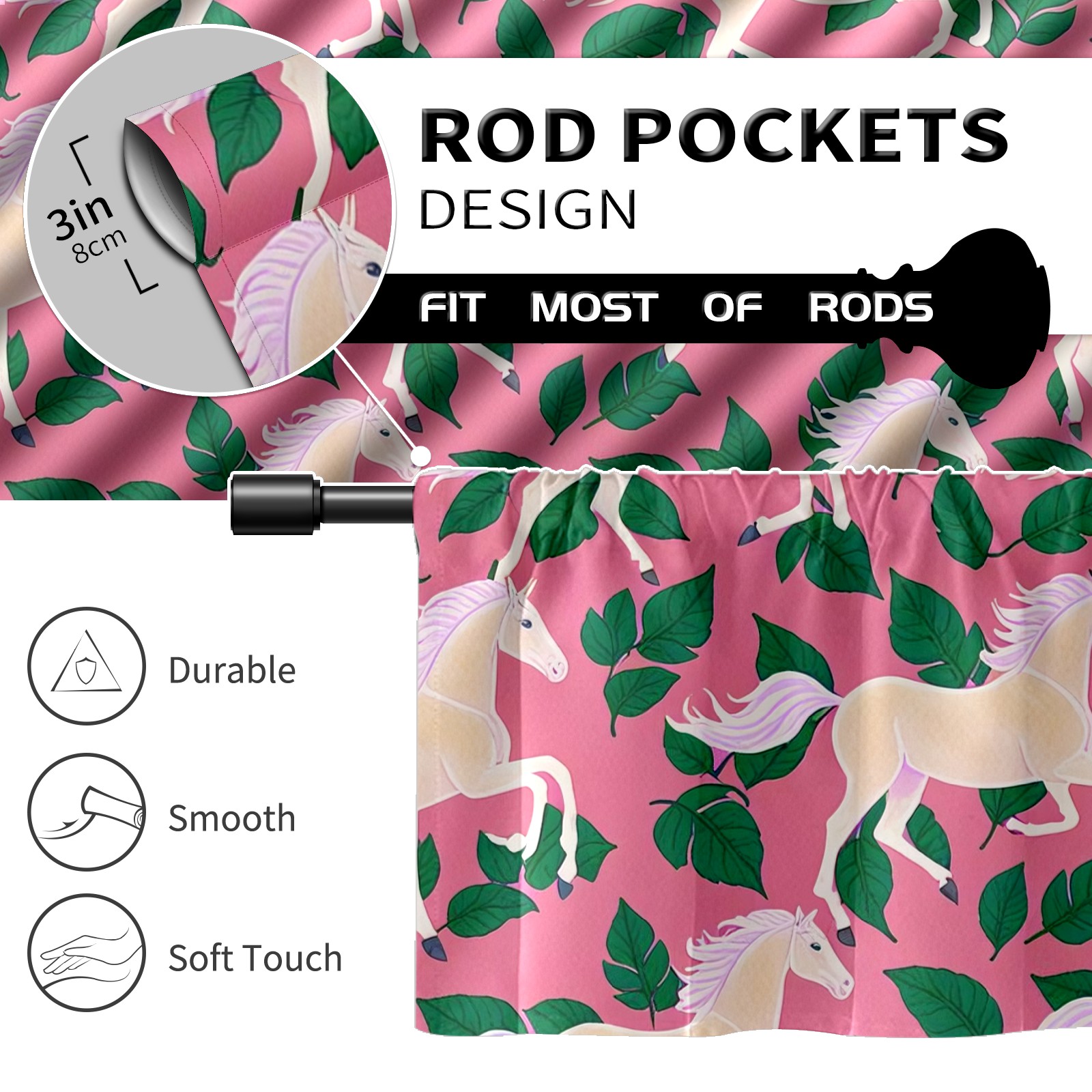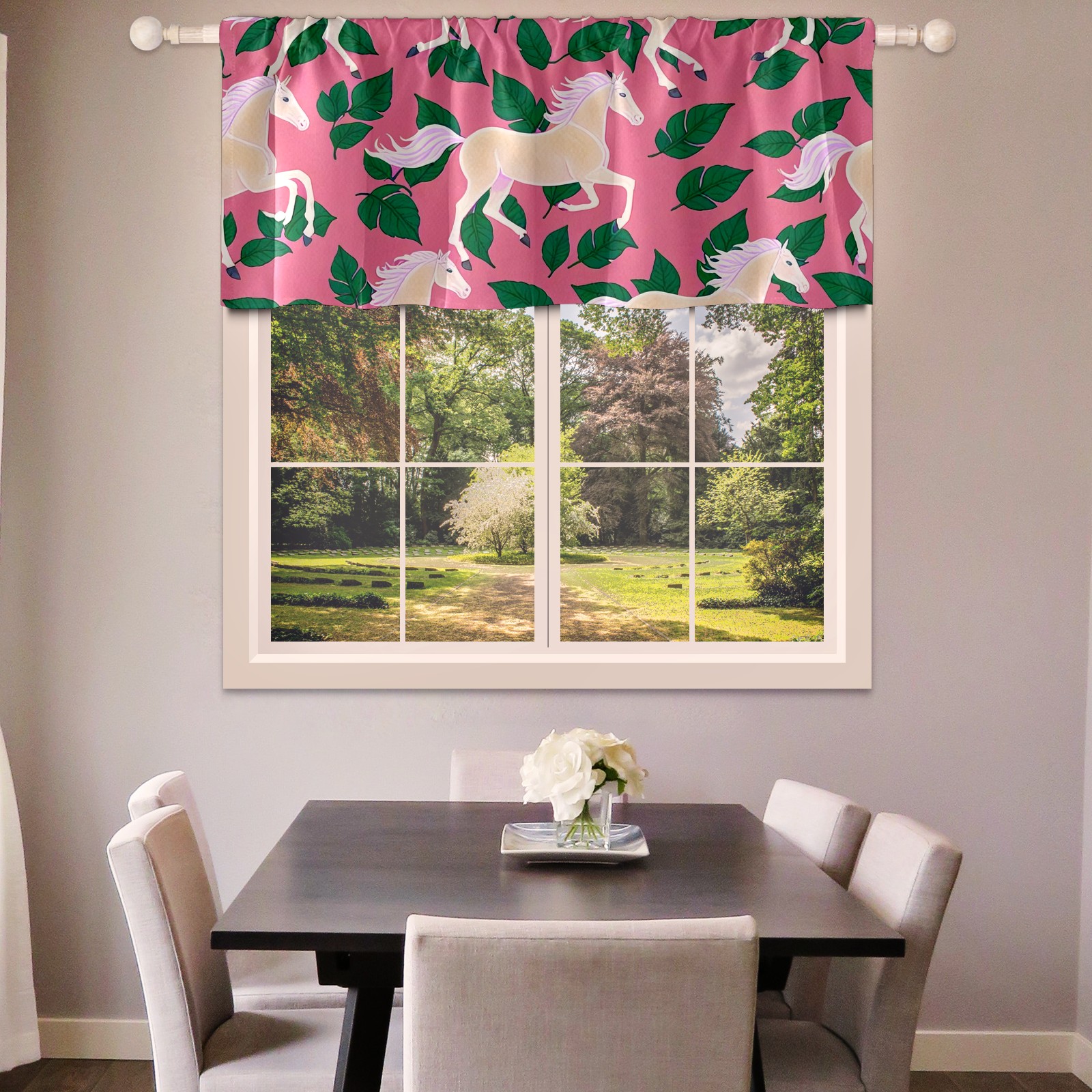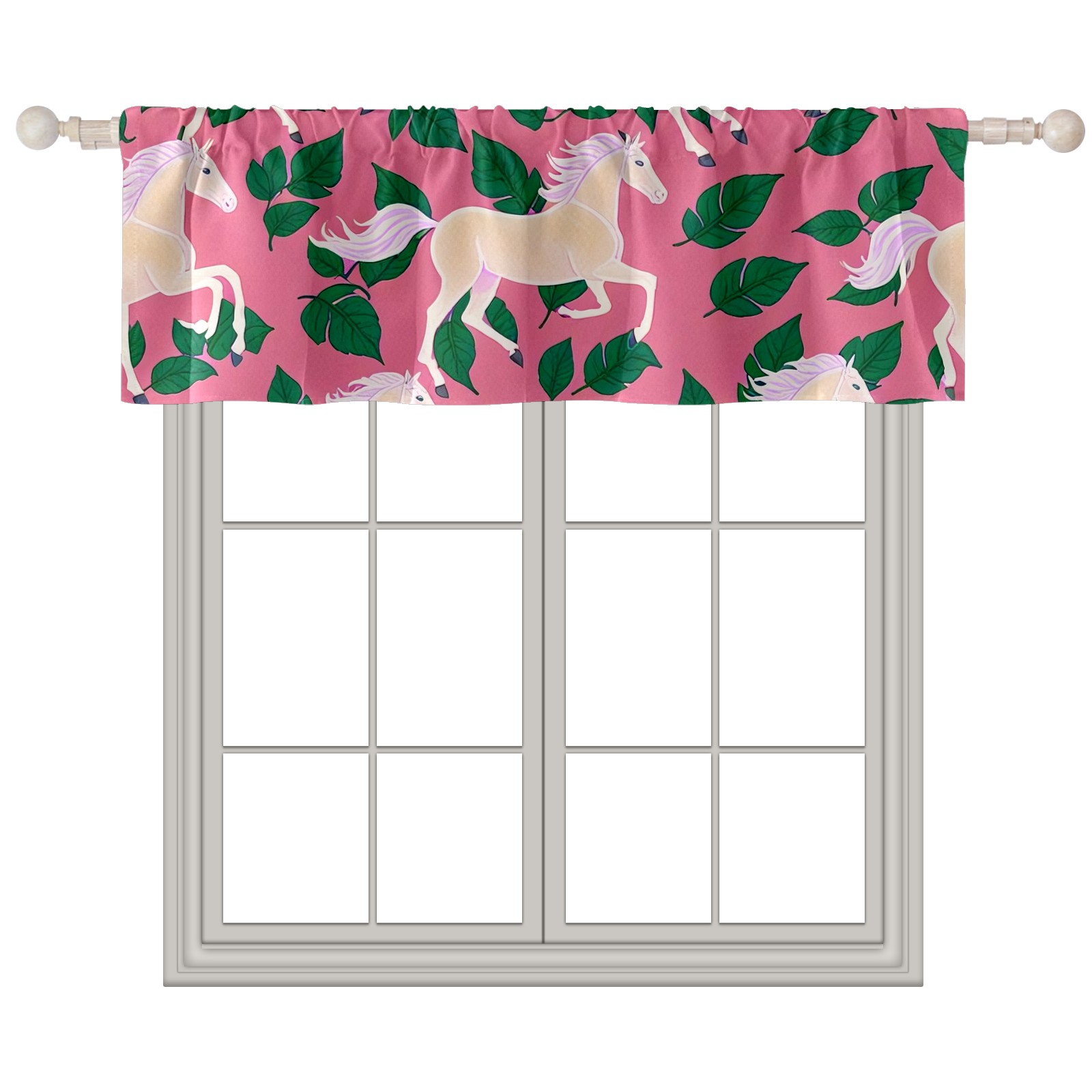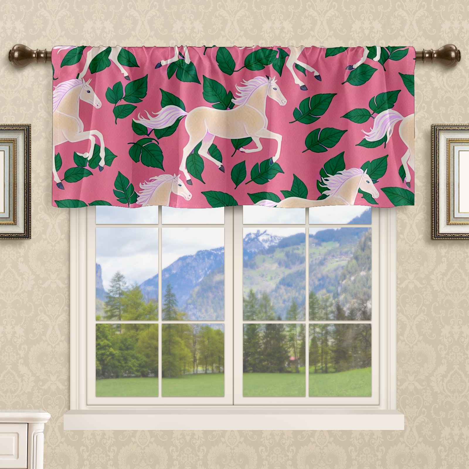 MSINMKOK Valances for Windows Kitchen Curtain Valances Rod Pocket Blackout Valances Short Window Treatment Curtains for Bathroom Living Room 52x14 inch (Horse Silhouettes Pink)