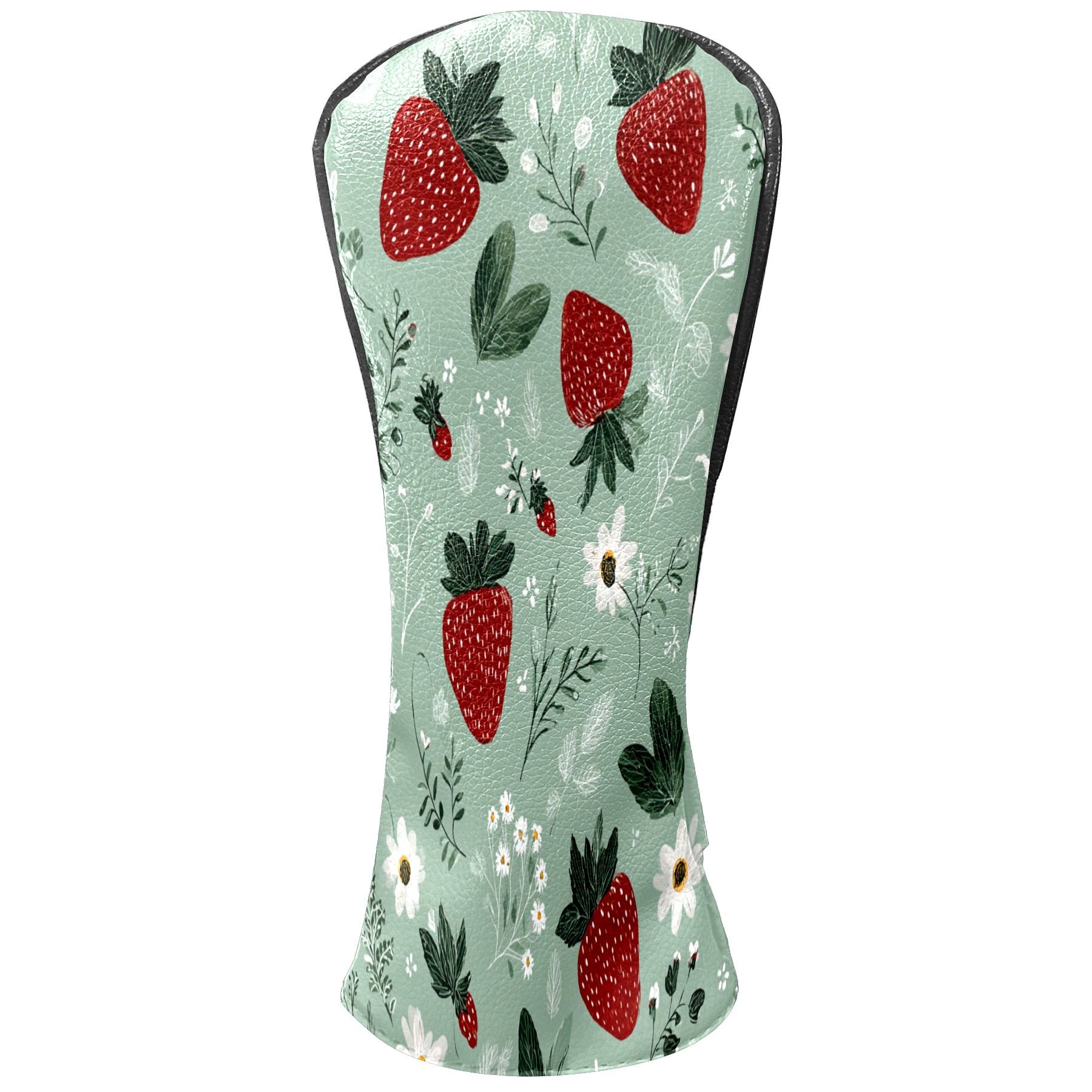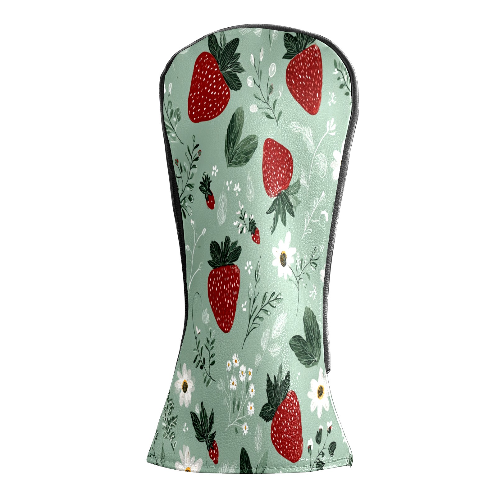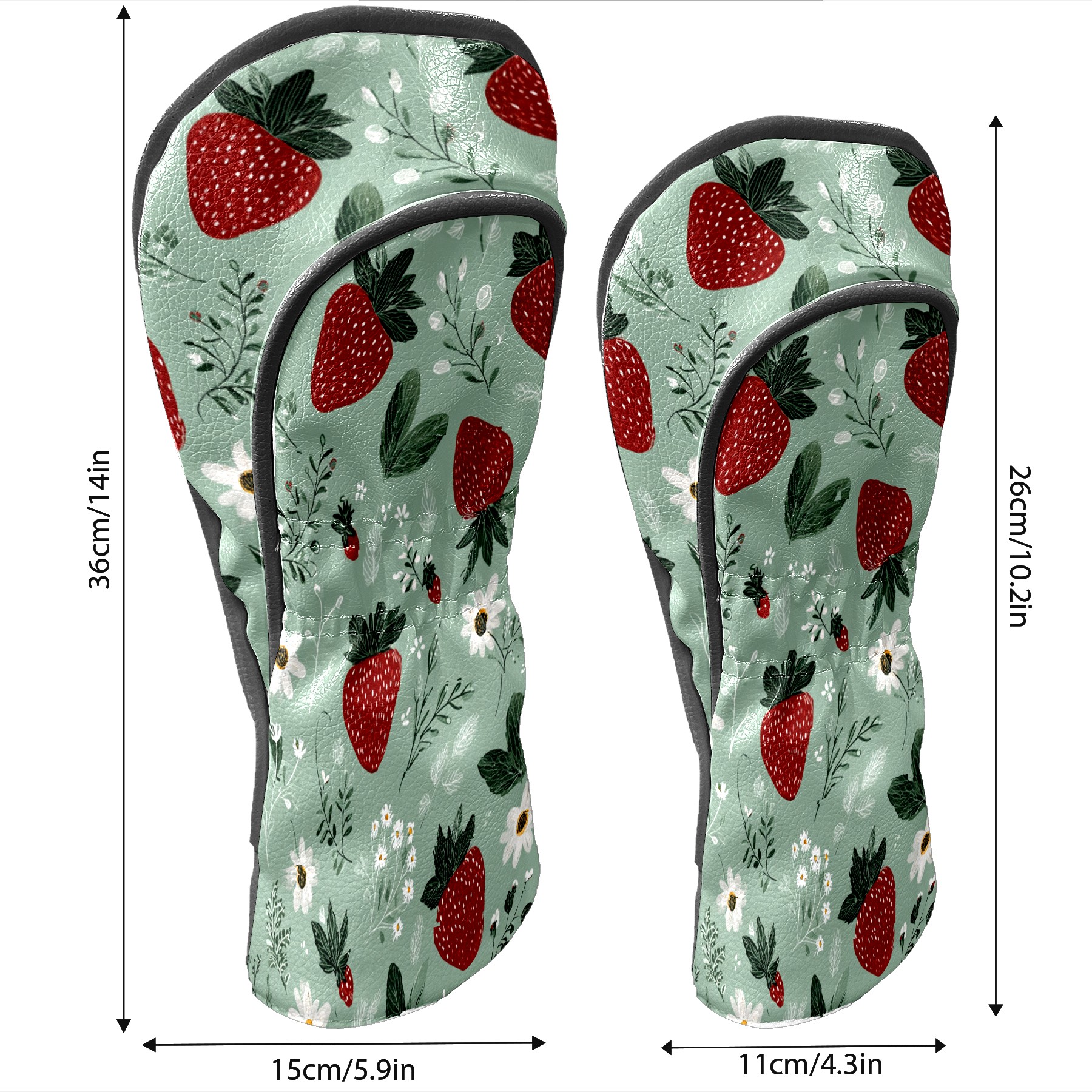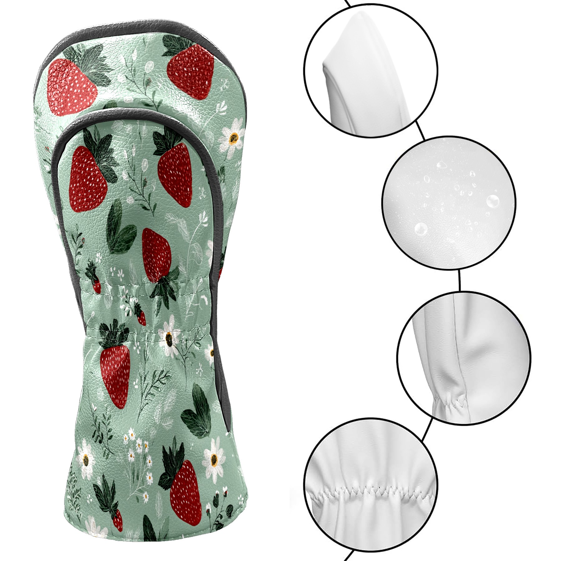 Golf Club Covers, Green Strawberry Premium PU Leather Driver Hybrid Putter Head Covers with Velvet Lining, Waterproof Golf Gifts for Men Women