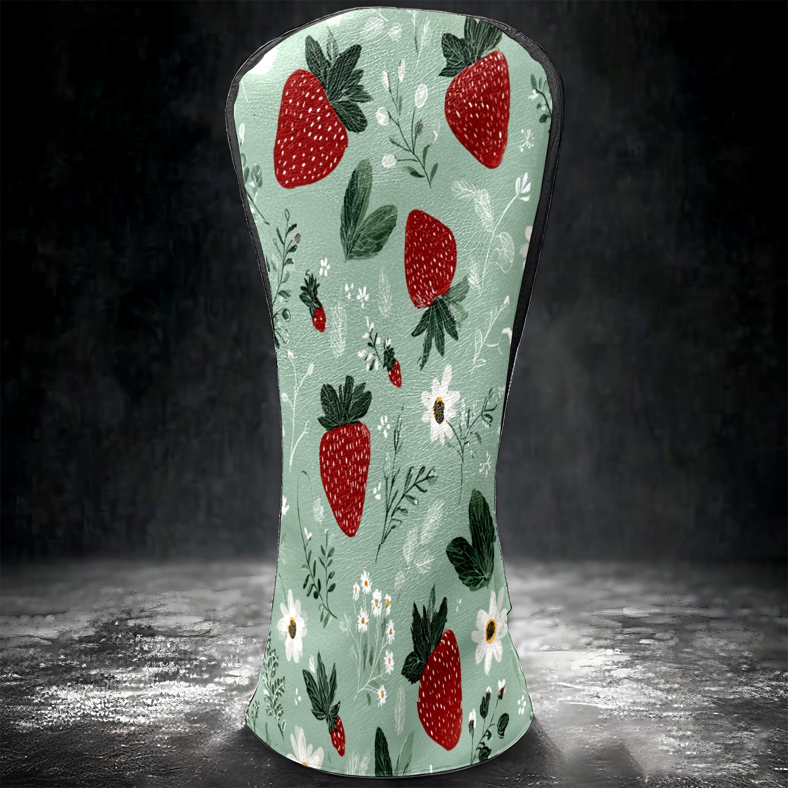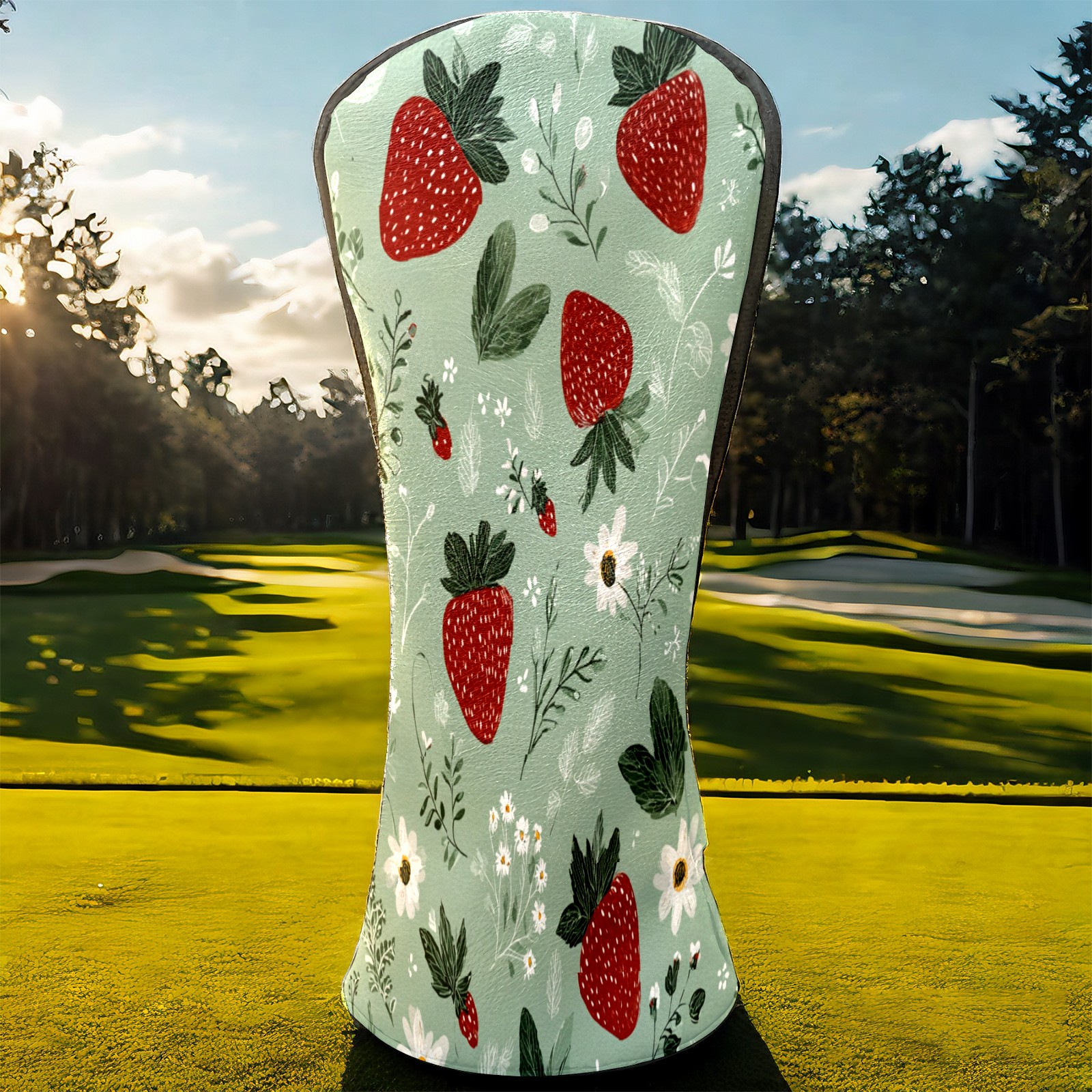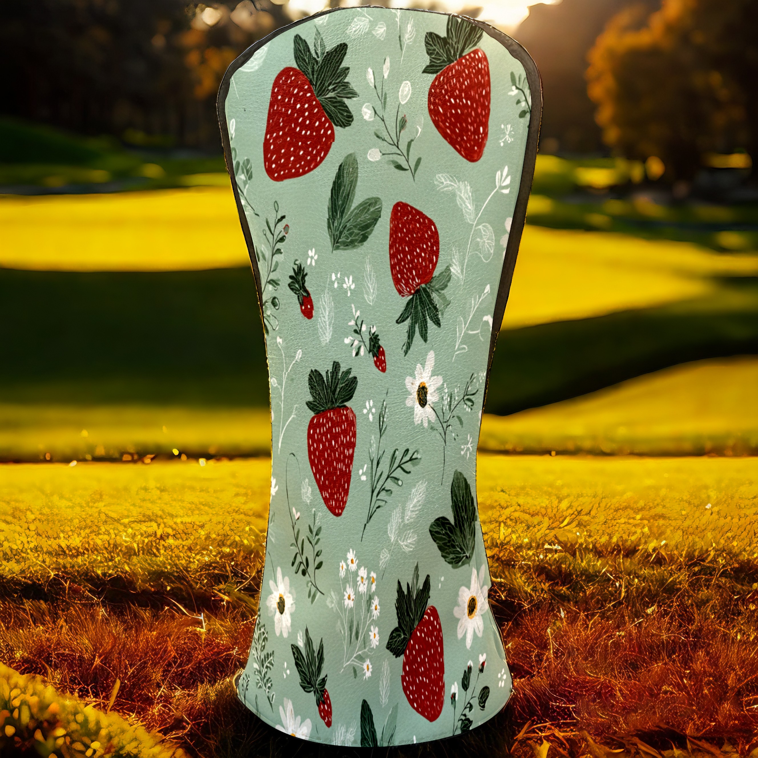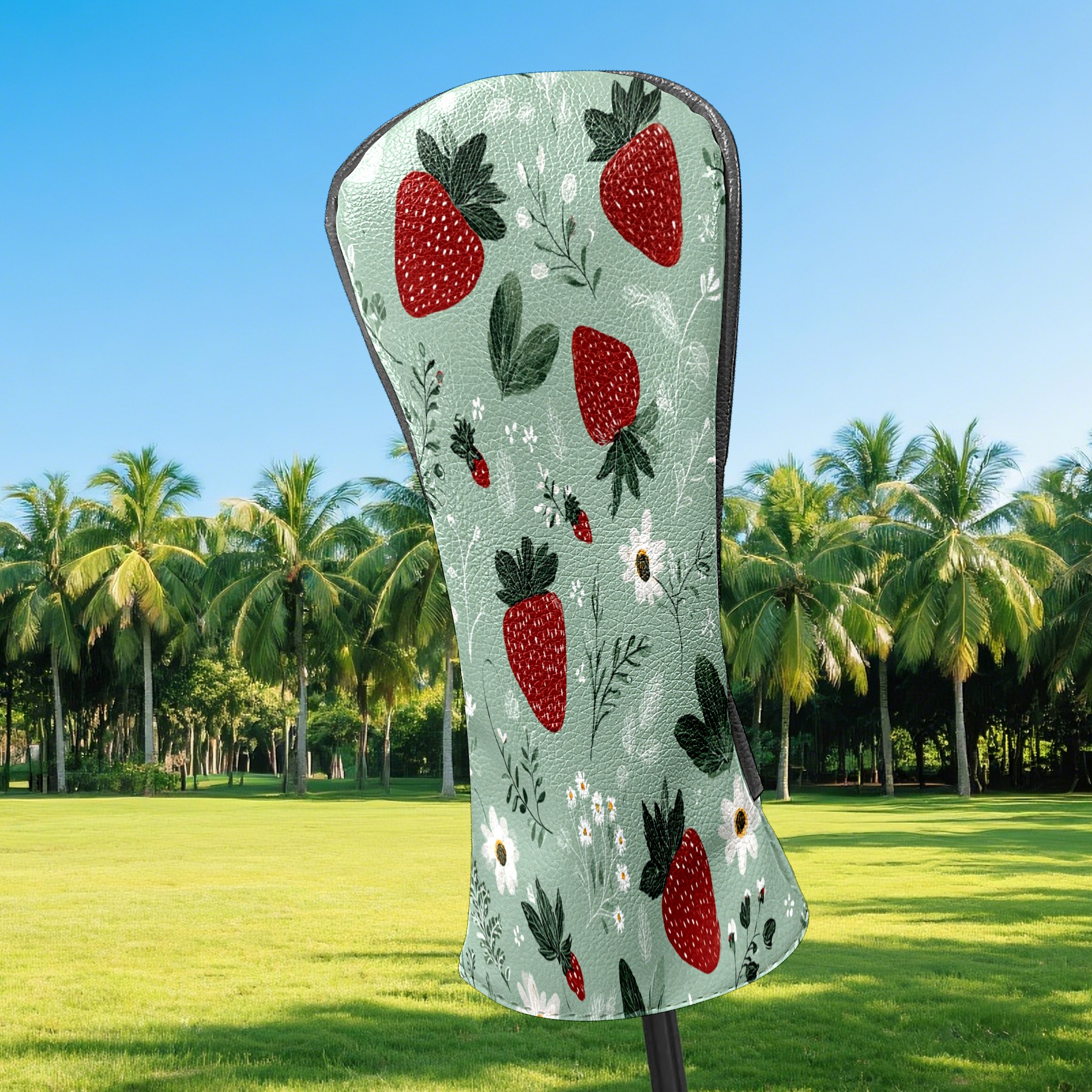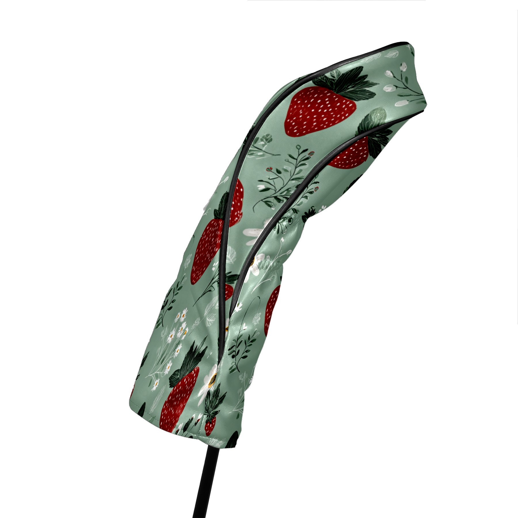 Golf Club Covers, Green Strawberry Premium PU Leather Driver Hybrid Putter Head Covers with Velvet Lining, Waterproof Golf Gifts for Men Women