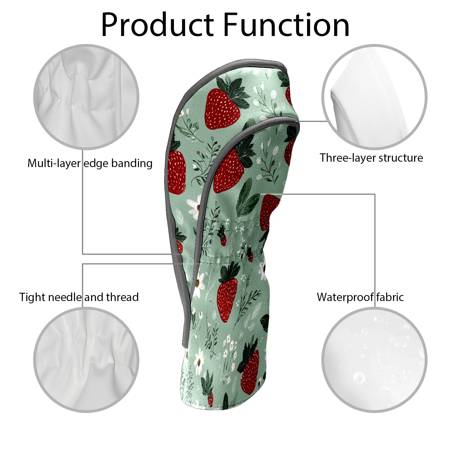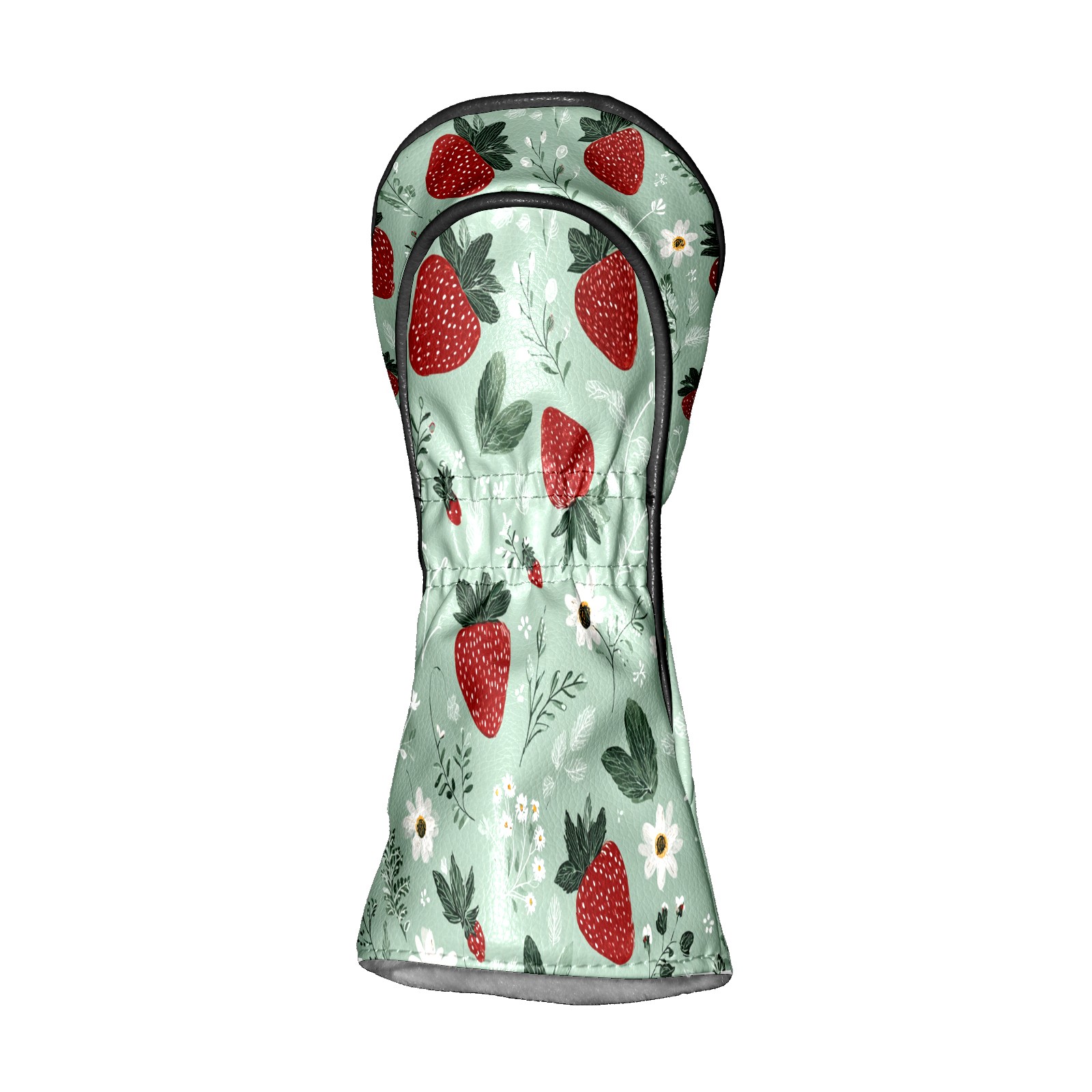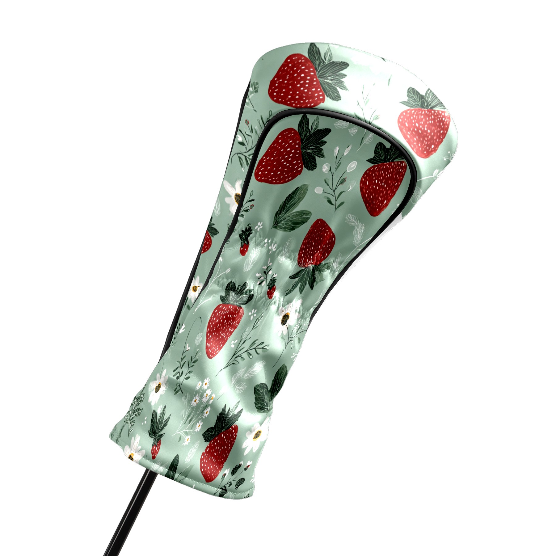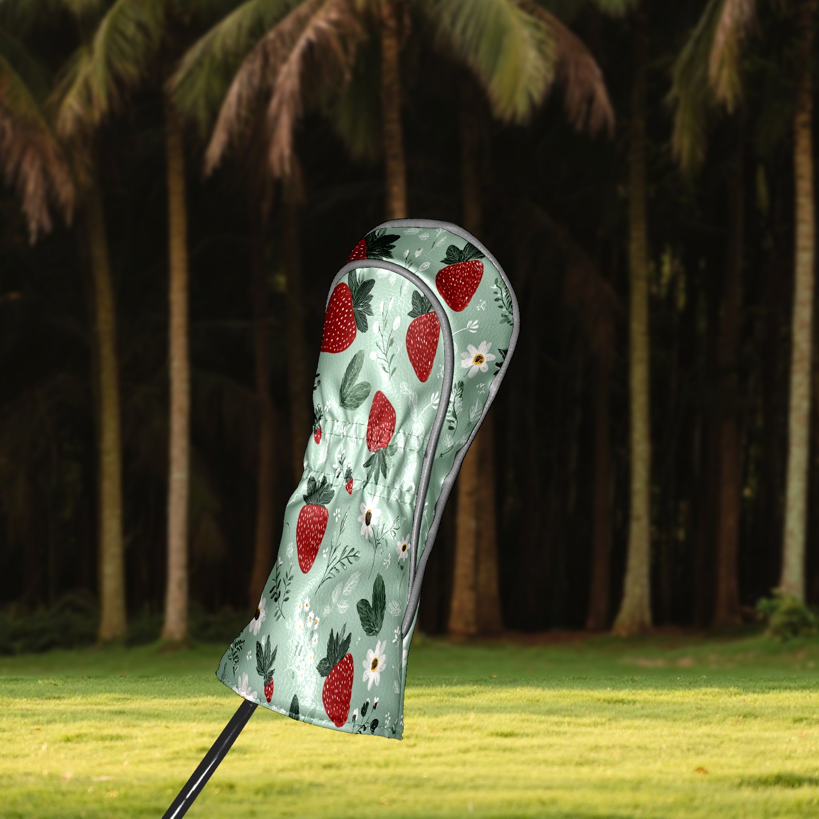 Golf Club Covers, Green Strawberry Premium PU Leather Driver Hybrid Putter Head Covers with Velvet Lining, Waterproof Golf Gifts for Men Women