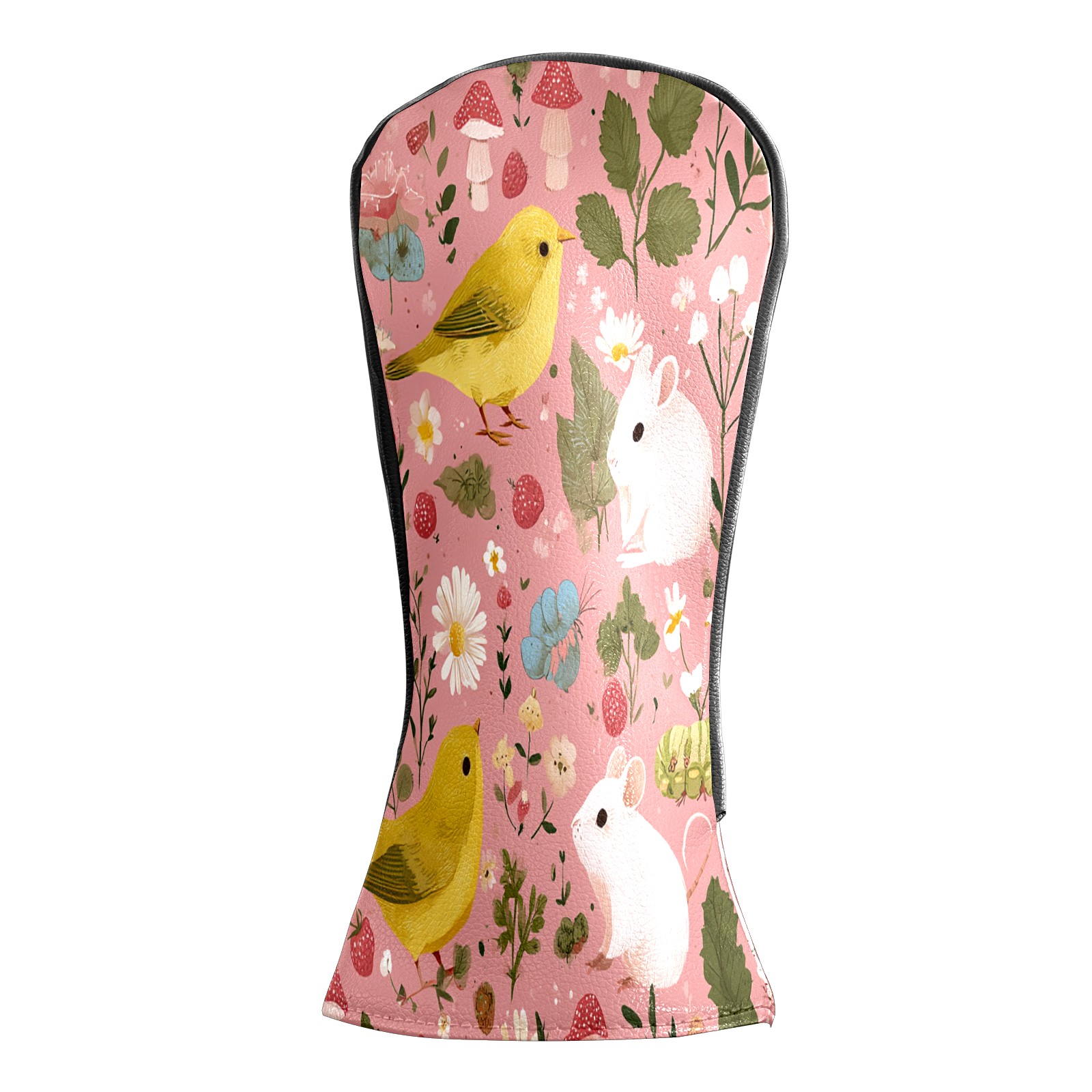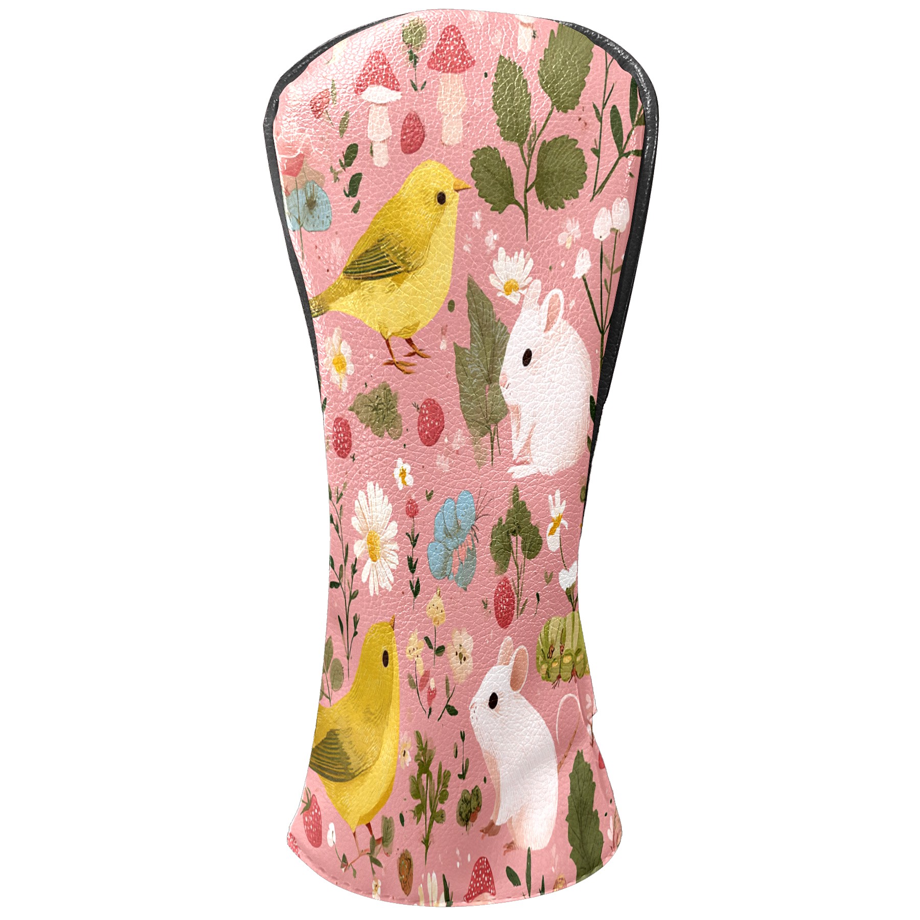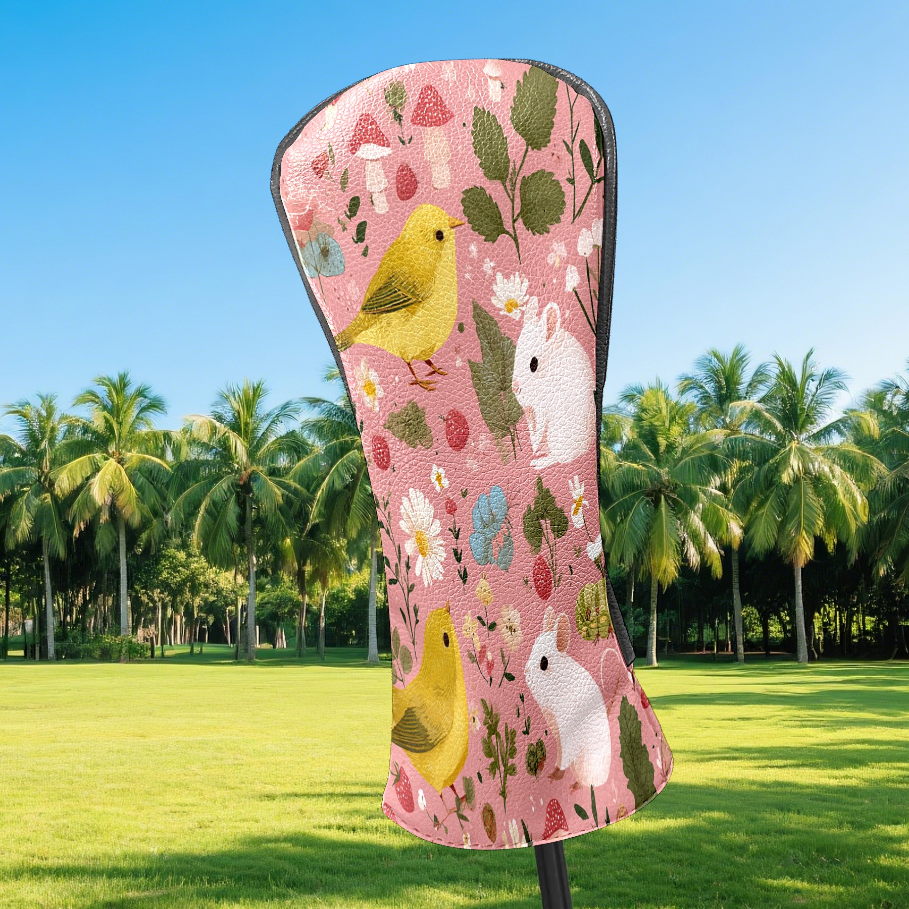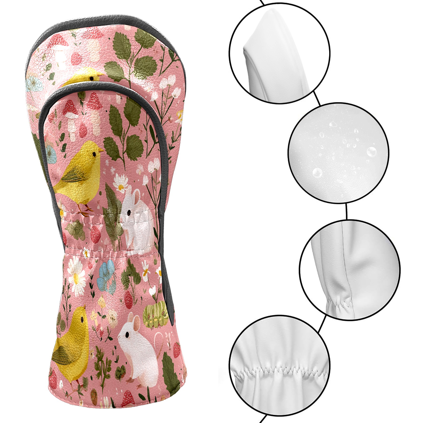 Golf Club Covers, Pink BirdFlower Premium PU Leather Driver Hybrid Putter Head Covers with Velvet Lining, Waterproof Golf Gifts for Men Women