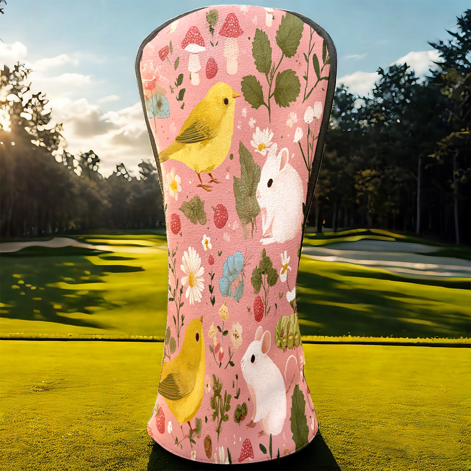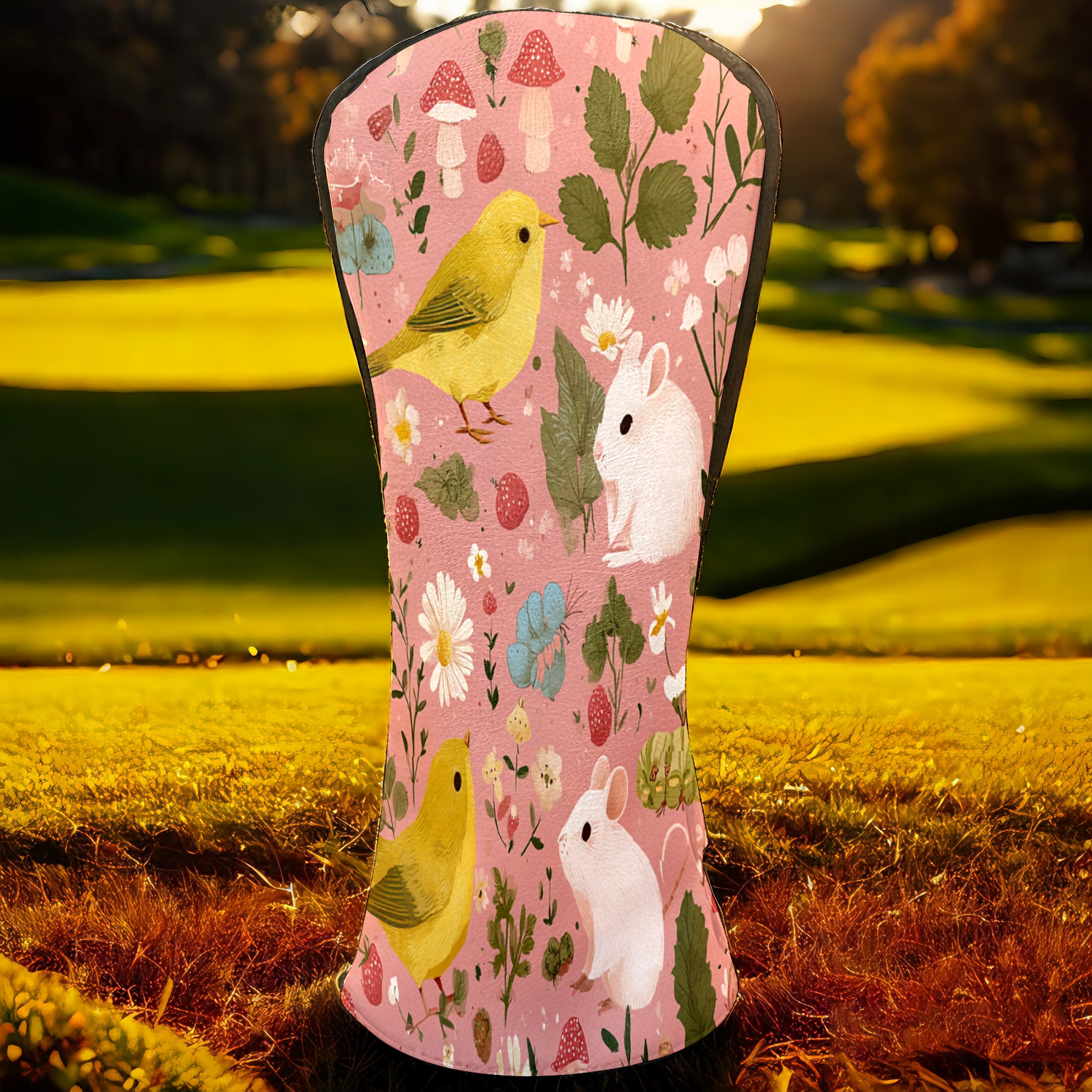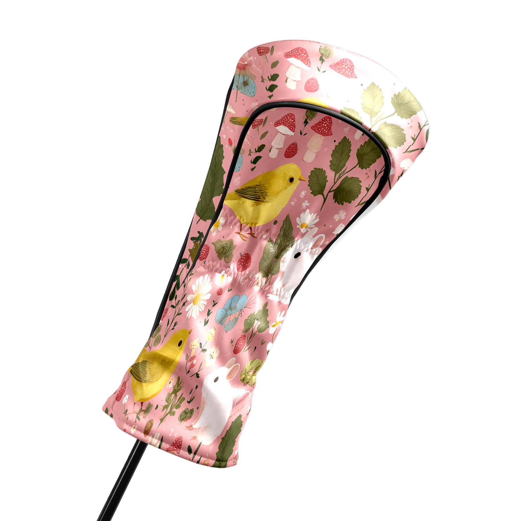 Golf Club Covers, Pink BirdFlower Premium PU Leather Driver Hybrid Putter Head Covers with Velvet Lining, Waterproof Golf Gifts for Men Women