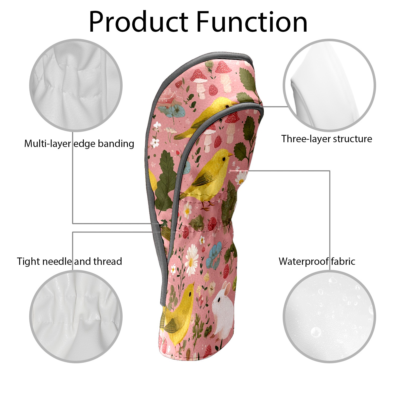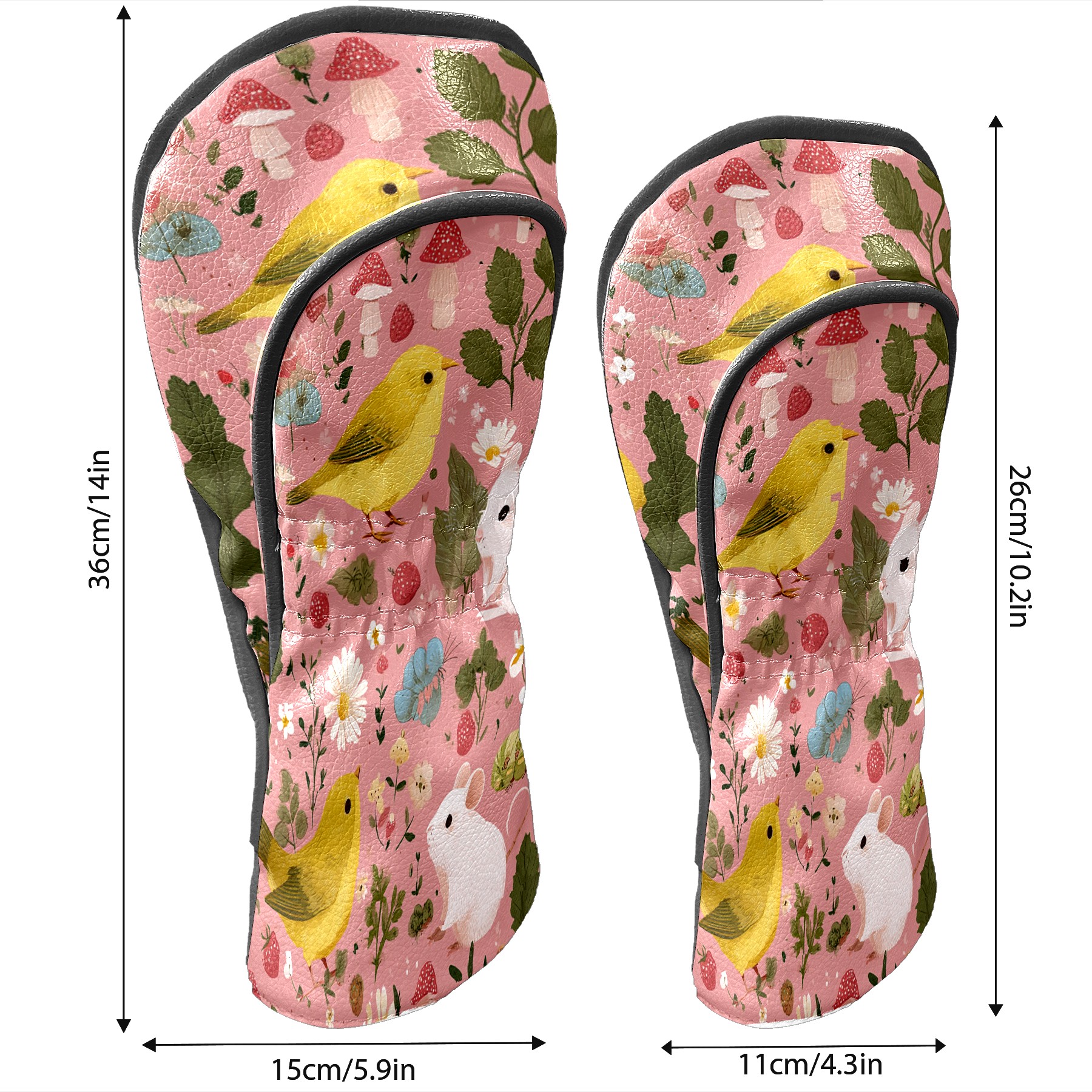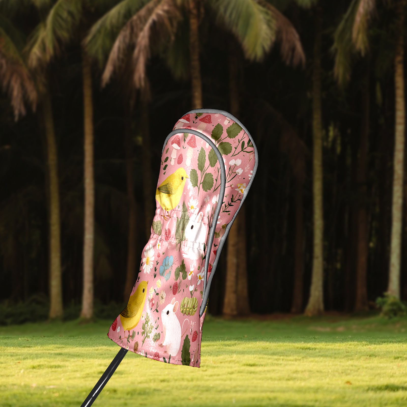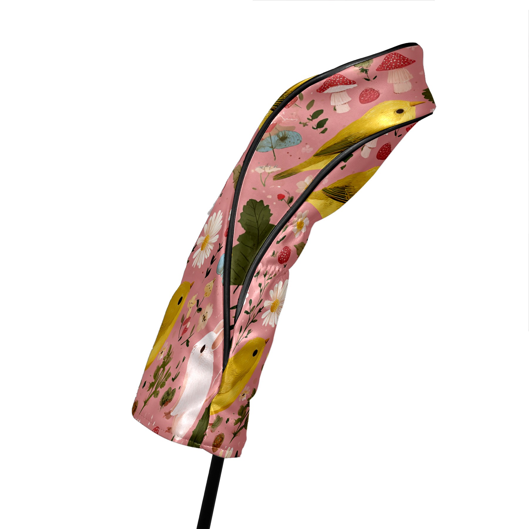 Golf Club Covers, Pink BirdFlower Premium PU Leather Driver Hybrid Putter Head Covers with Velvet Lining, Waterproof Golf Gifts for Men Women