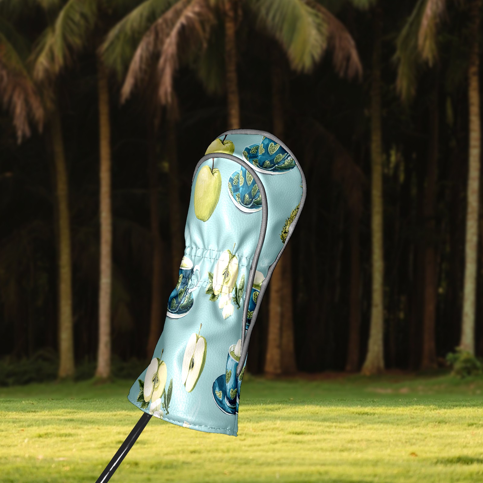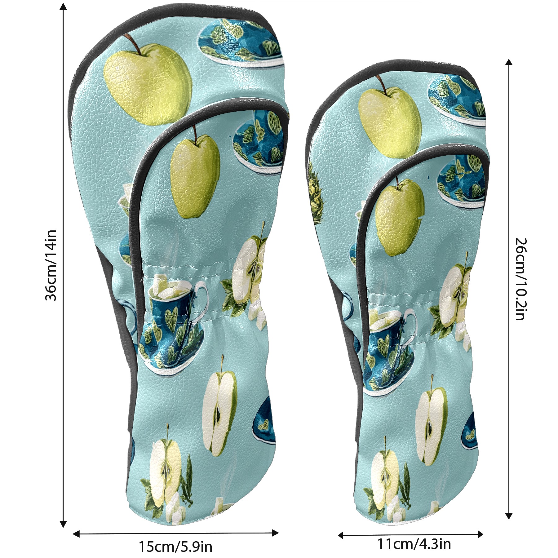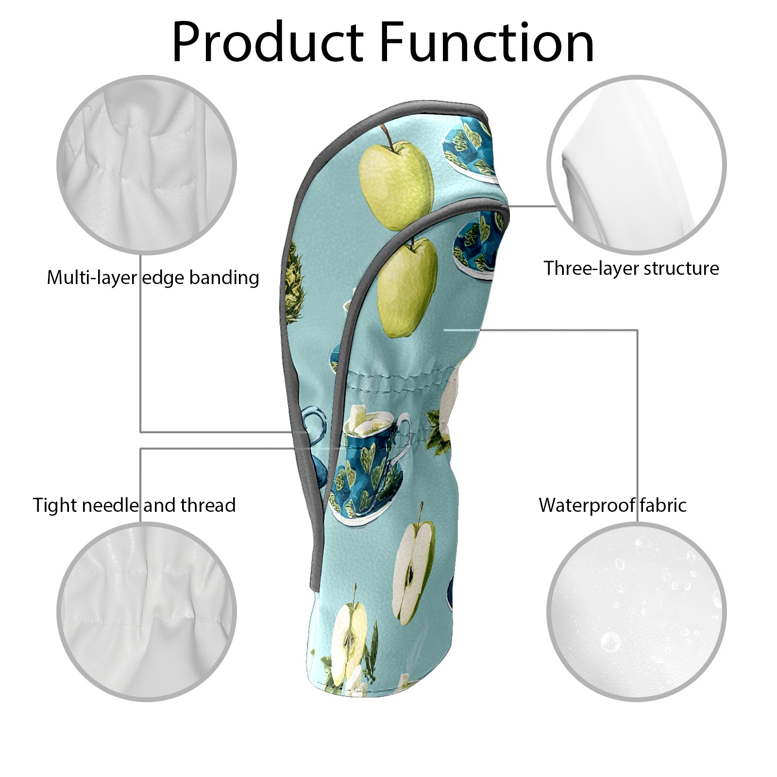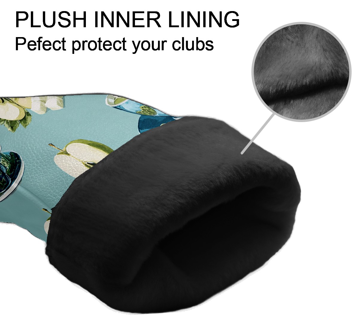 Golf Club Covers, Blue FruitTeacup Premium PU Leather Driver Hybrid Putter Head Covers with Velvet Lining, Waterproof Golf Gifts for Men Women