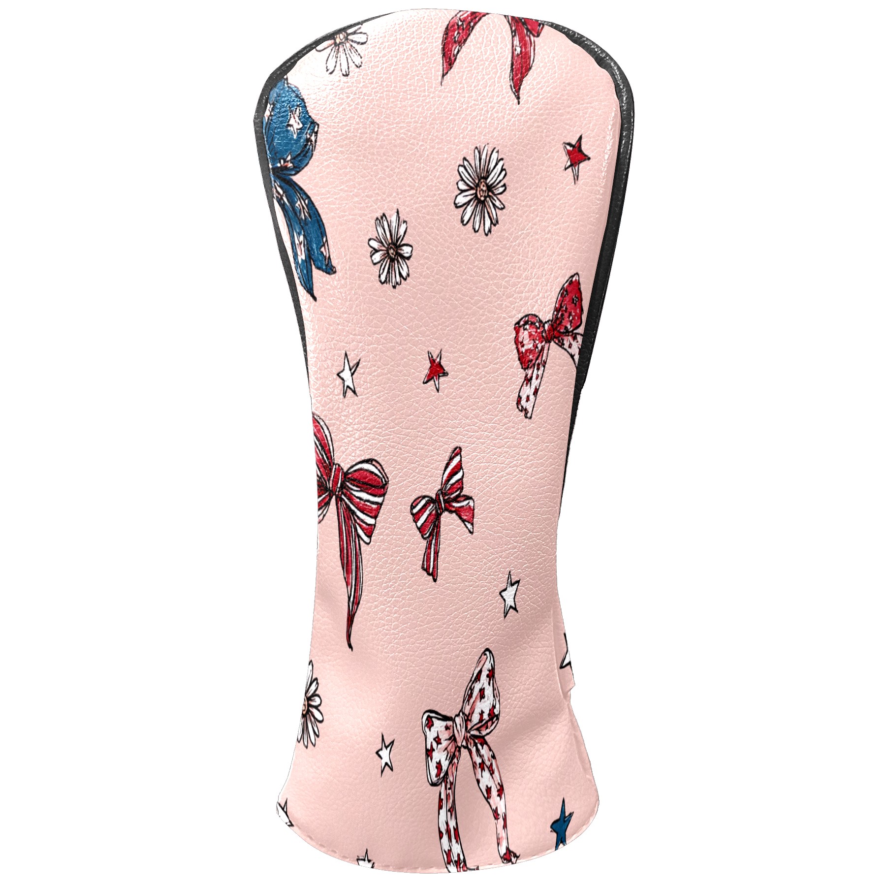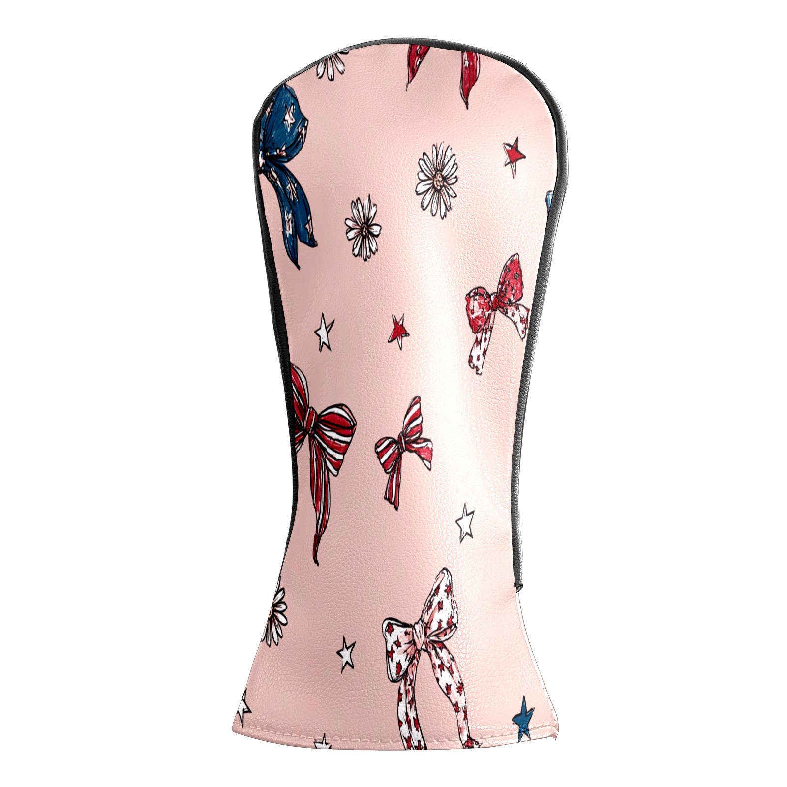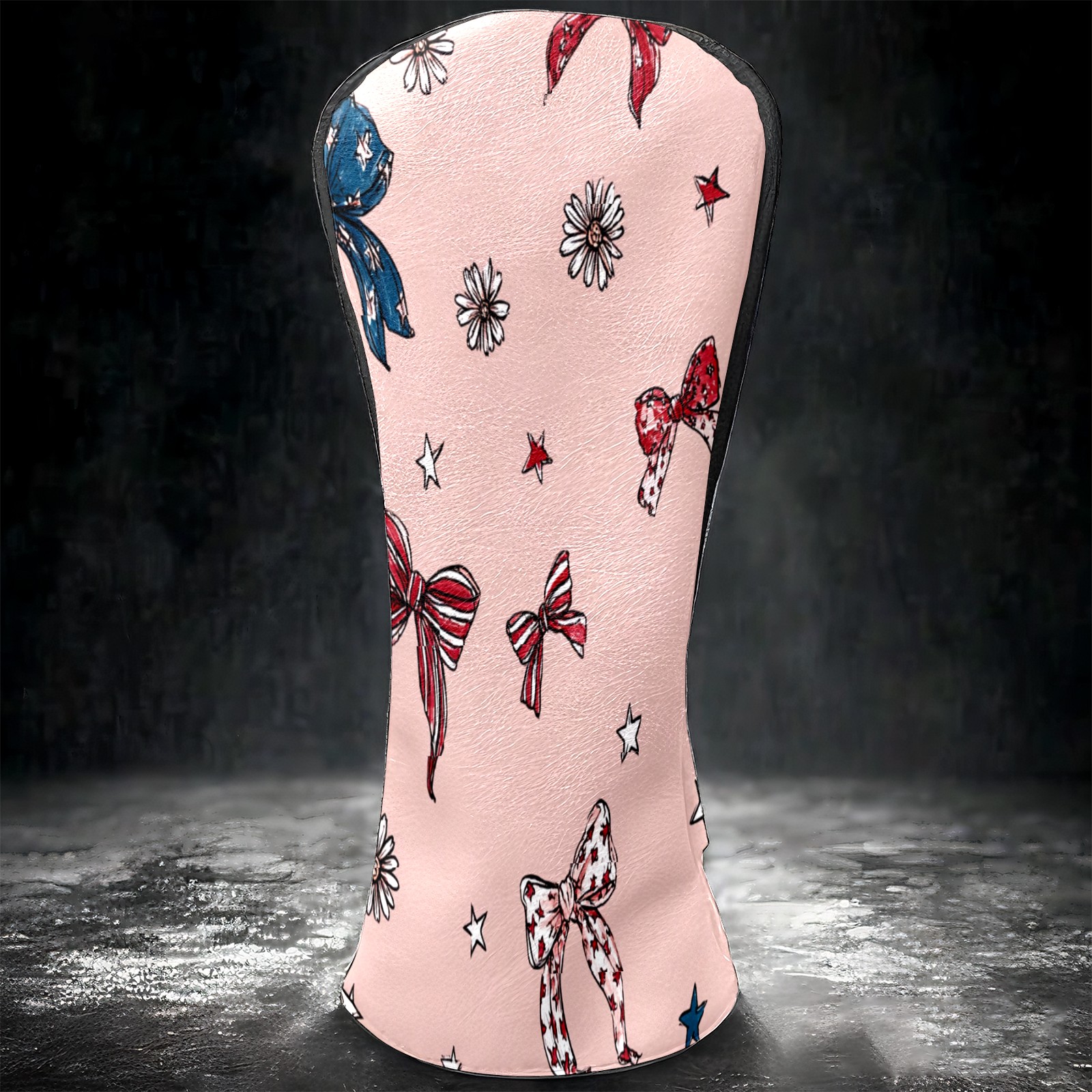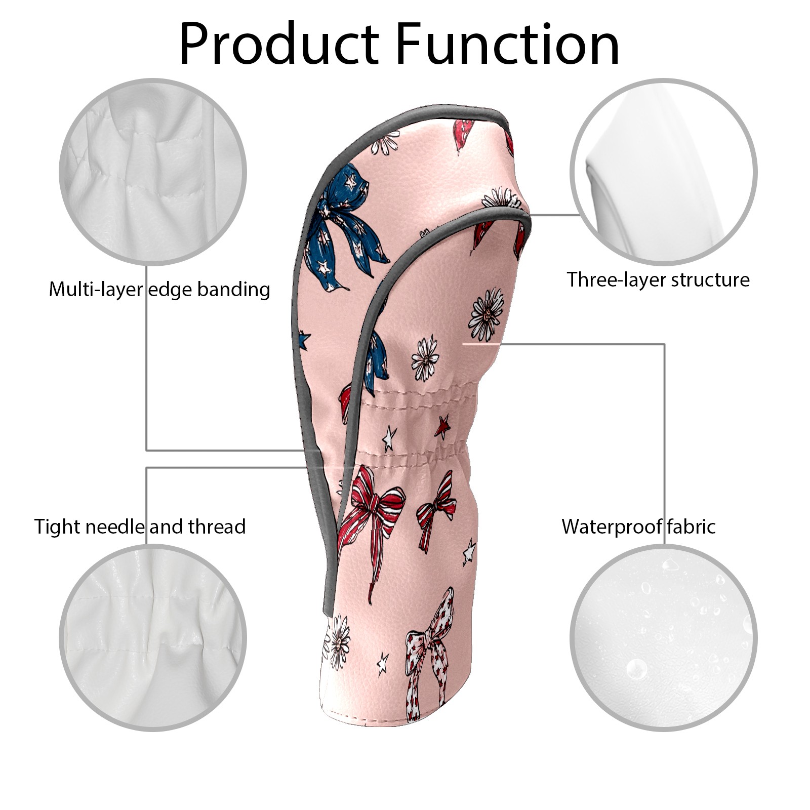 Golf Club Covers, Pink Bow Premium PU Leather Driver Hybrid Putter Head Covers with Velvet Lining, Waterproof Golf Gifts for Men Women