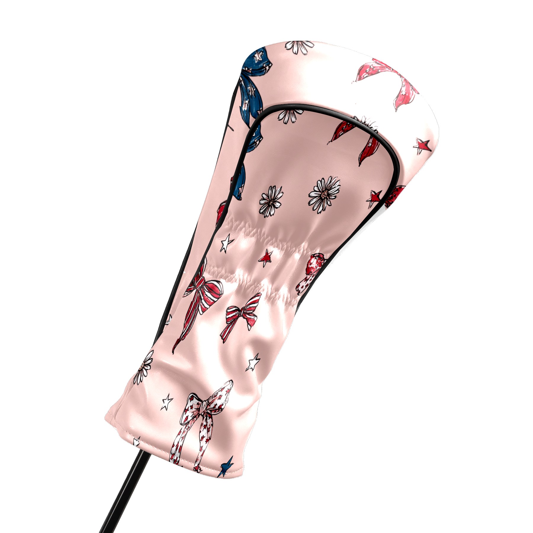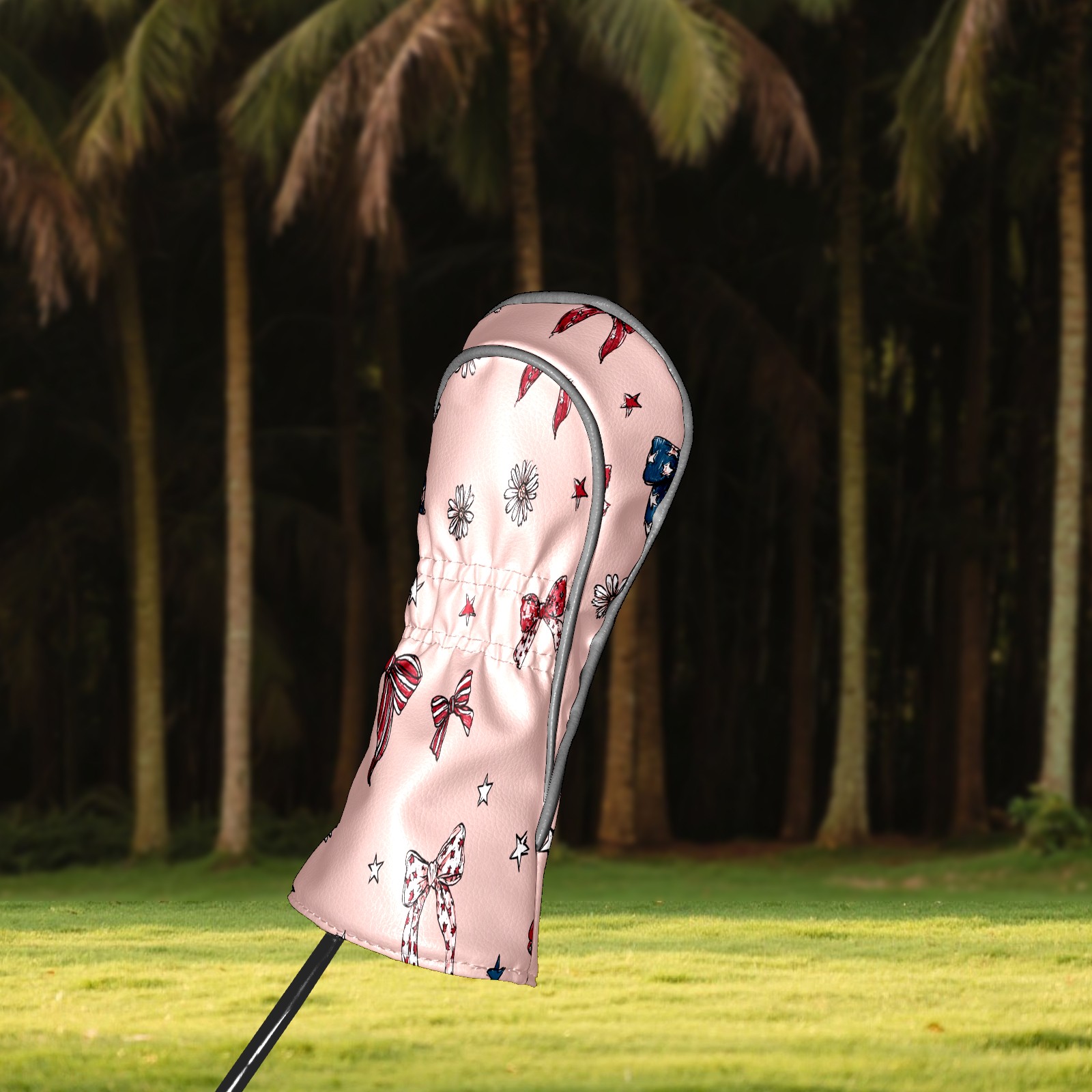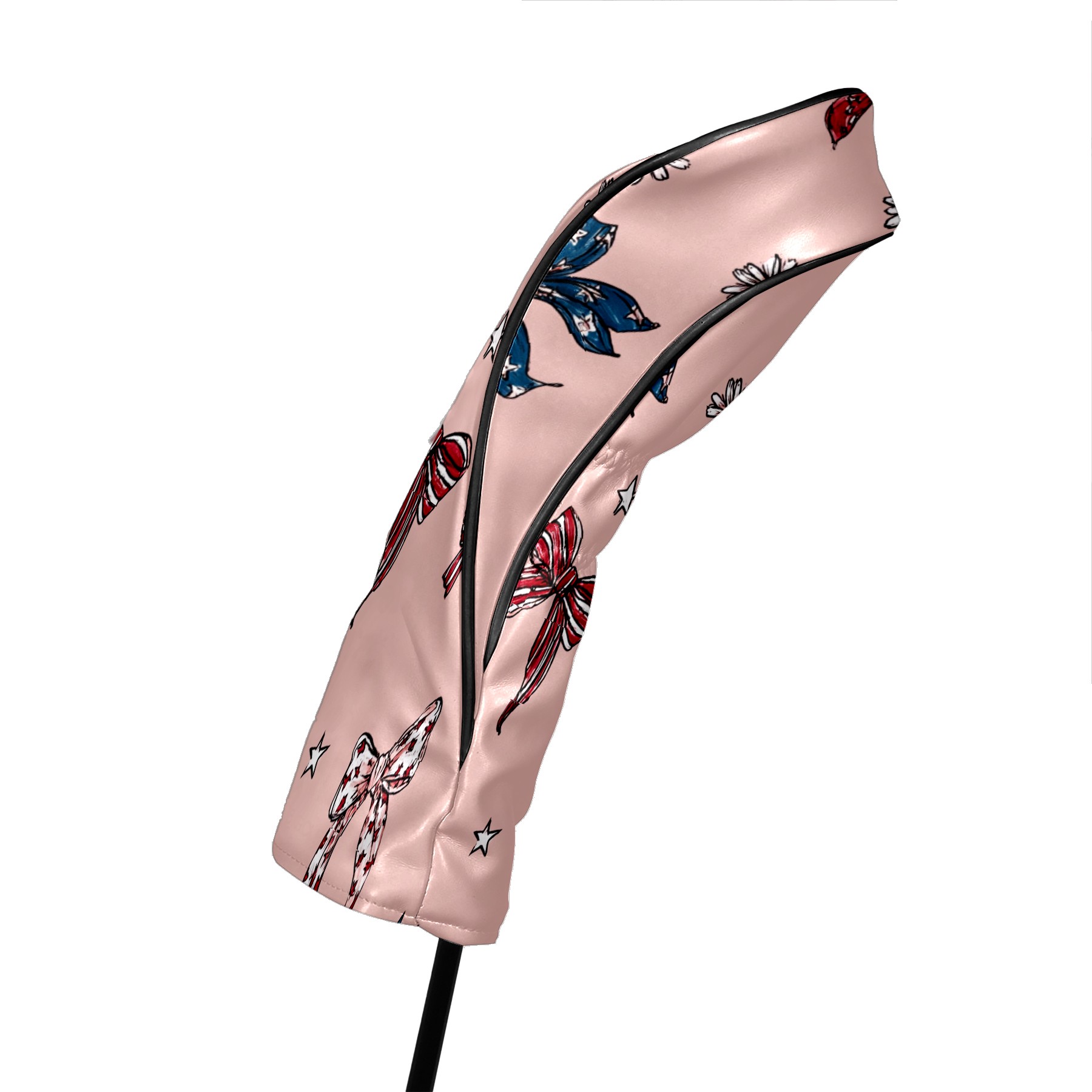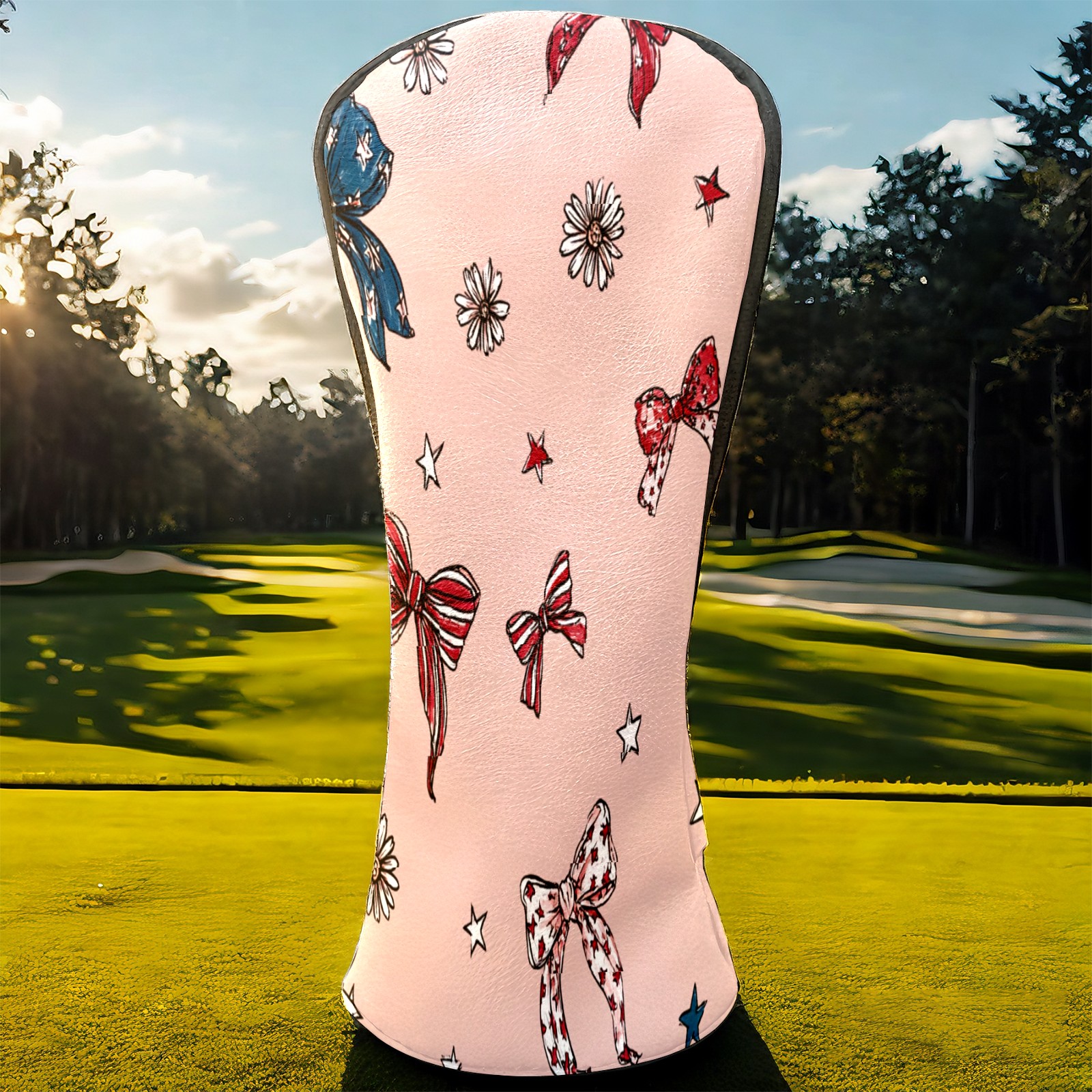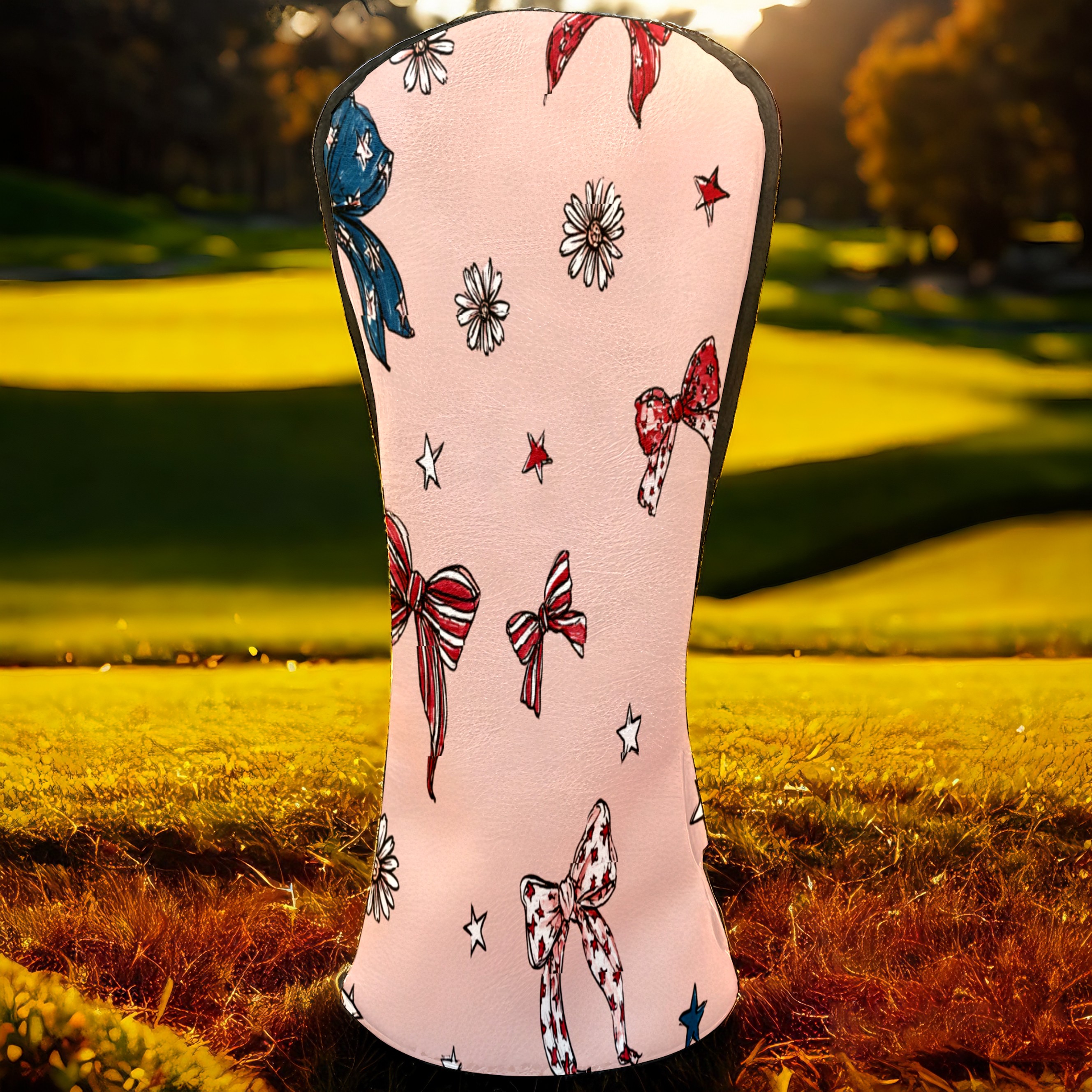 Golf Club Covers, Pink Bow Premium PU Leather Driver Hybrid Putter Head Covers with Velvet Lining, Waterproof Golf Gifts for Men Women