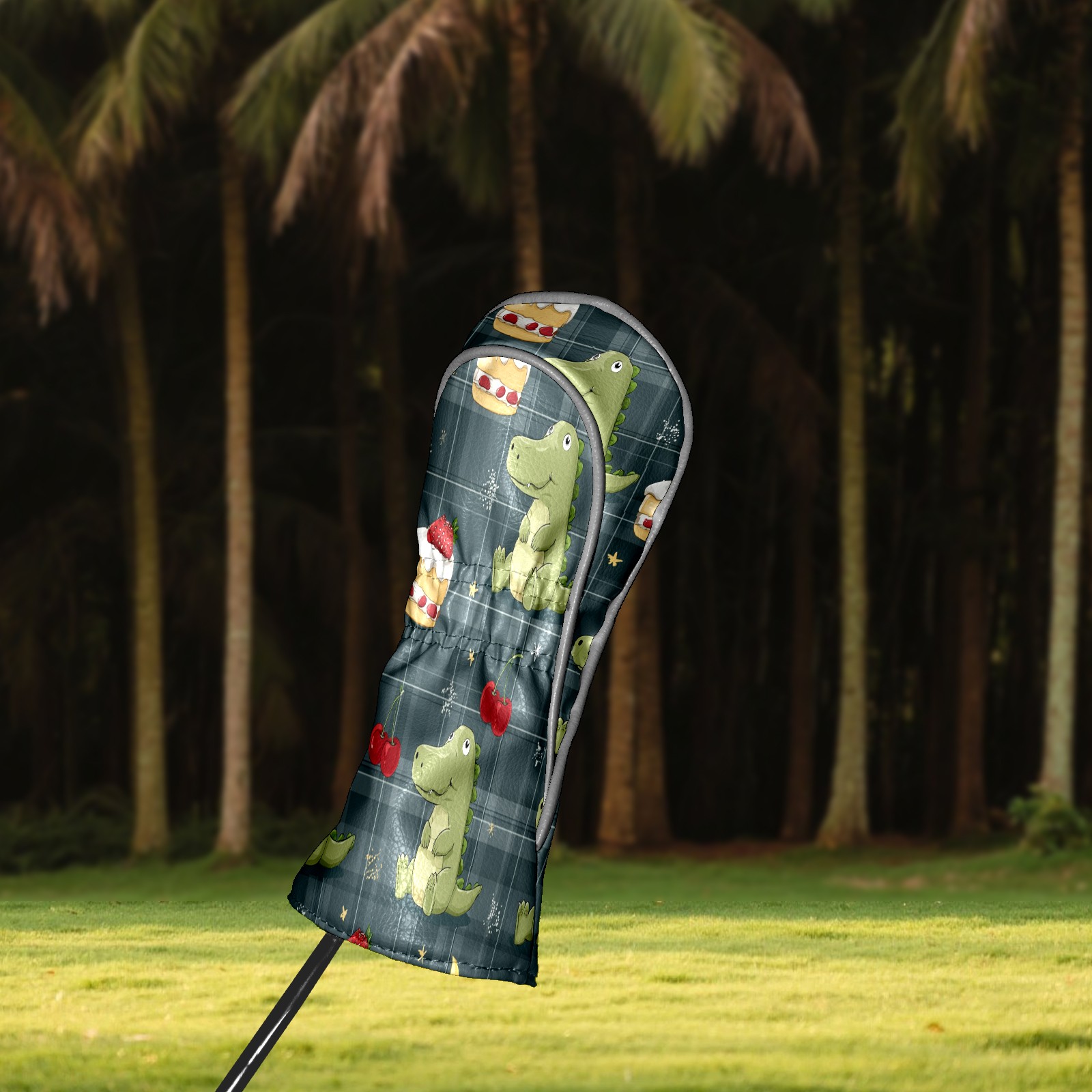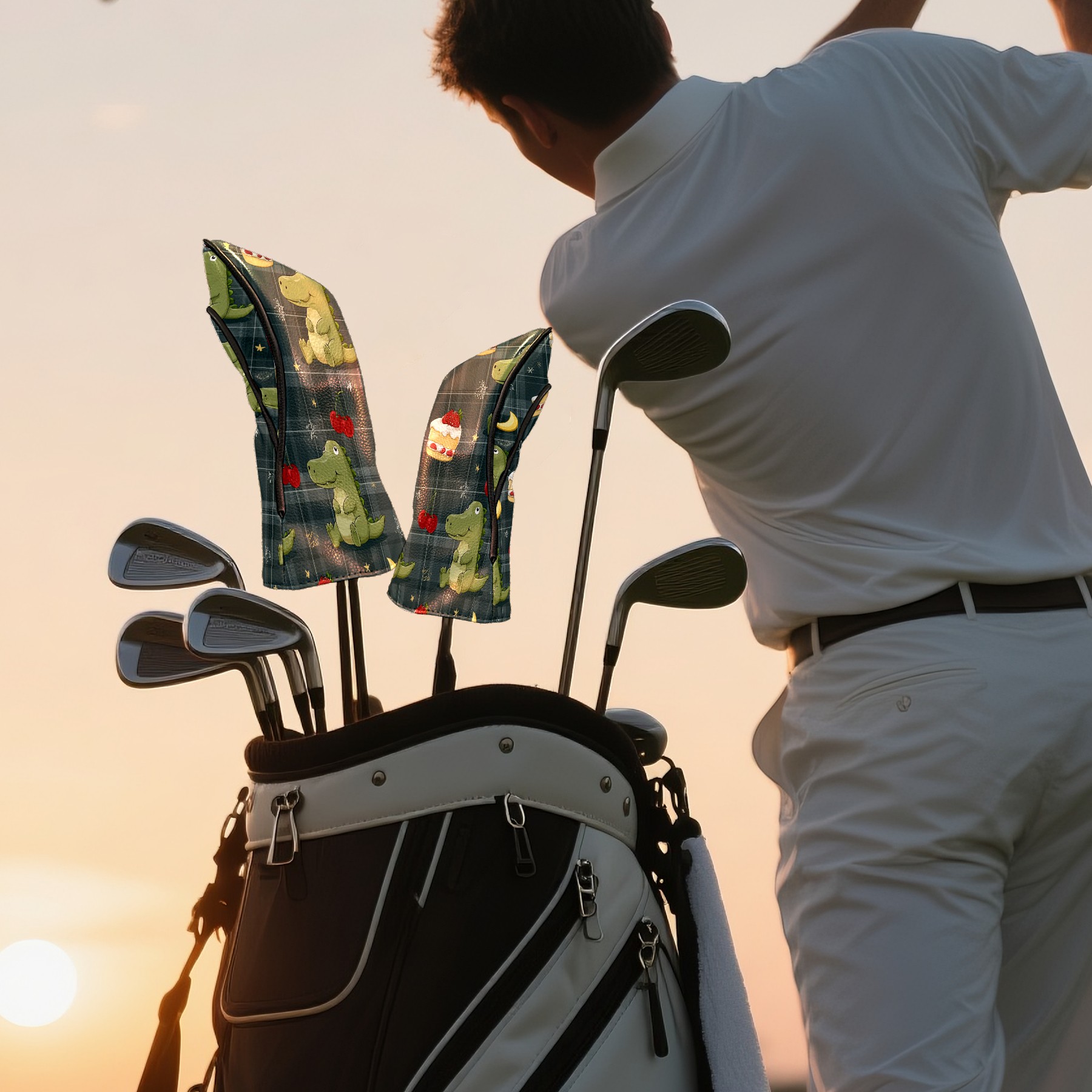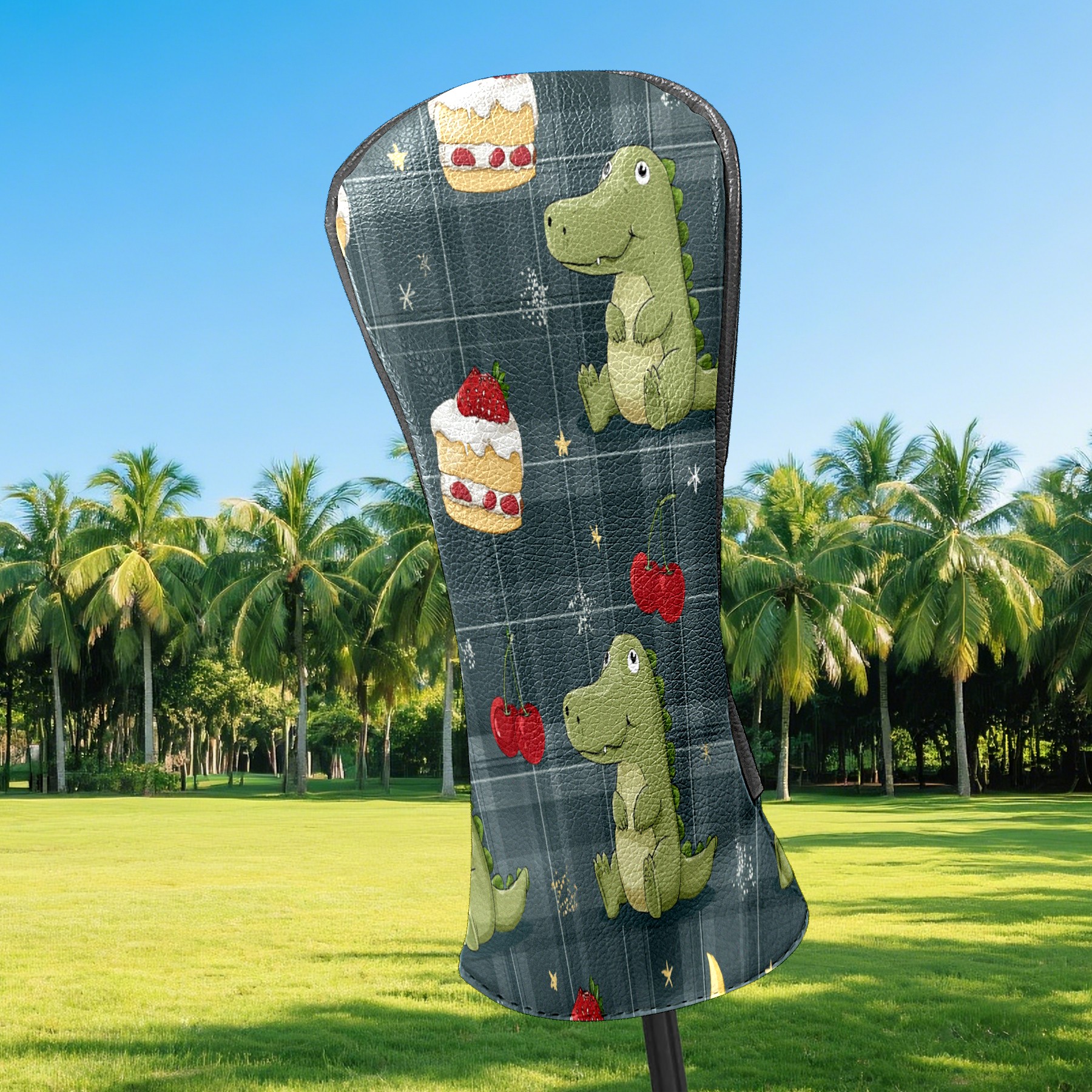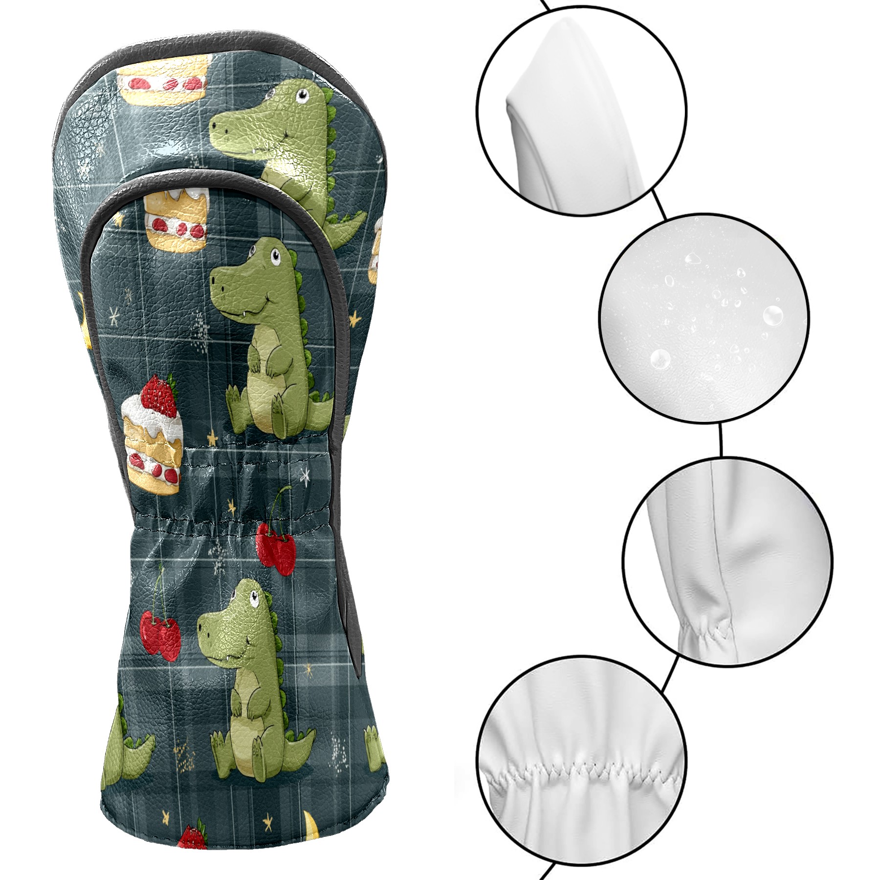 Golf Club Covers, Green DinoCake Premium PU Leather Driver Hybrid Putter Head Covers with Velvet Lining, Waterproof Golf Gifts for Men Women