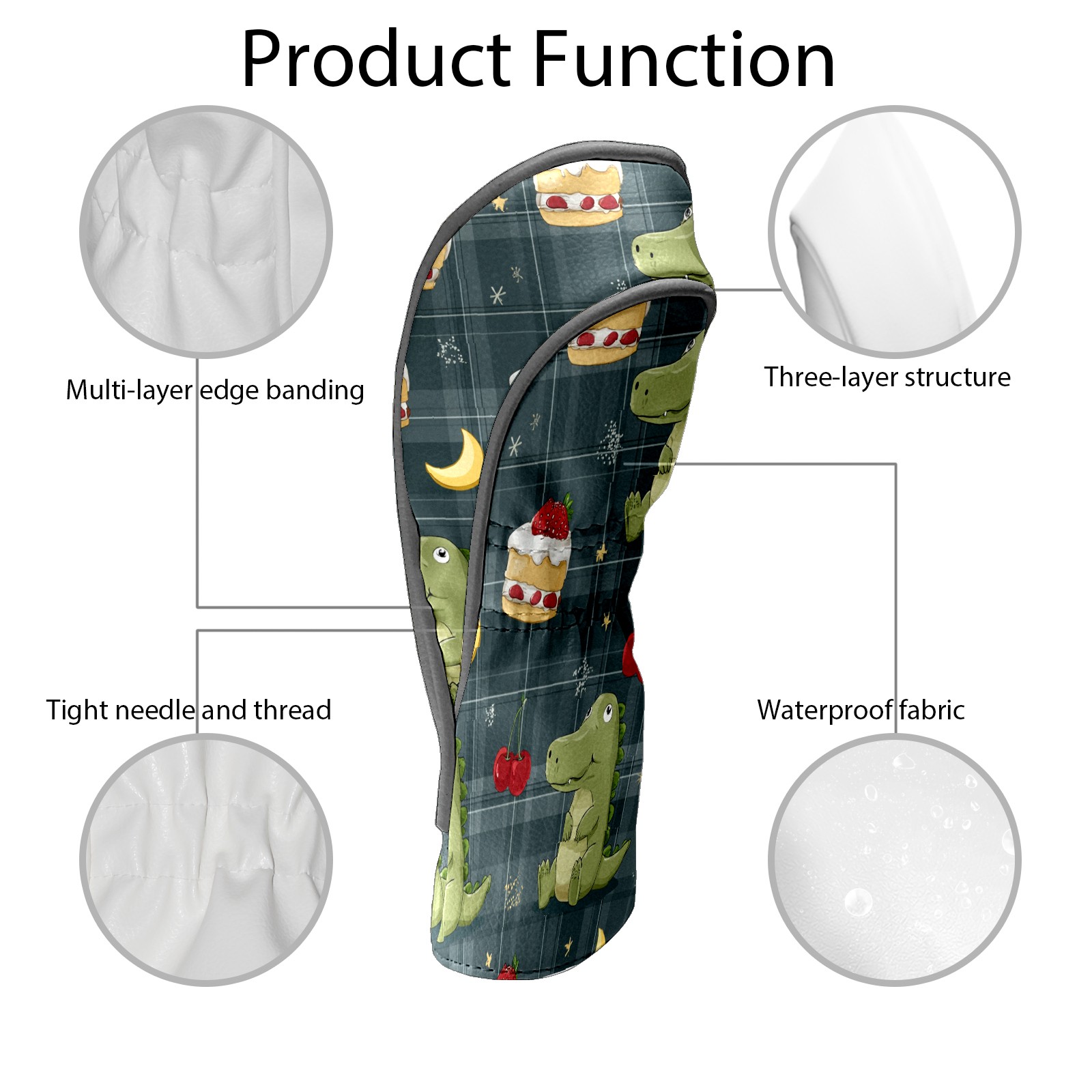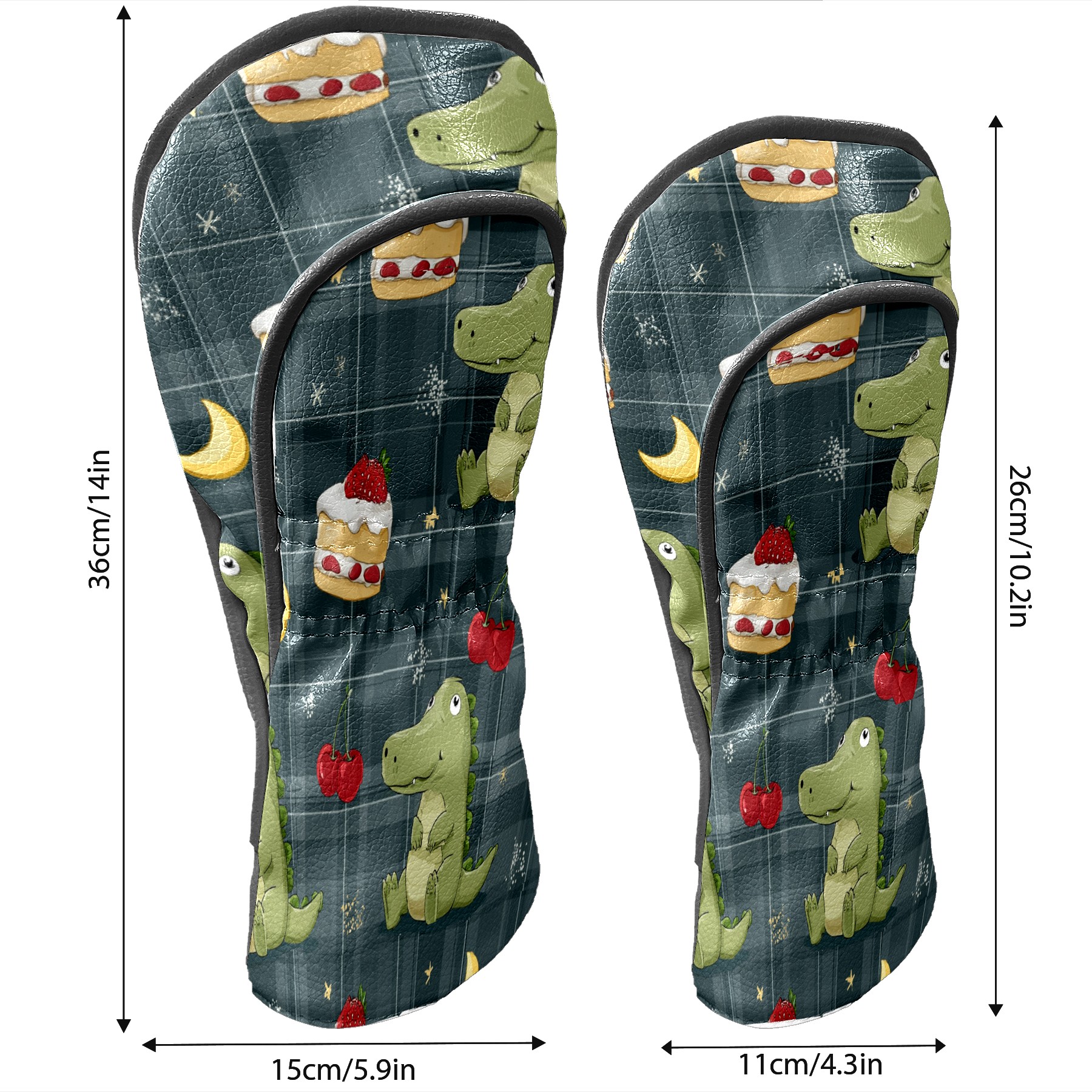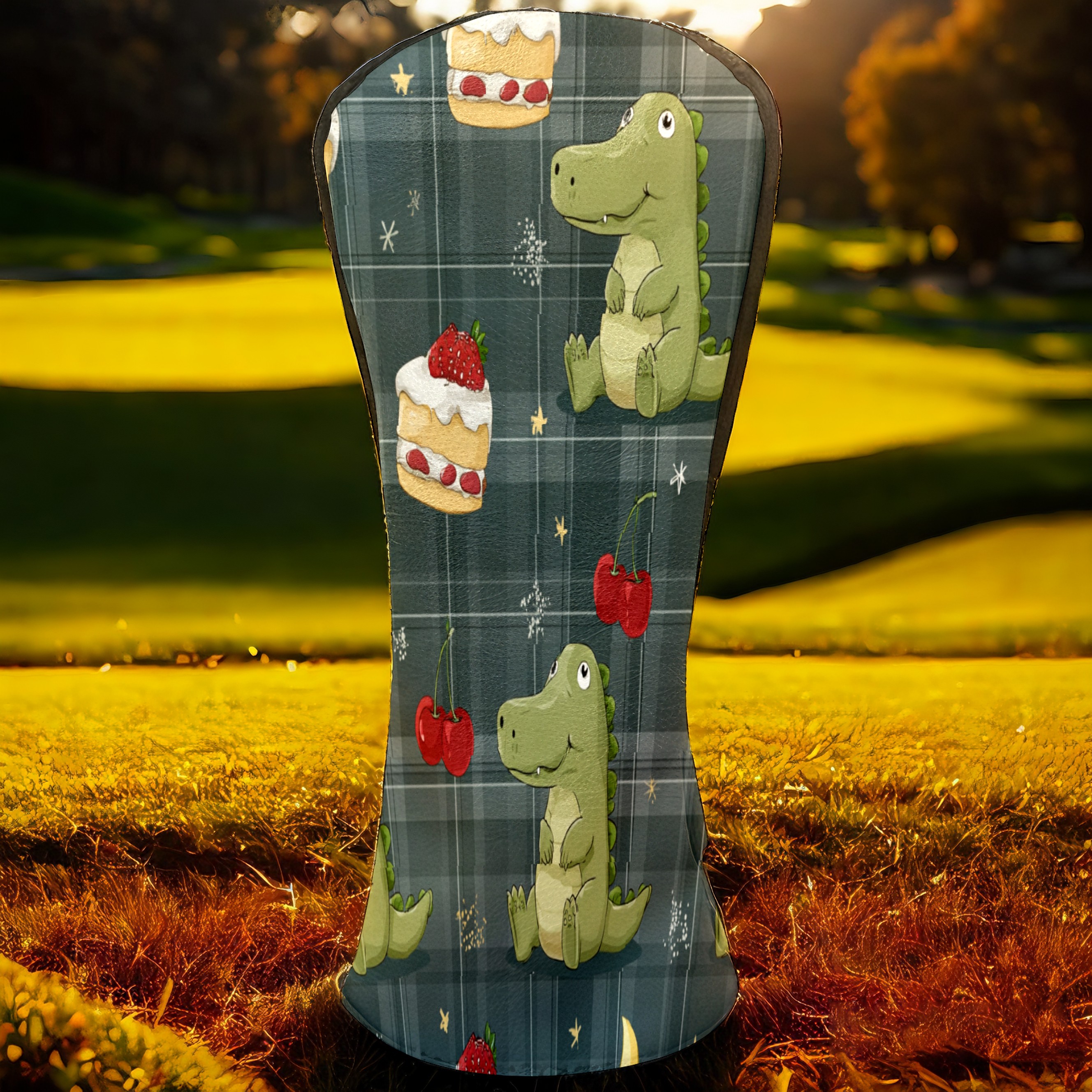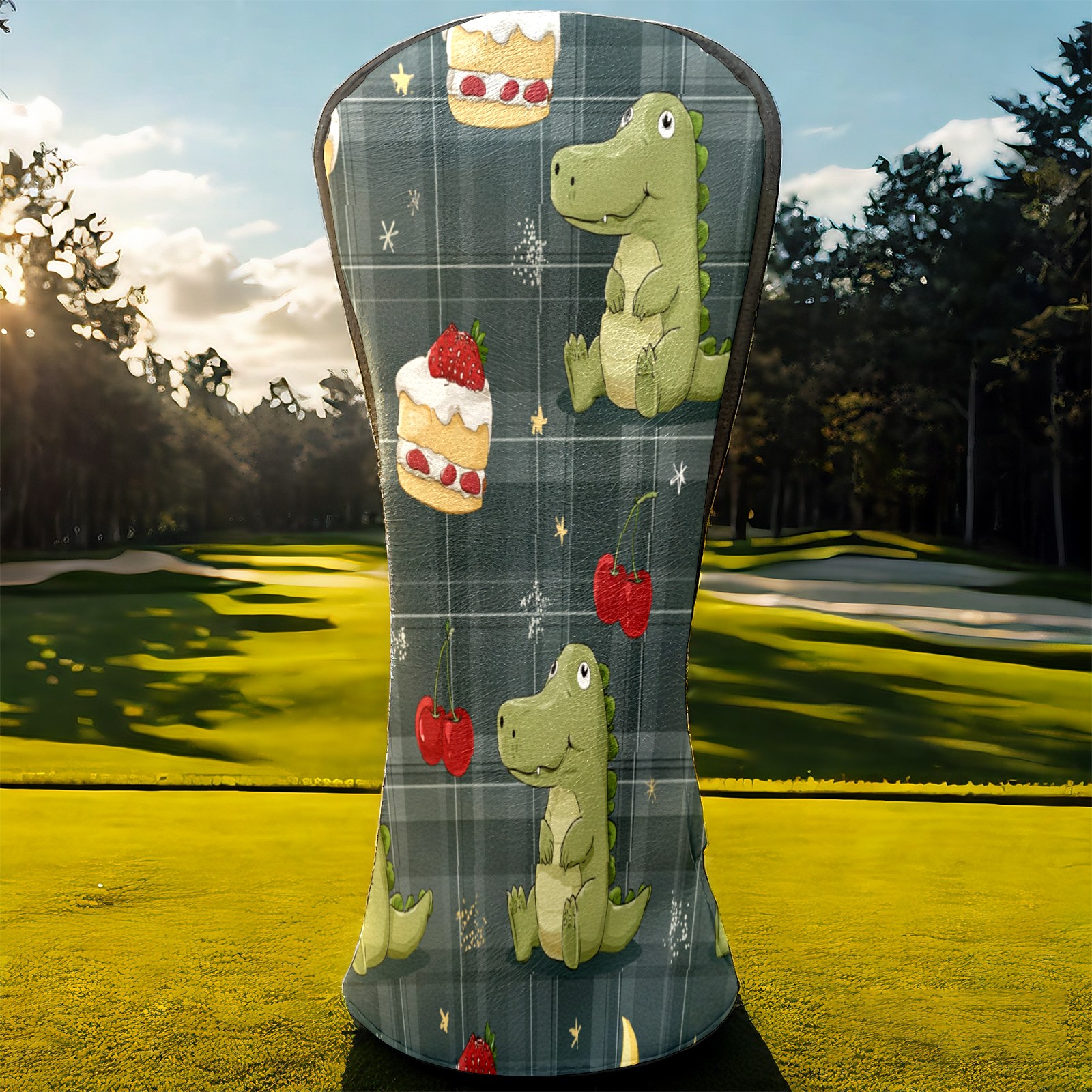 Golf Club Covers, Green DinoCake Premium PU Leather Driver Hybrid Putter Head Covers with Velvet Lining, Waterproof Golf Gifts for Men Women