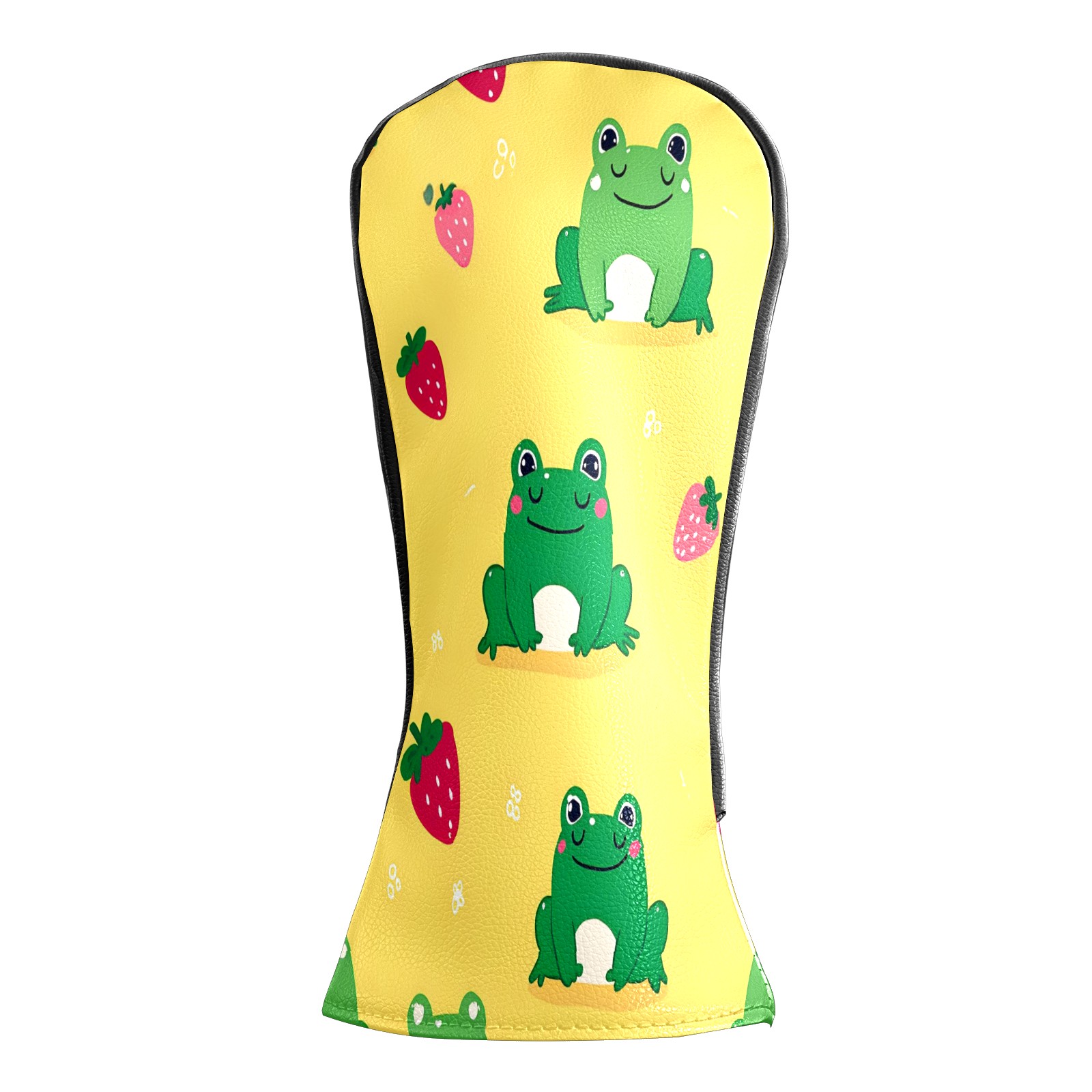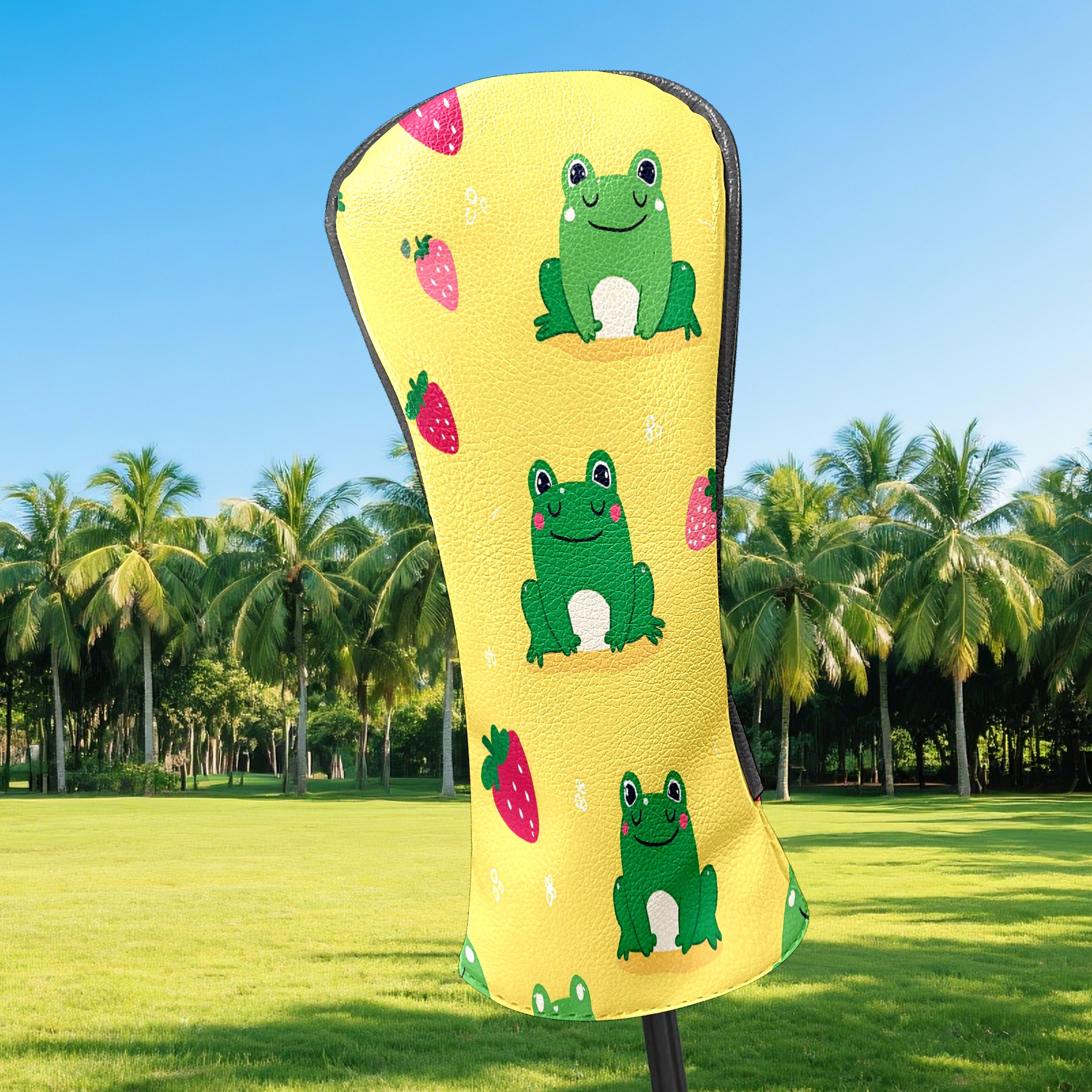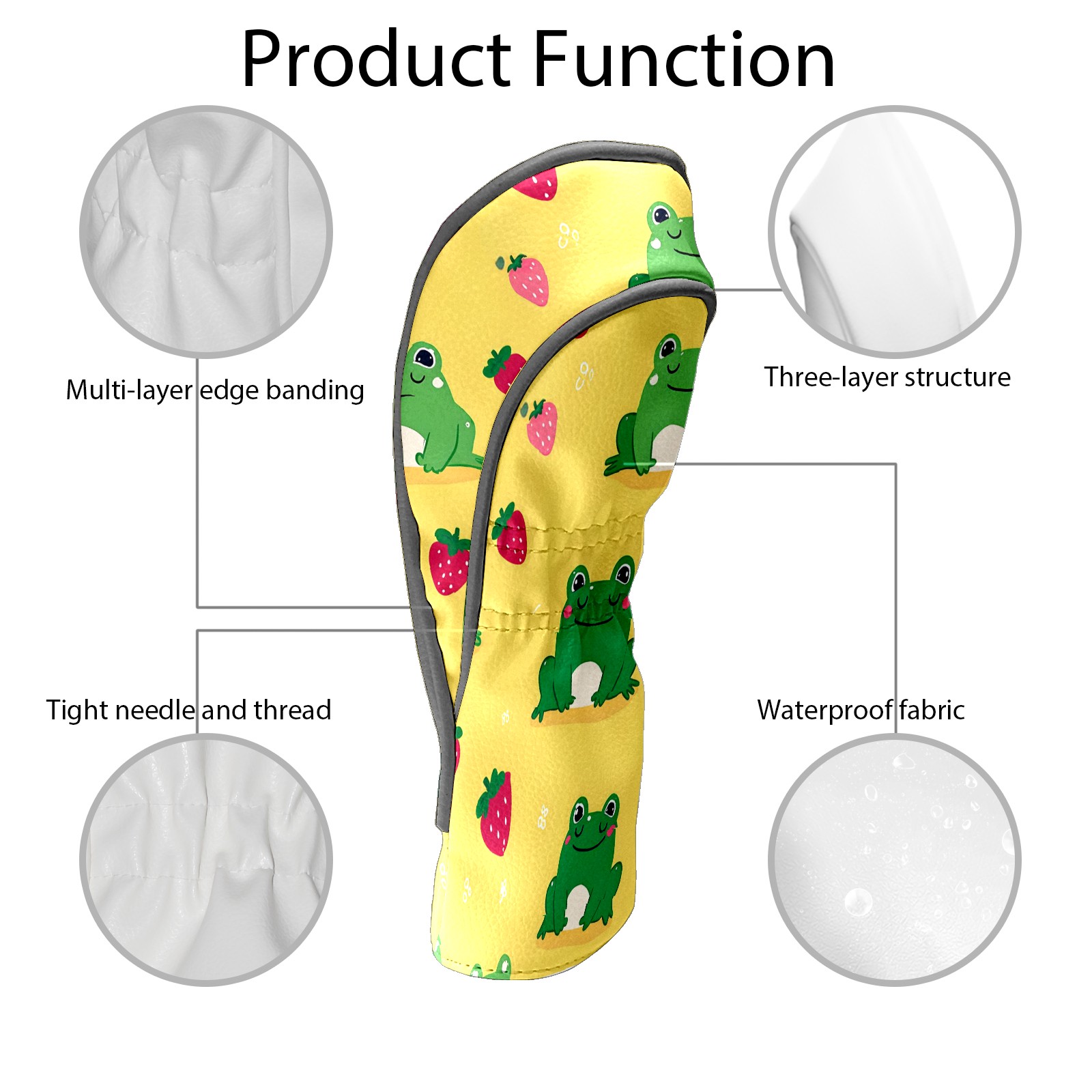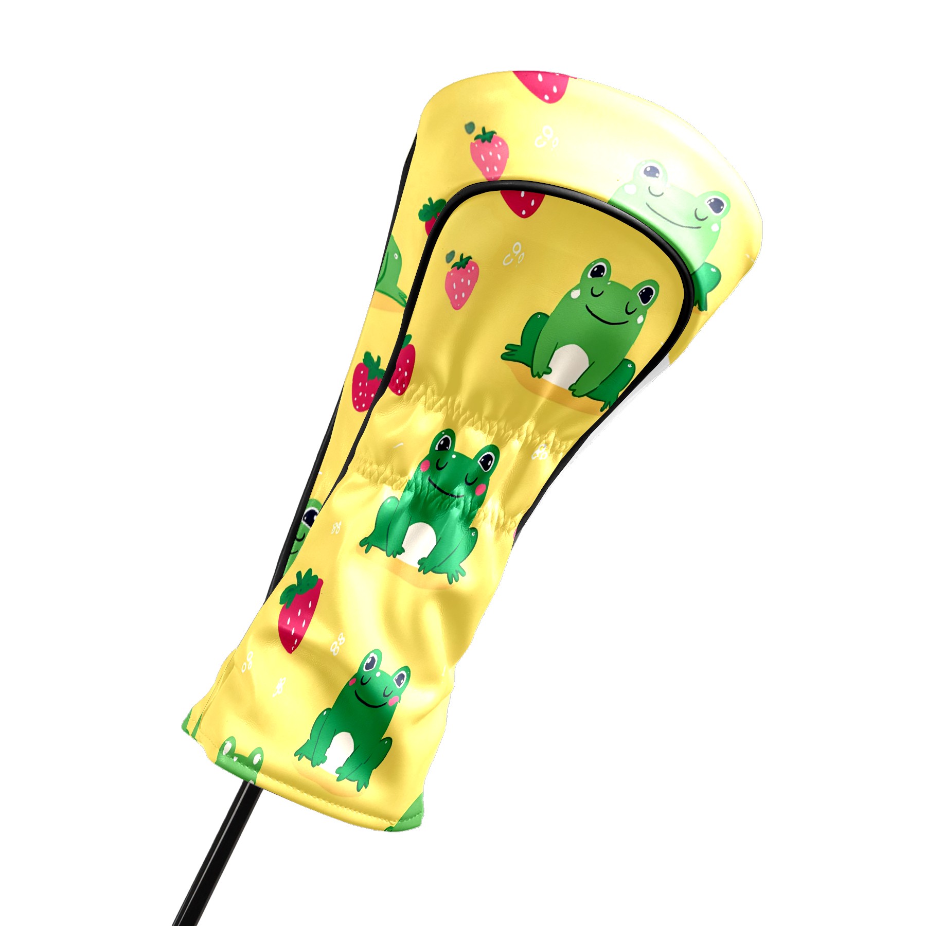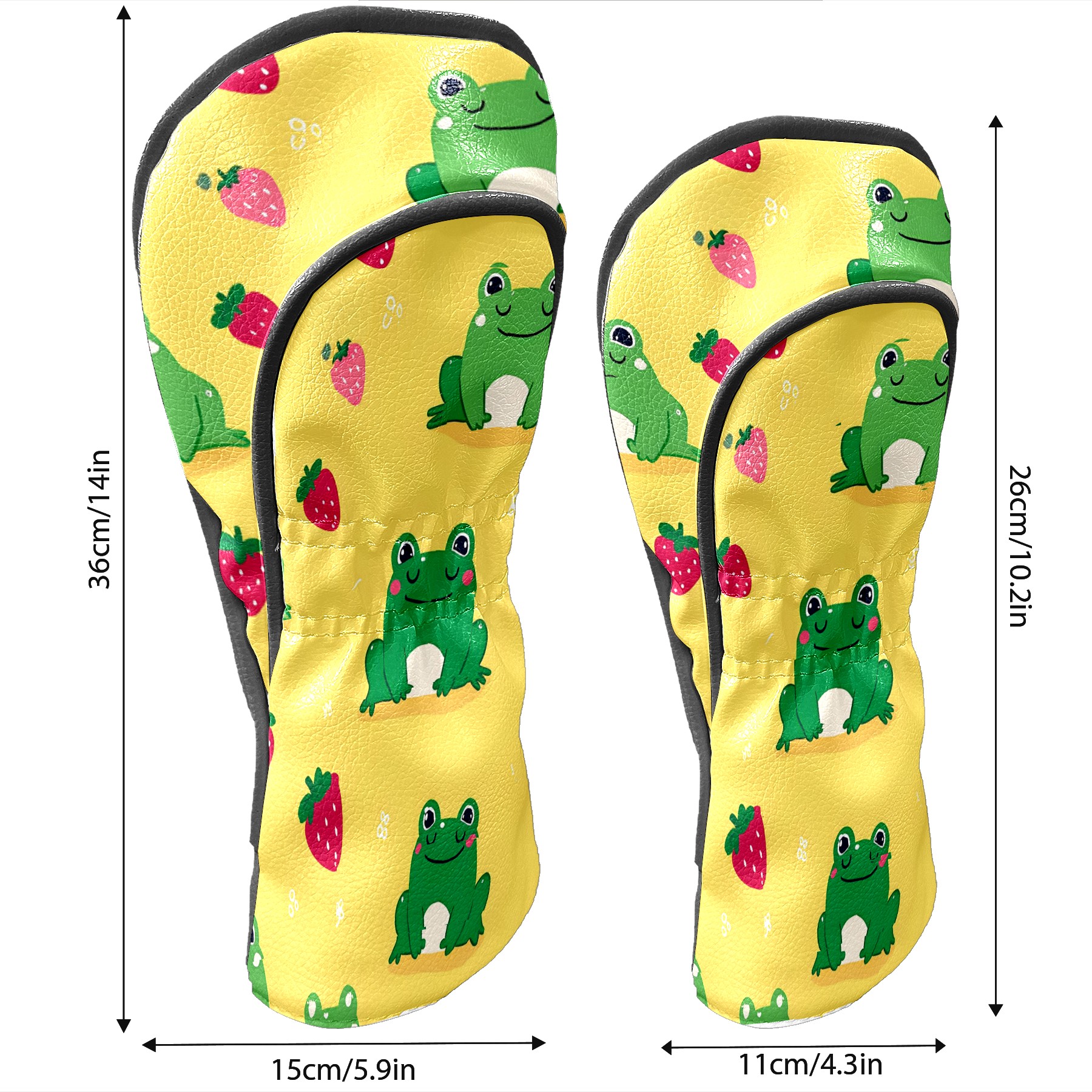 Golf Club Covers, Yellow FrogStrawberry Premium PU Leather Driver Hybrid Putter Head Covers with Velvet Lining, Waterproof Golf Gifts for Men Women