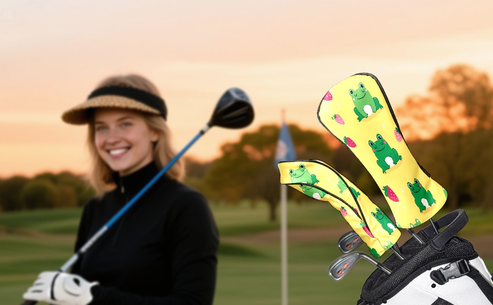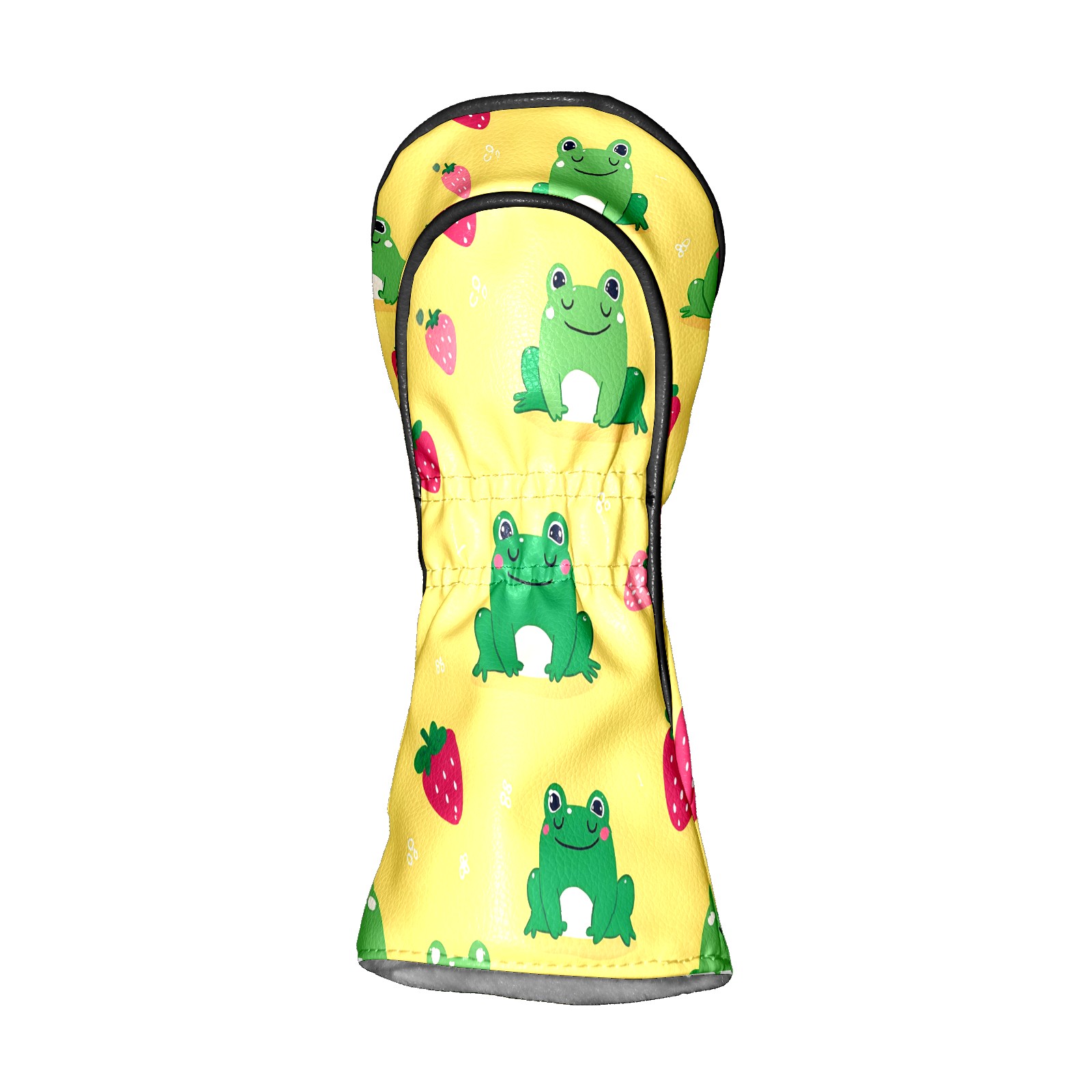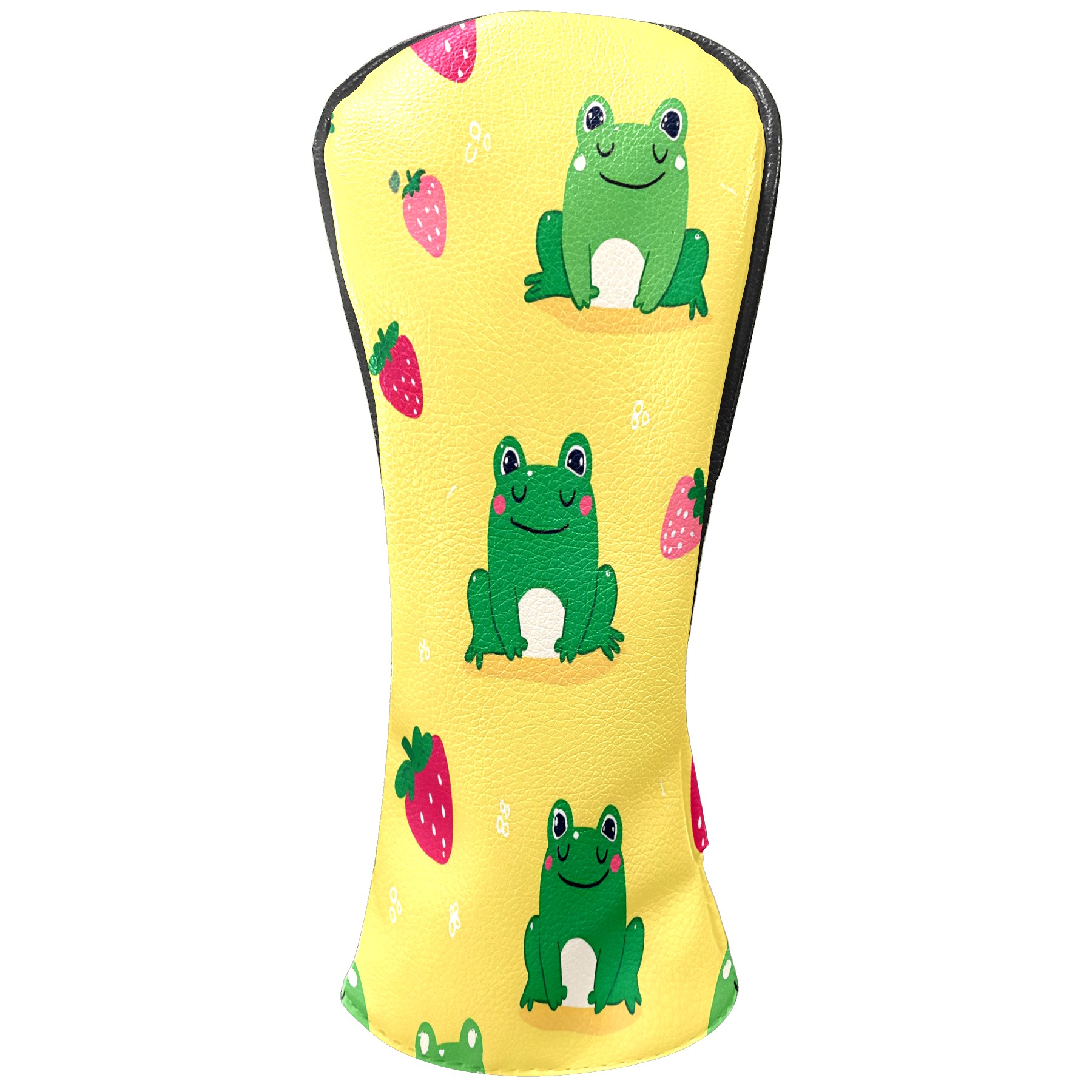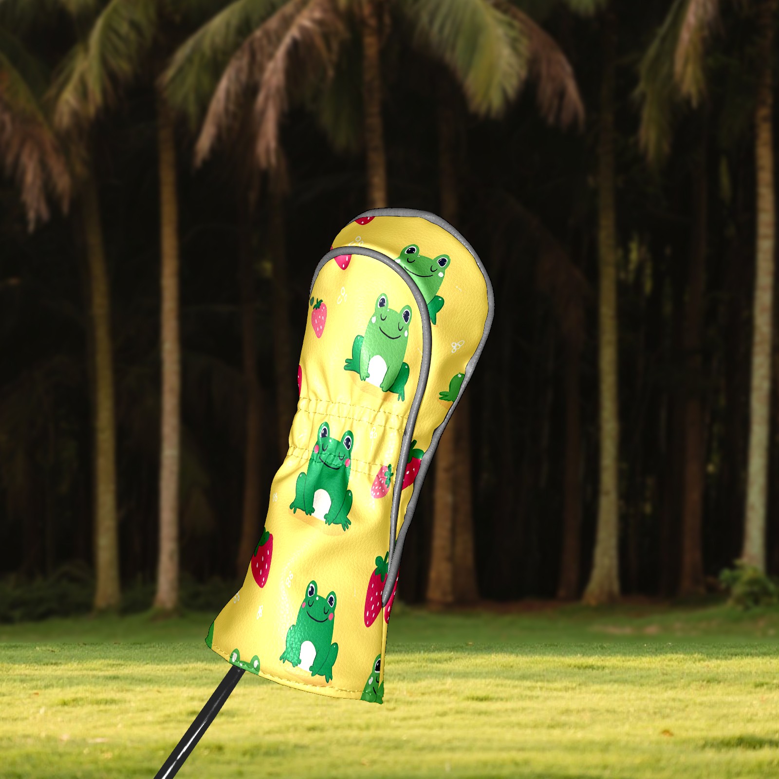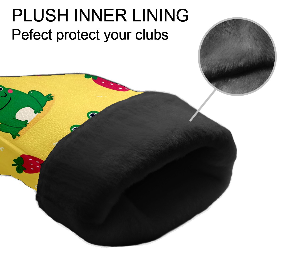 Golf Club Covers, Yellow FrogStrawberry Premium PU Leather Driver Hybrid Putter Head Covers with Velvet Lining, Waterproof Golf Gifts for Men Women