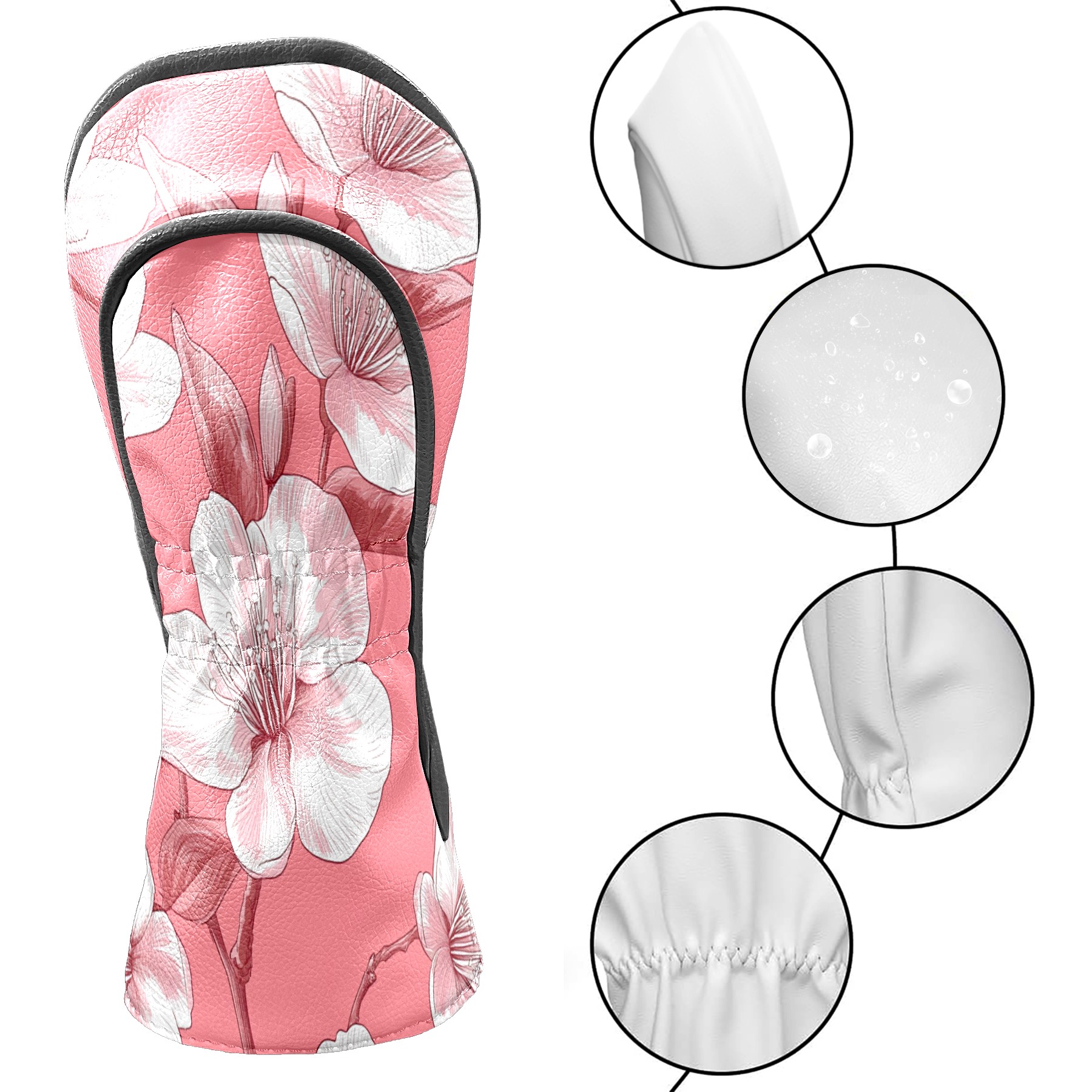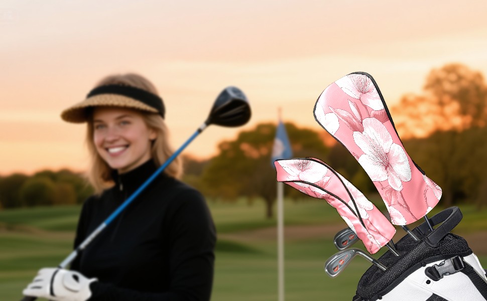 Golf Club Covers PU Leather Waterproof,Golf Club Head Covers for Fairway Woods and Hybrids Cherry Blossoms,Unisex Suitable for Most Brands
