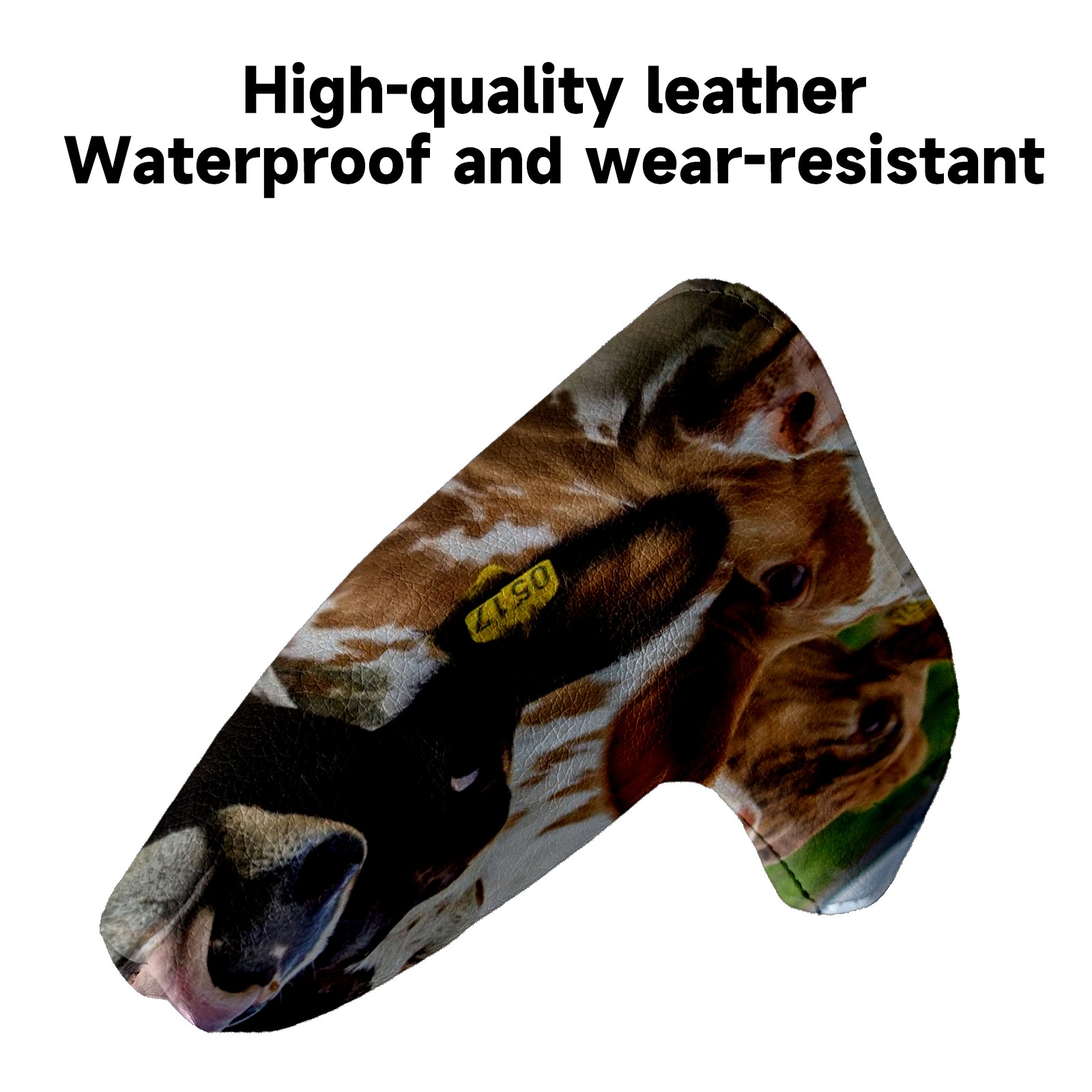 Golf Club Head Cover Waterproof Leather for Driver & Fairway Wood, Driver Headcovers, Golf Accessories for Men Women, Anti-Scratch, Golf Gift for Golfers, 1/3/5 Wood Cover Animal Cow Funny Pasture Prairie