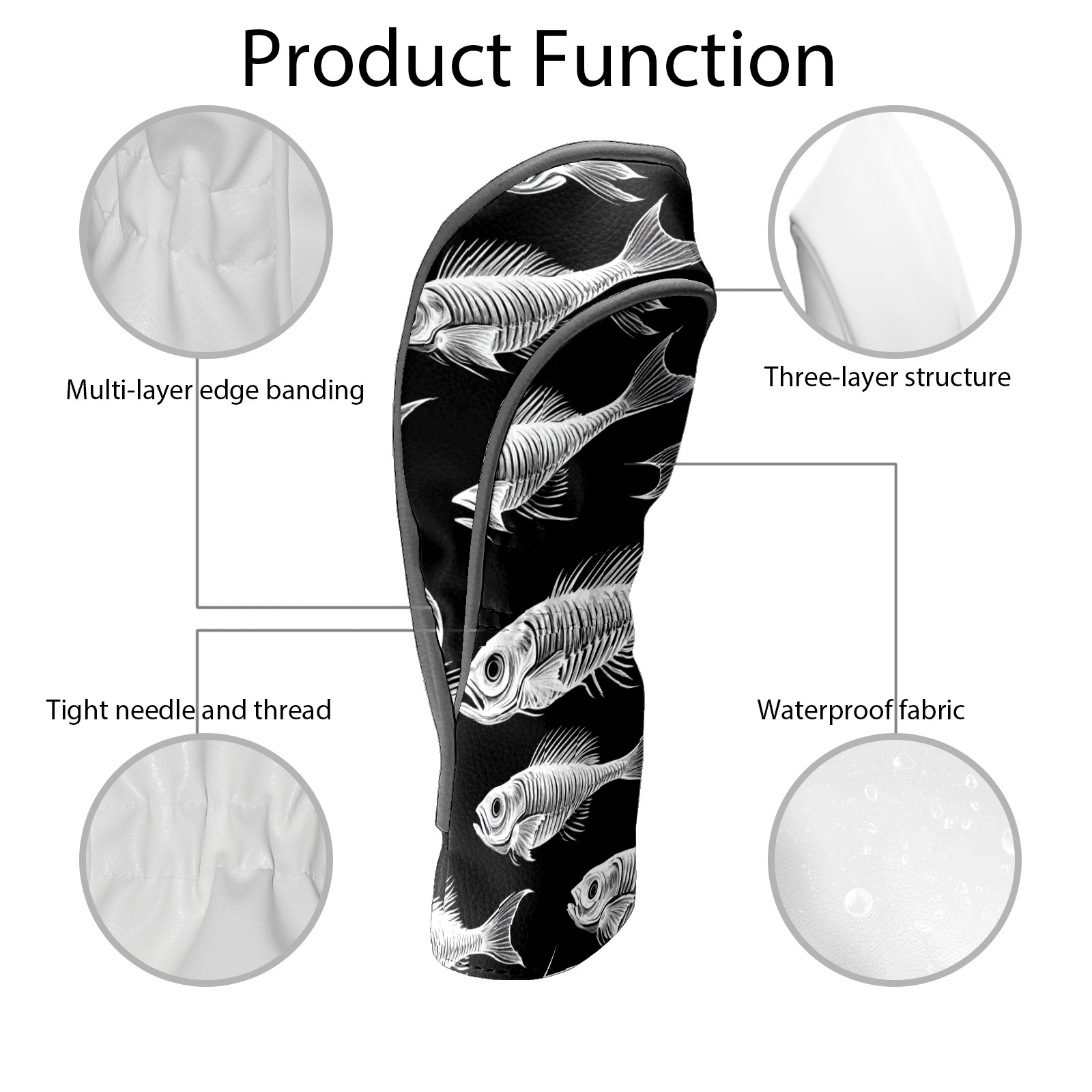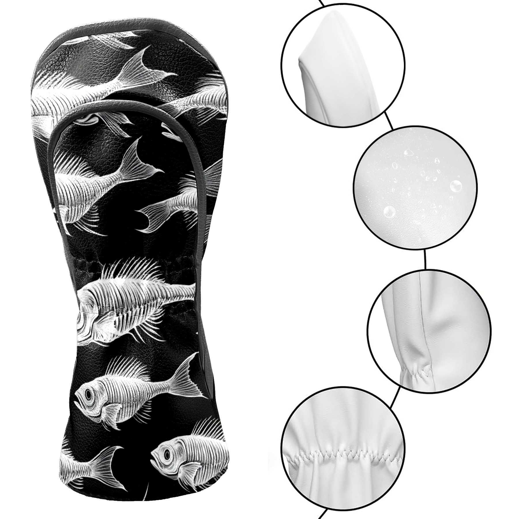 Golf Club Covers PU Leather Waterproof,Golf Club Head Covers for Fairway Woods and Hybrids White Fishbone Pattern Unisex Suitable for Most Brands