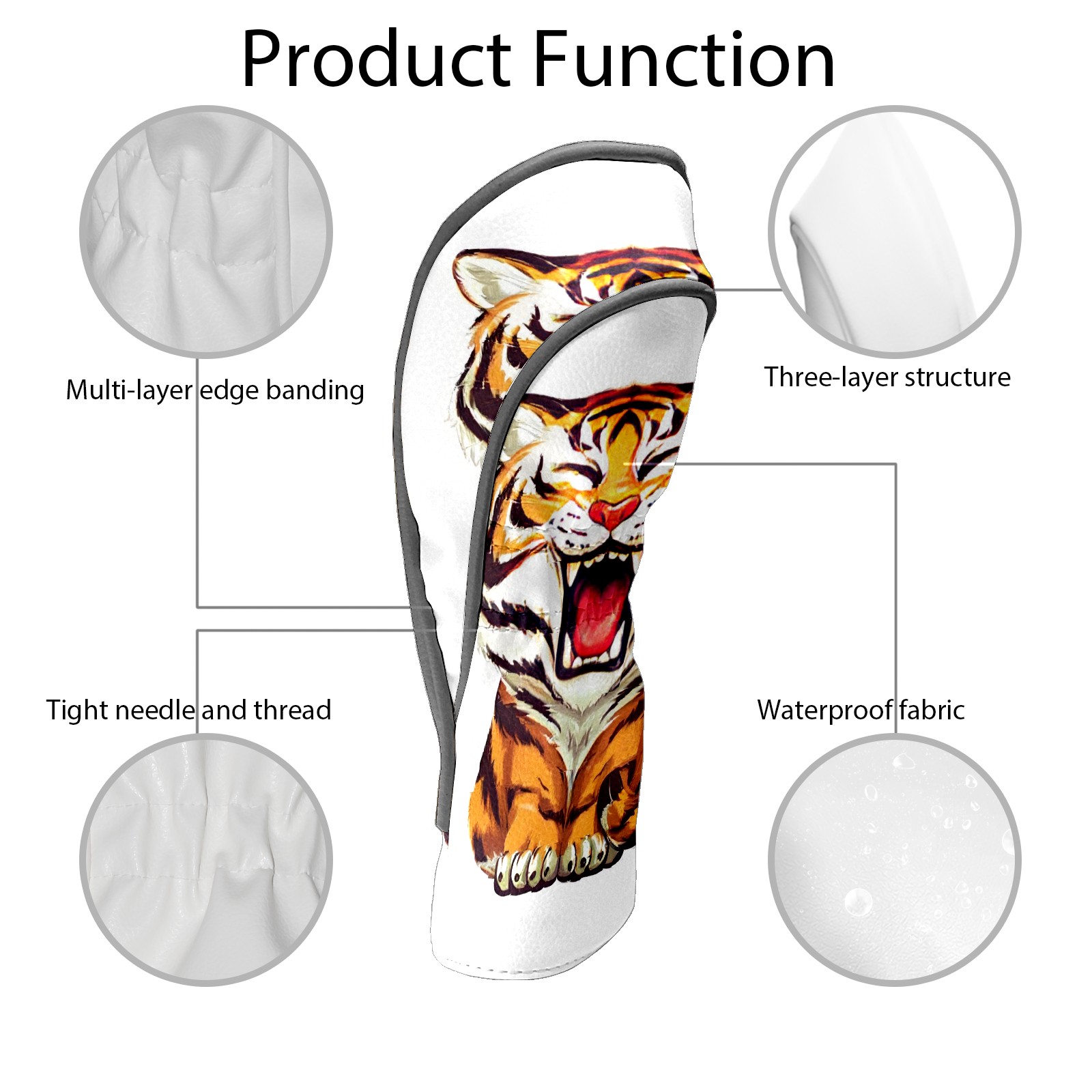 Golf Club Head Covers Counullo for Driver & Fairway Woods Tiger Premium Plush Velvet Lining, Waterproof Golf Headcovers for Scratch Protection Novelty Gift for Men & Women
