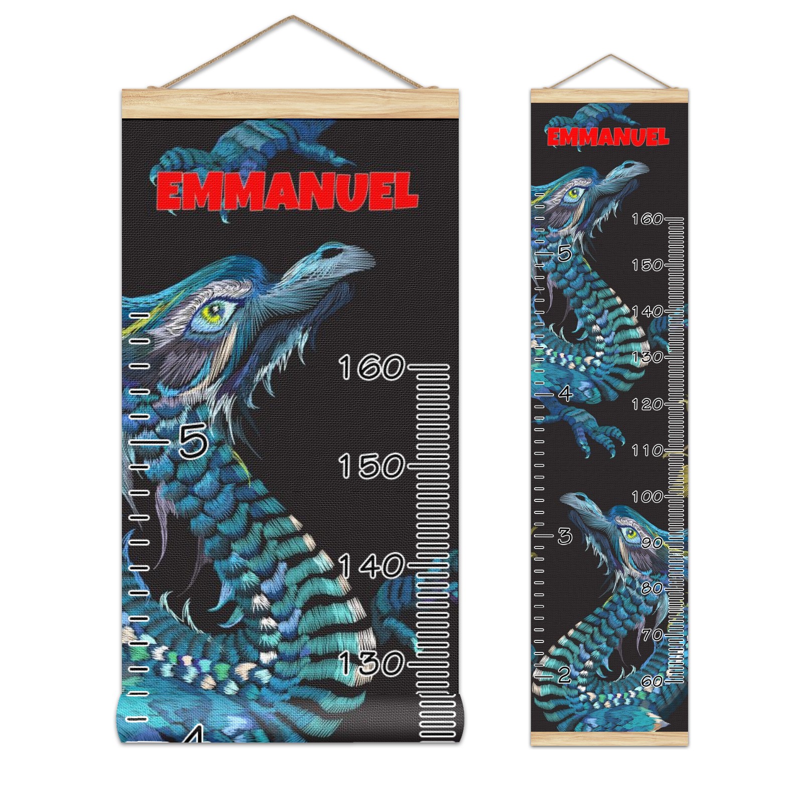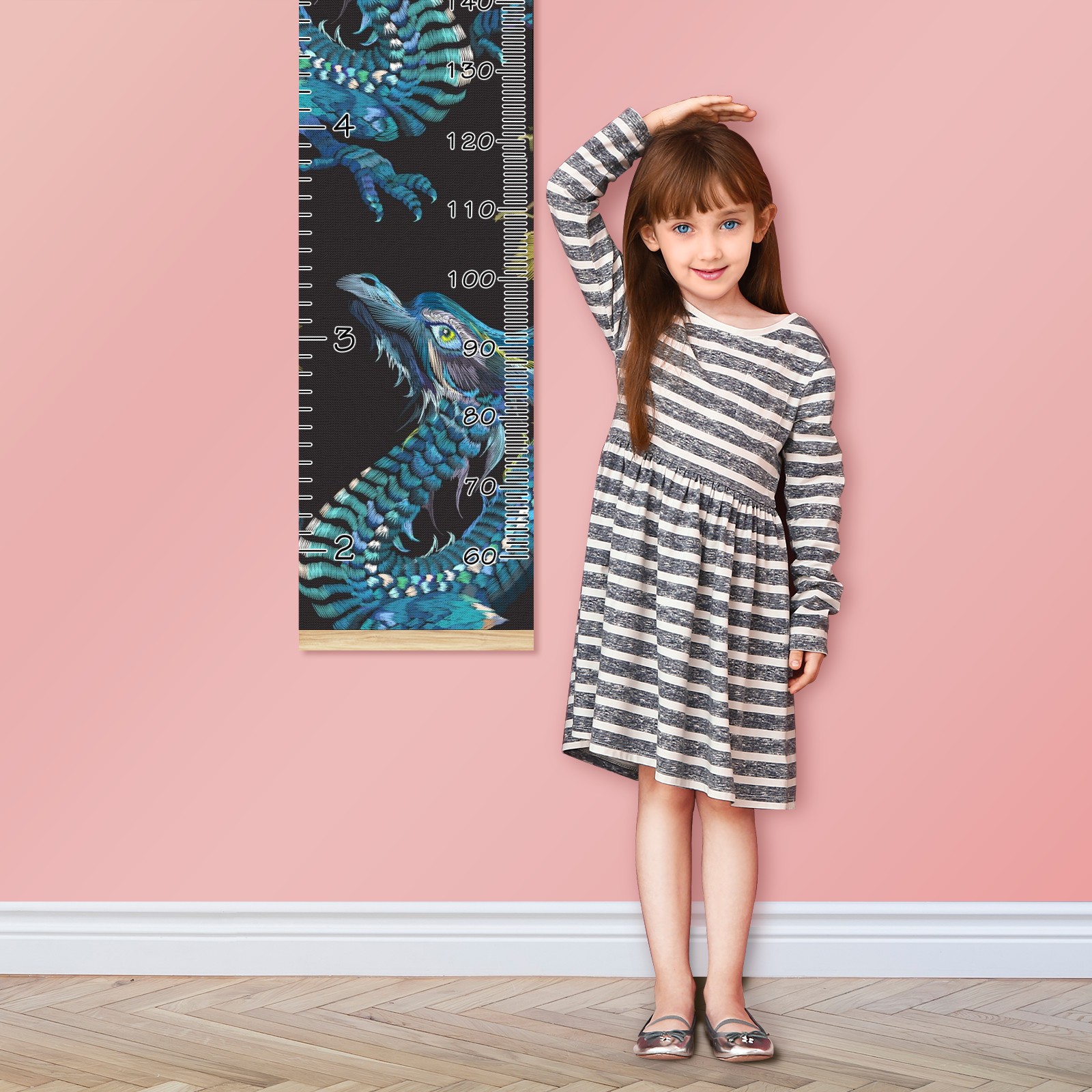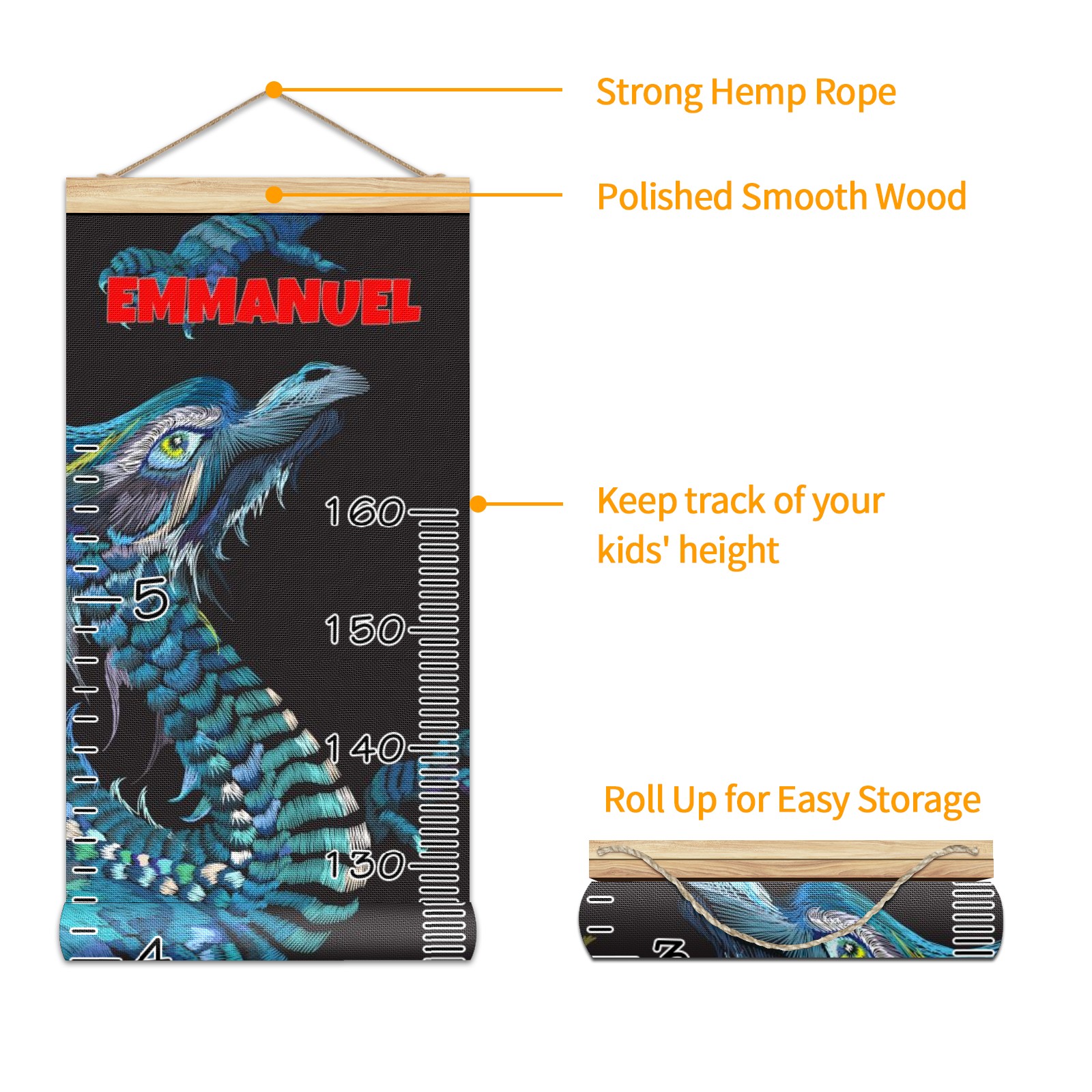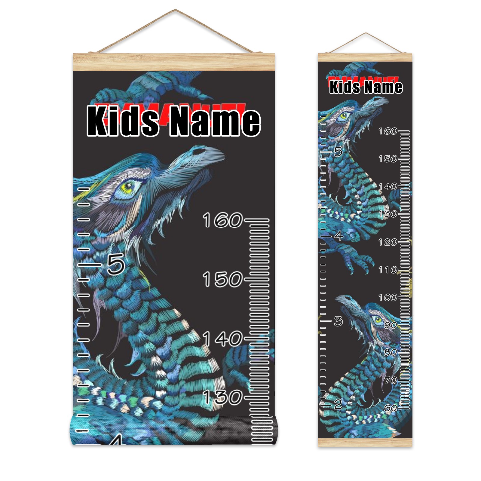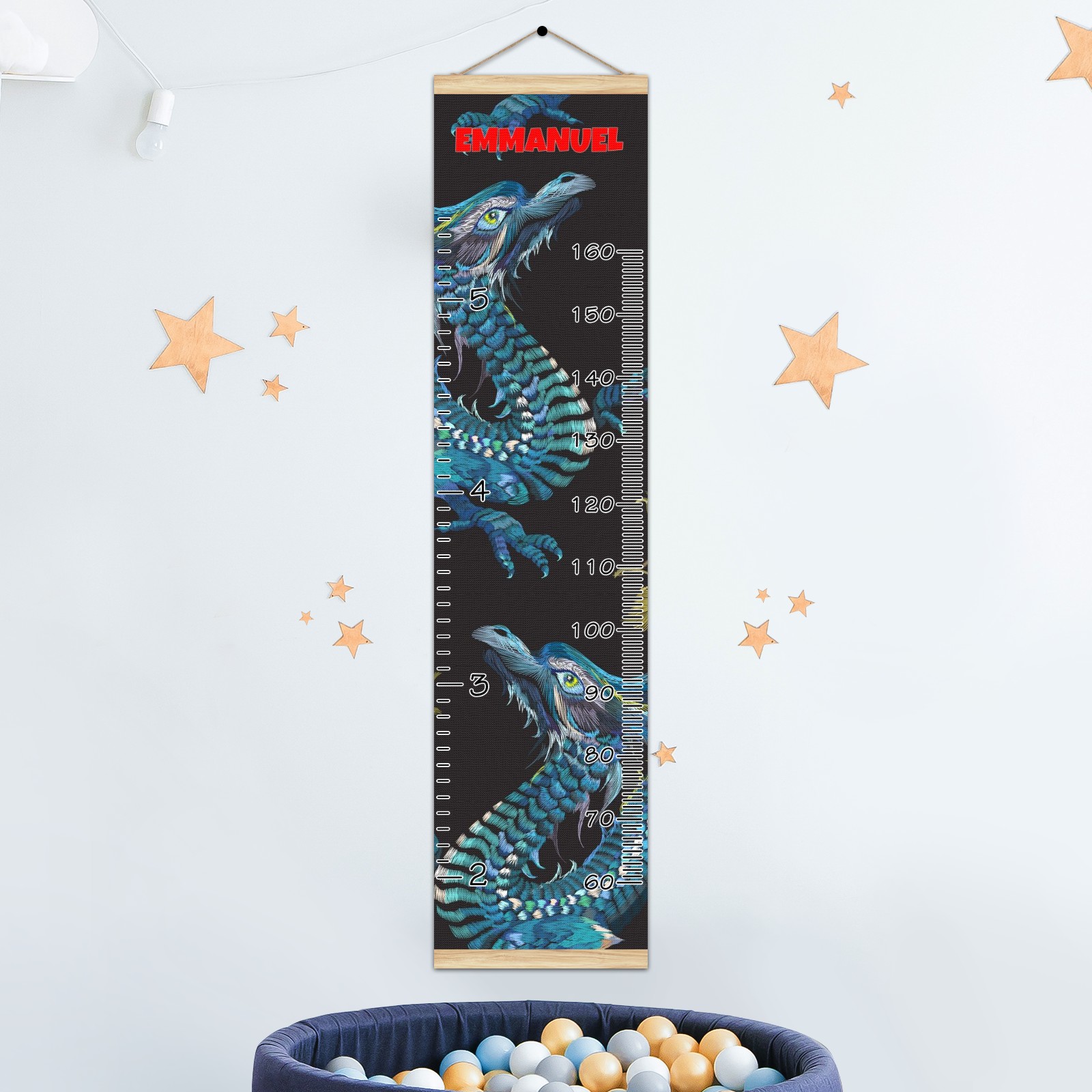 Personalized Kids Name Growth Chart Ruler for Wall Wood Frame Canvas Height Measure Chart 13.4x56 in Hanging Growth Chart Blue Dragon9.22 Boys Girls Room Decor