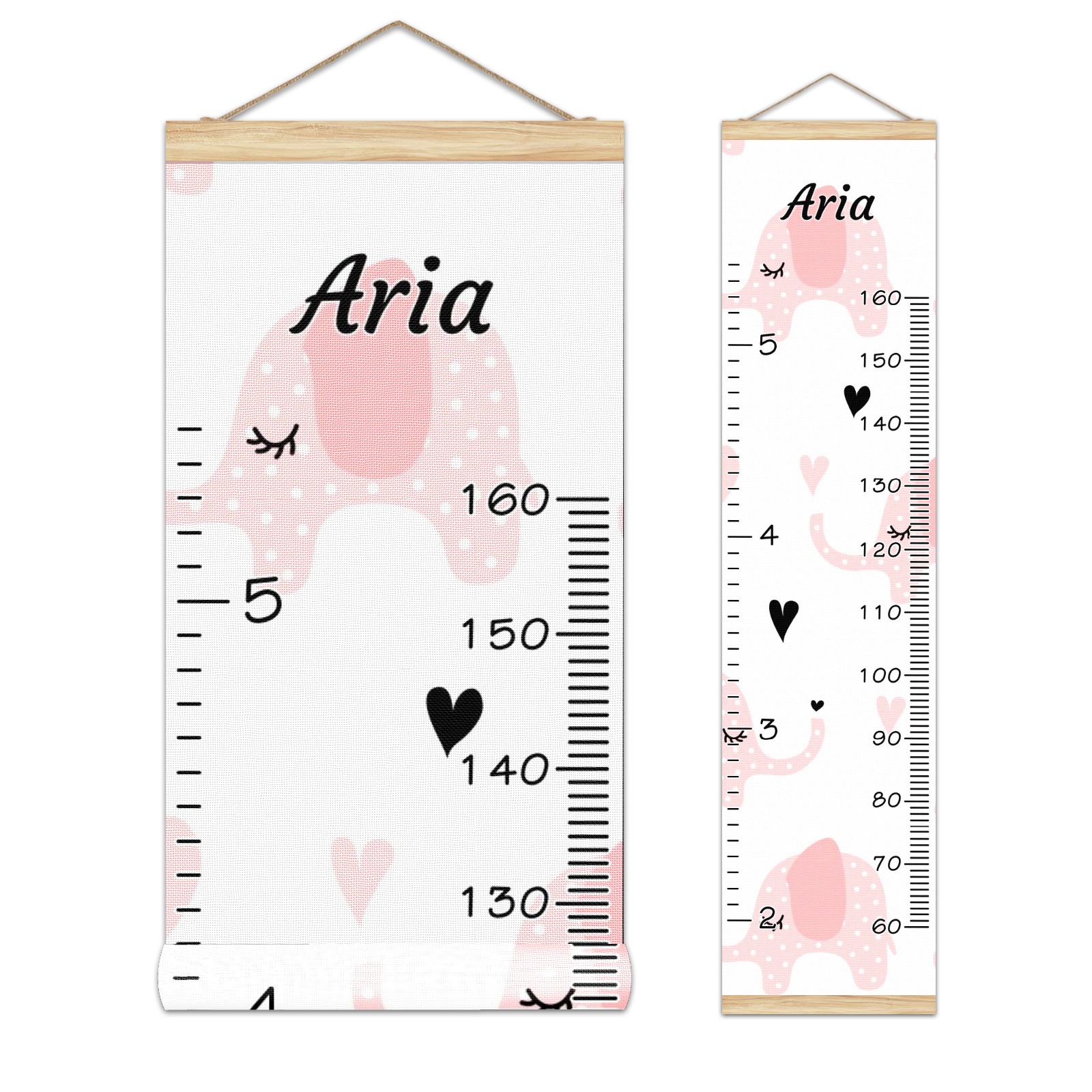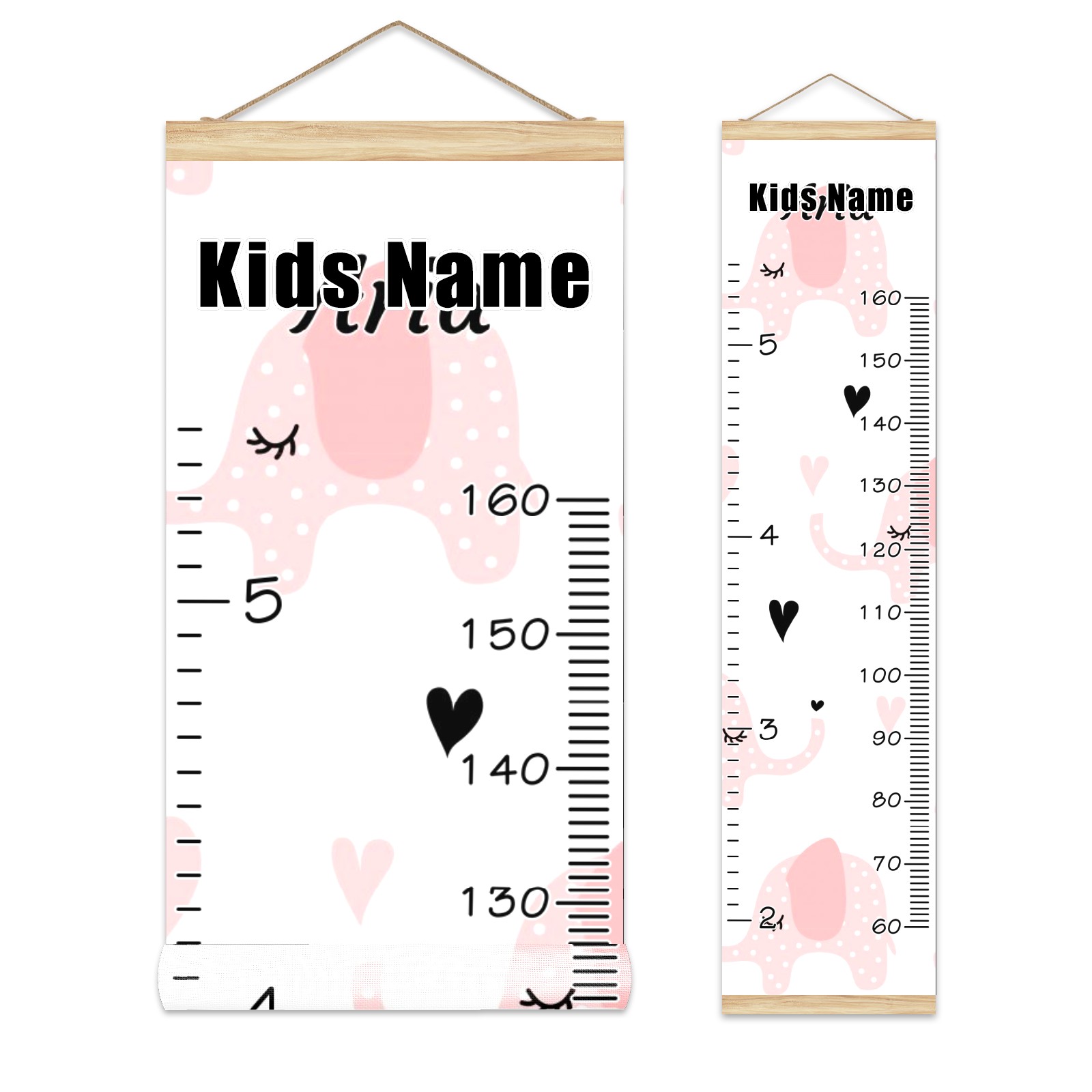 Personalized Kids Name Growth Chart Ruler for Wall Wood Frame Canvas Height Measure Chart 13.4x56 in Hanging Growth Chart Pink Elephant9.22 Boys Girls Room Decor