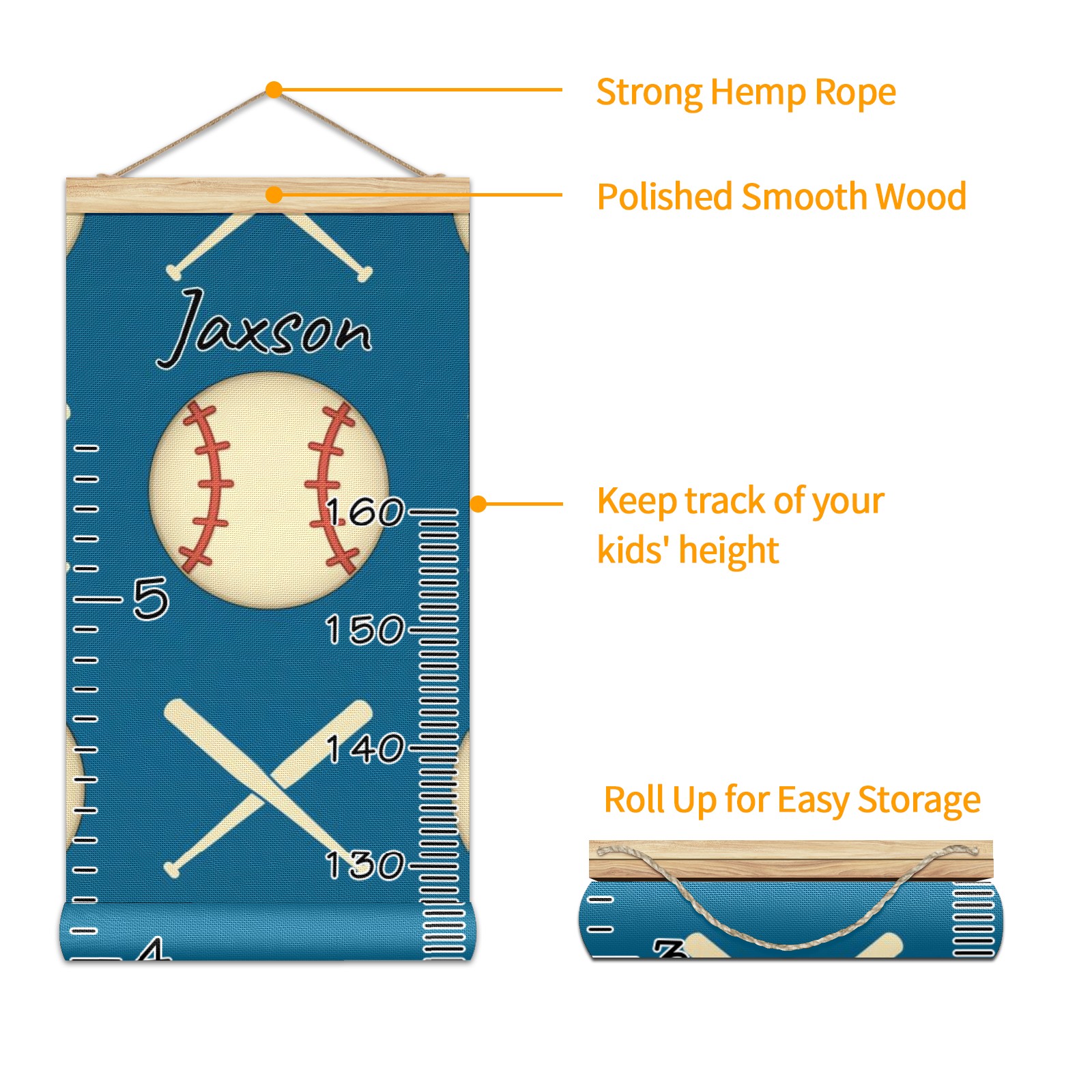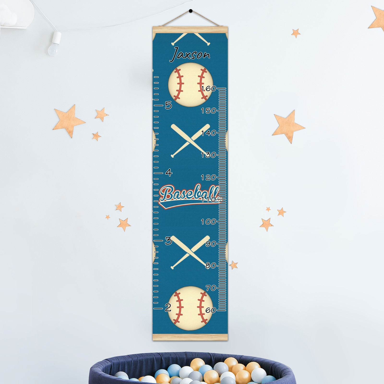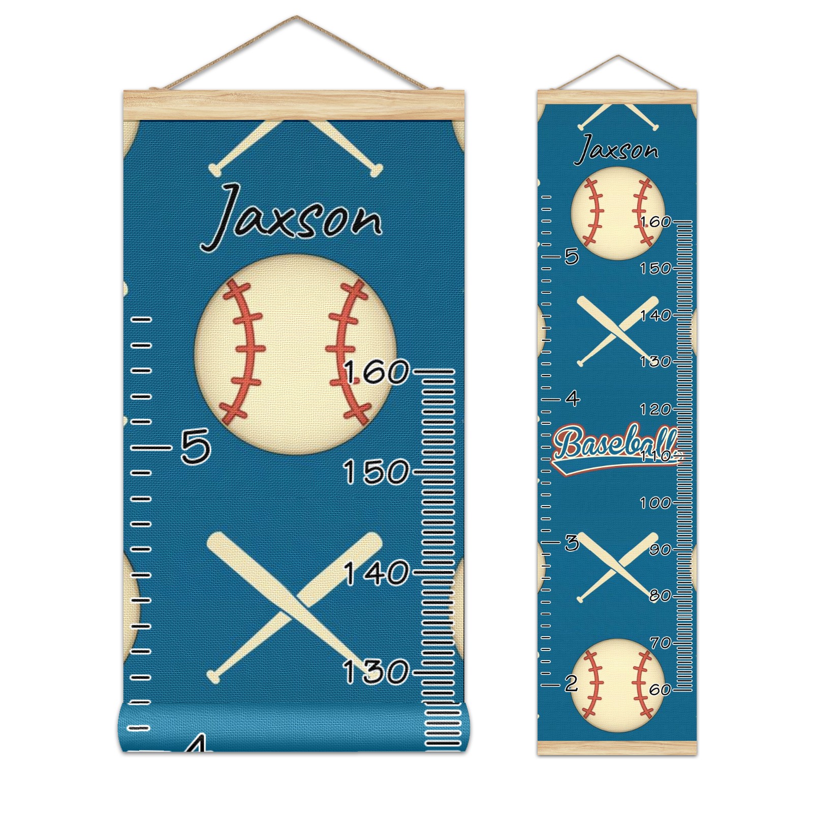 Personalized Kids Name Growth Chart Ruler for Wall Wood Frame Canvas Height Measure Chart 13.4x56 in Hanging Growth Chart Baseball And Baseball Bat Sport9.22 Boys Girls Room Decor