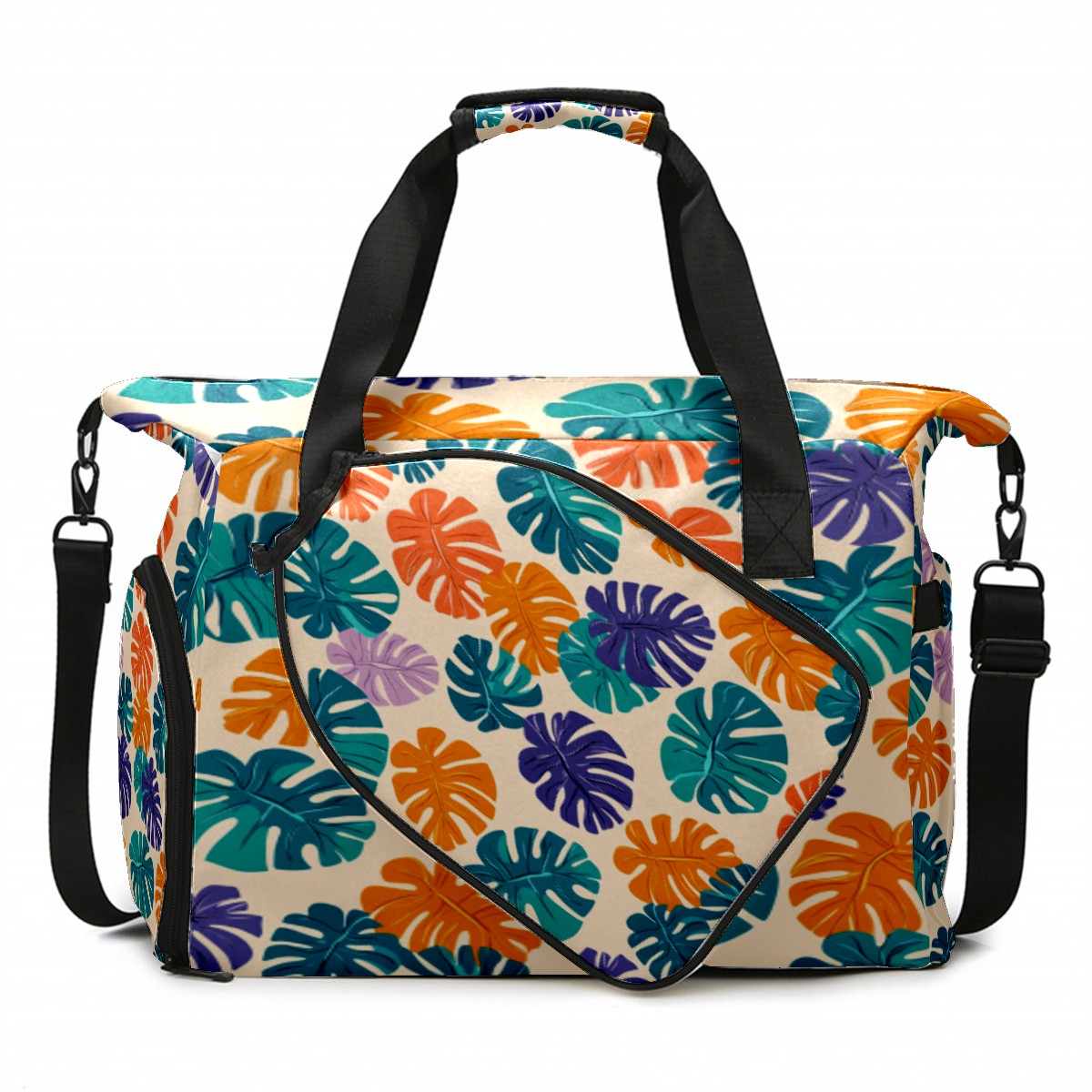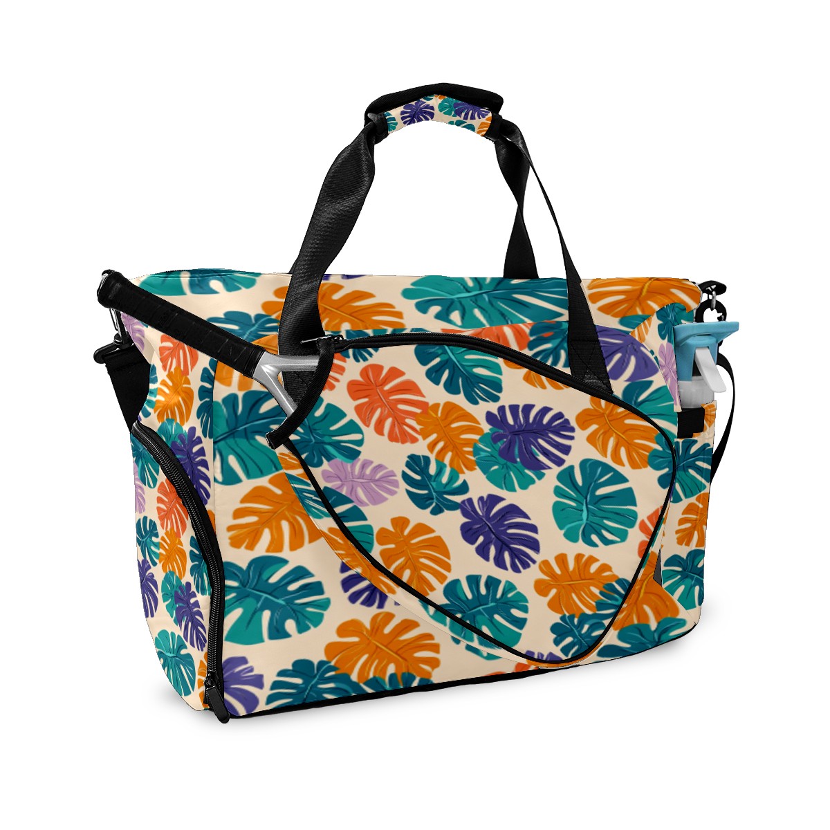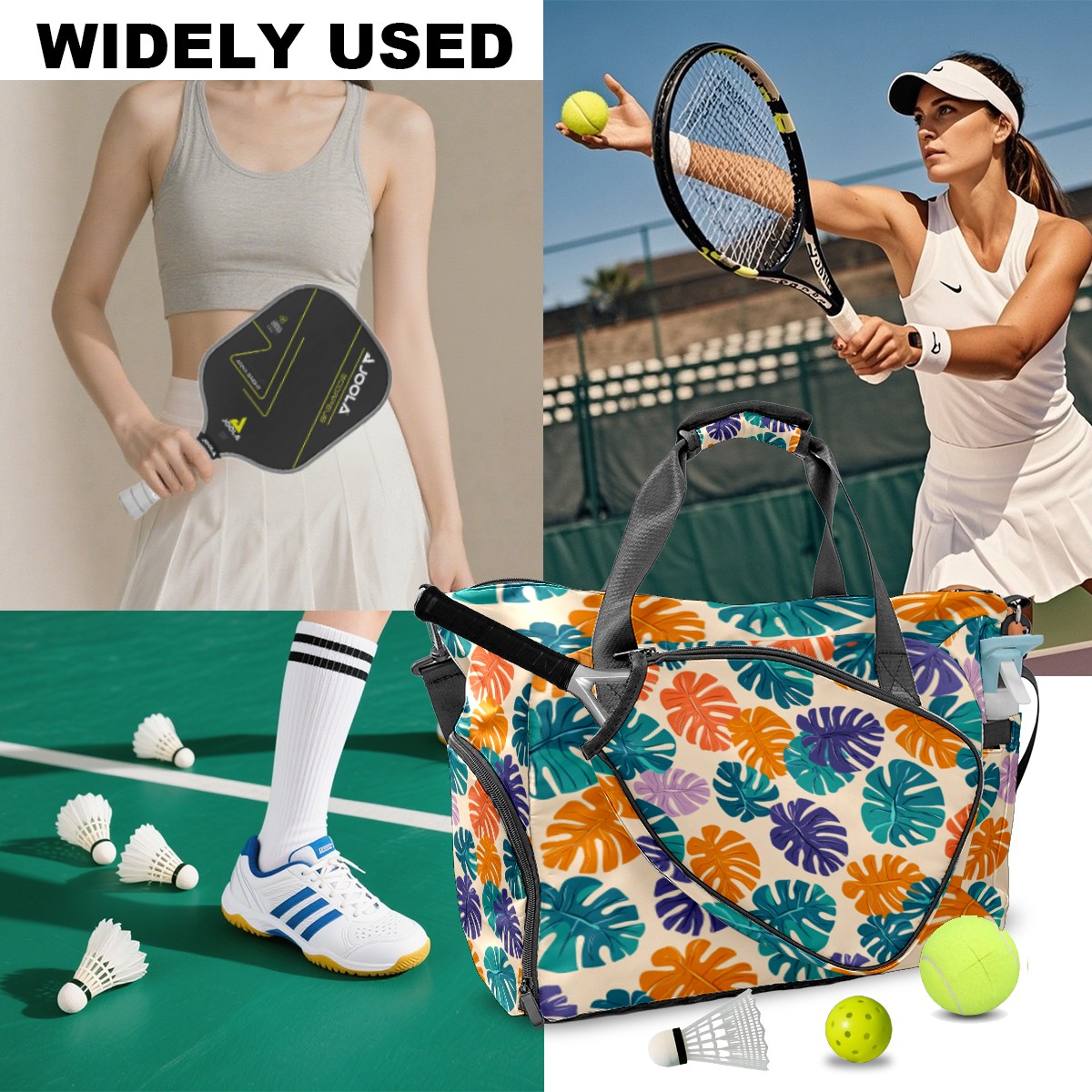 Tennis Bag with Shoe Compartment Large Capacity & Waterproof Tennis Racquet Bags for Men Women Racket Backpack with Removable Shoulder Strap Tropical Leaf Pattern