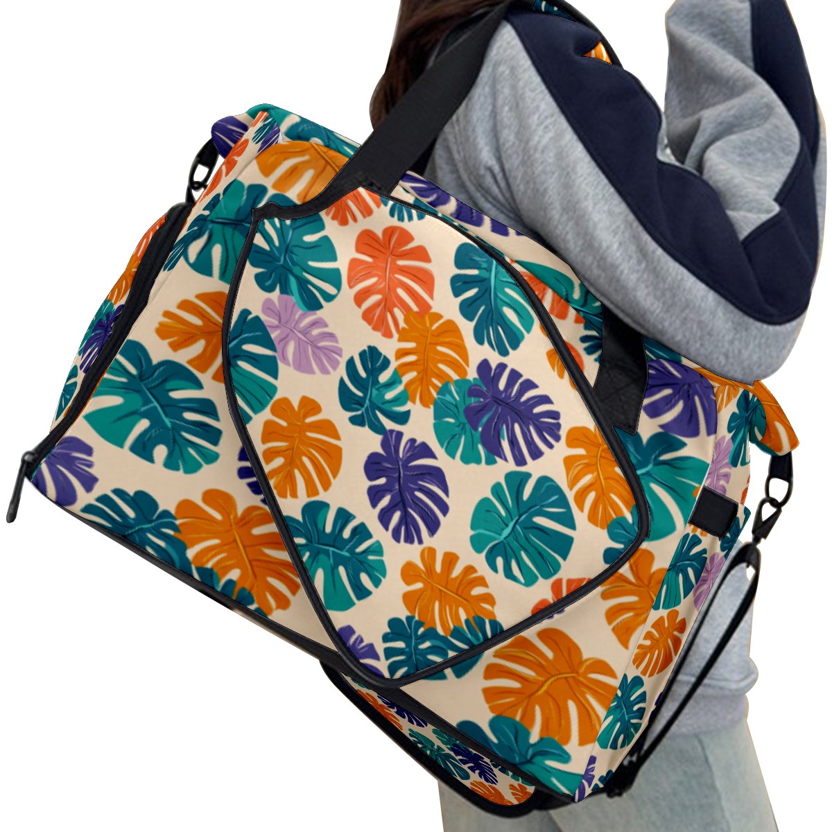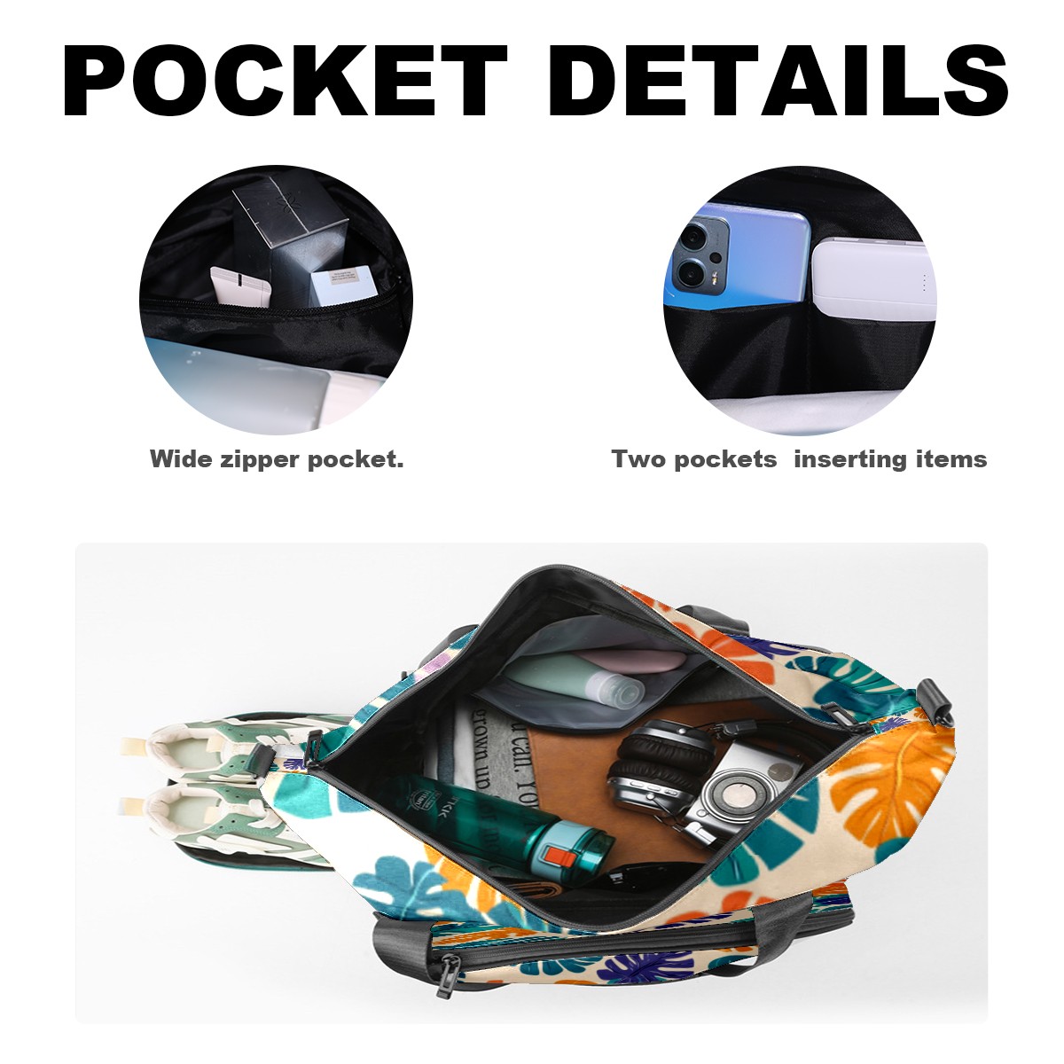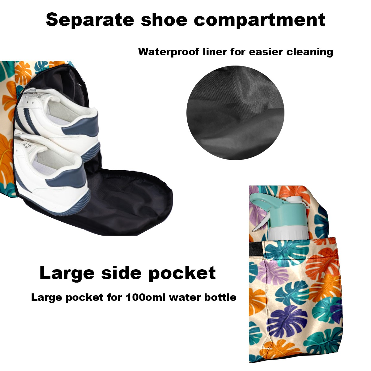 Tennis Bag with Shoe Compartment Large Capacity & Waterproof Tennis Racquet Bags for Men Women Racket Backpack with Removable Shoulder Strap Tropical Leaf Pattern