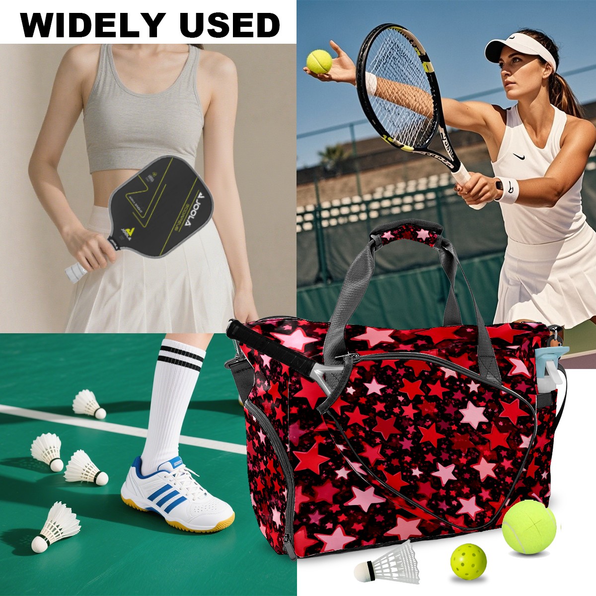 <p>This multifunctional tennis bag is designed specifically for sports and travel, featuring ventilation separation and waterproof protection. Spacious main compartment for easy storage of clothing, shoes, and socks, independent ventilated shoe compartment effectively isolates shoes and rackets; The multi inner bag structure facilitates the classification and storage of small items such as tennis balls, mobile phones, cards, etc. It is paired with a dedicated waterproof wet bag to properly handle damp clothing. The bag body is made of high-density waterproof polyester material, which is lightweight, wear-resistant, and easy to clean. The padded handheld design enhances carrying comfort. Whether it's daily training, short trips, or as a festival gift, it's a practical and thoughtful choice.</p>