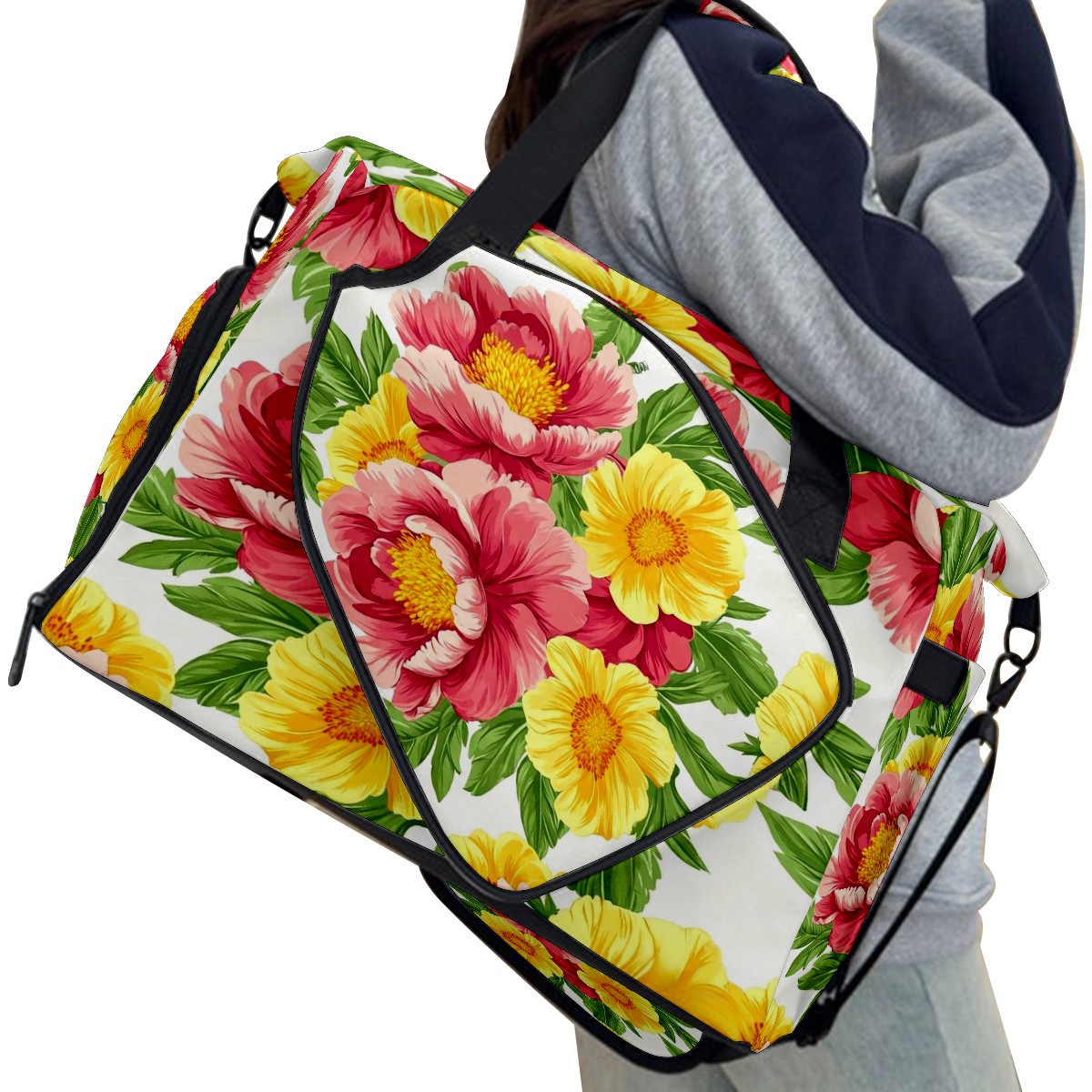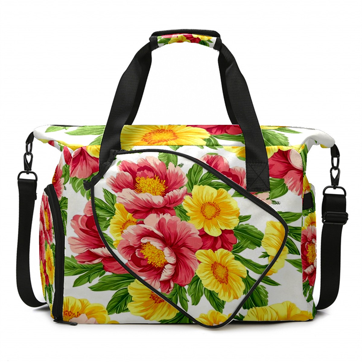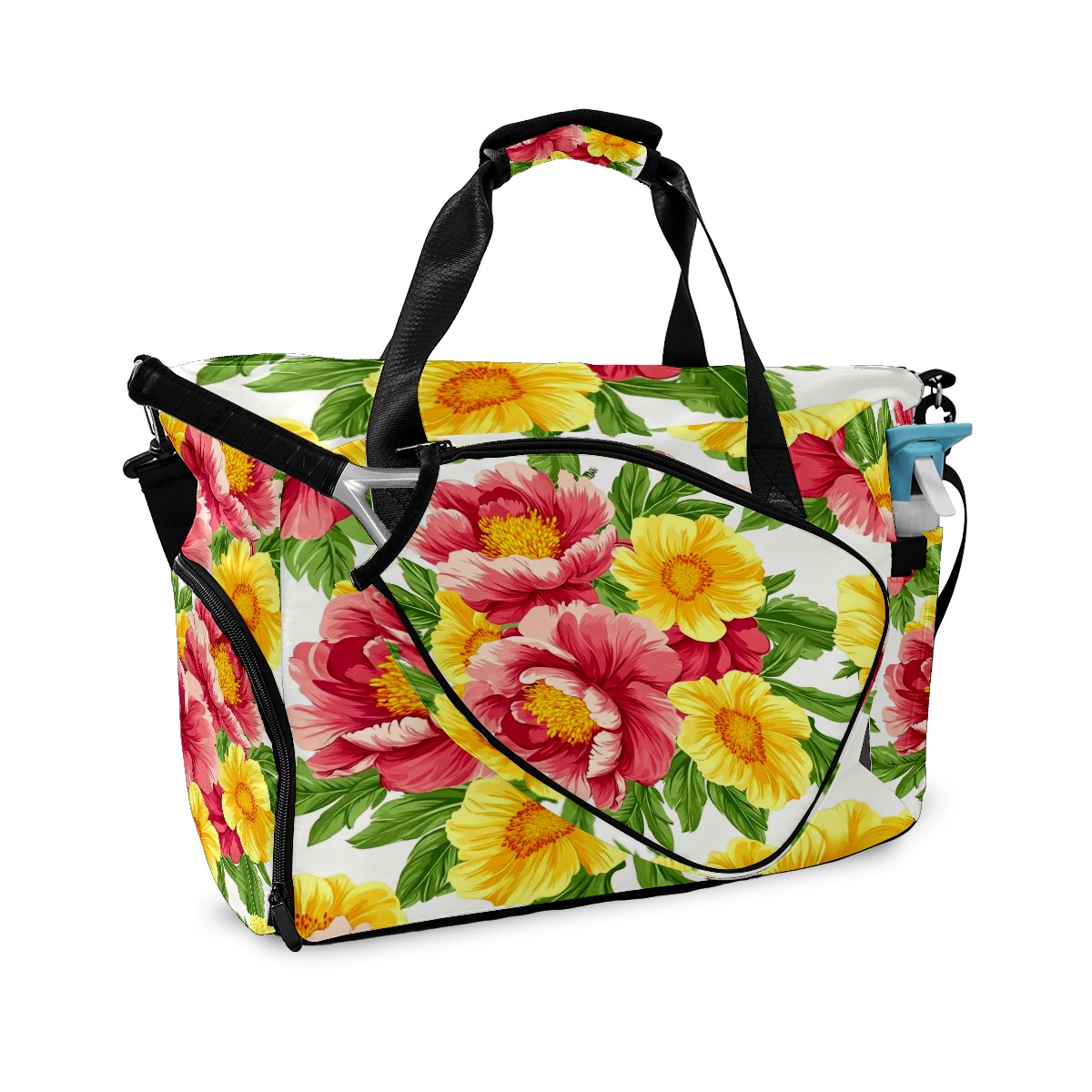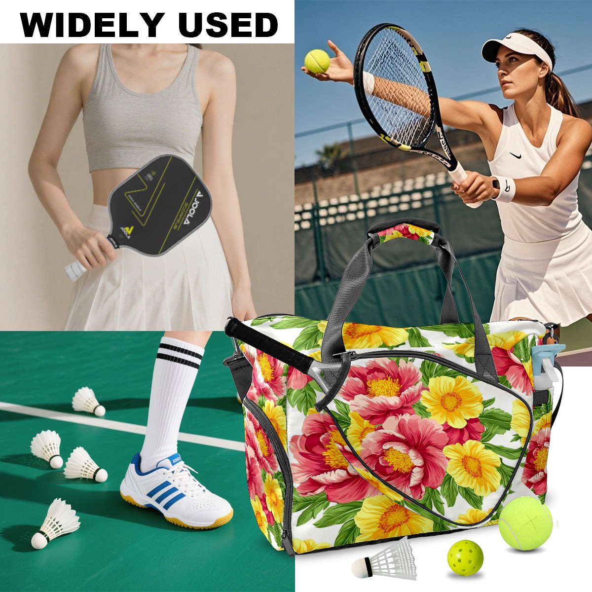 Tennis Bag with Shoe Compartment Large Capacity & Waterproof Tennis Racquet Bags for Men Women Racket Backpack with Removable Shoulder Strap Peony And Daisy Pattern