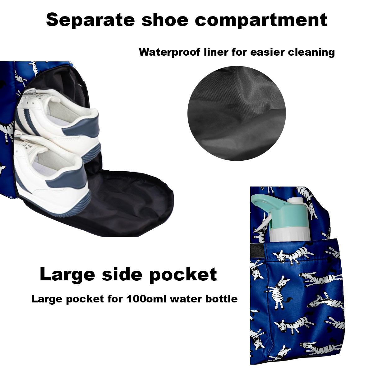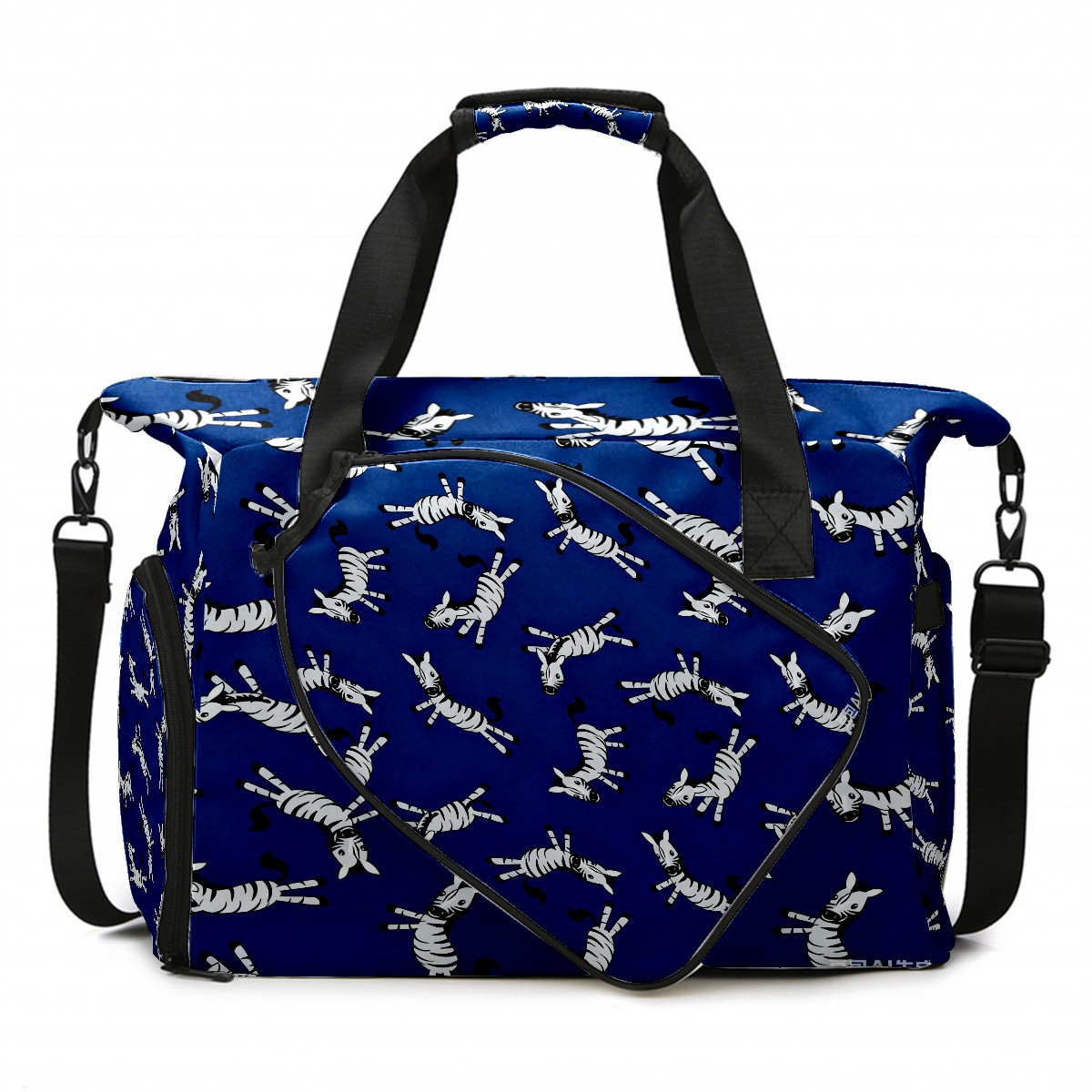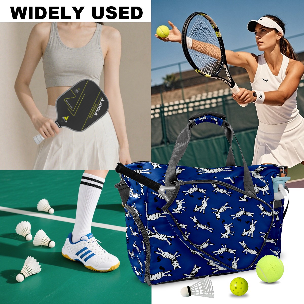 Tennis Bag with Shoe Compartment Large Capacity & Waterproof Tennis Racquet Bags for Men Women Racket Backpack with Removable Shoulder Strap Cute Cartoon Zebra