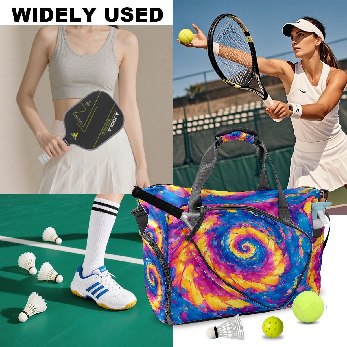 <p>This multifunctional tennis bag is designed specifically for sports and travel, featuring ventilation separation and waterproof protection. Spacious main compartment for easy storage of clothing, shoes, and socks, independent ventilated shoe compartment effectively isolates shoes and rackets; The multi inner bag structure facilitates the classification and storage of small items such as tennis balls, mobile phones, cards, etc. It is paired with a dedicated waterproof wet bag to properly handle damp clothing. The bag body is made of high-density waterproof polyester material, which is lightweight, wear-resistant, and easy to clean. The padded handheld design enhances carrying comfort. Whether it's daily training, short trips, or as a festival gift, it's a practical and thoughtful choice.</p>