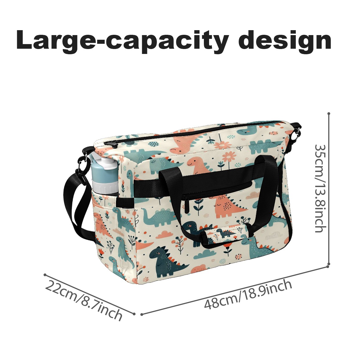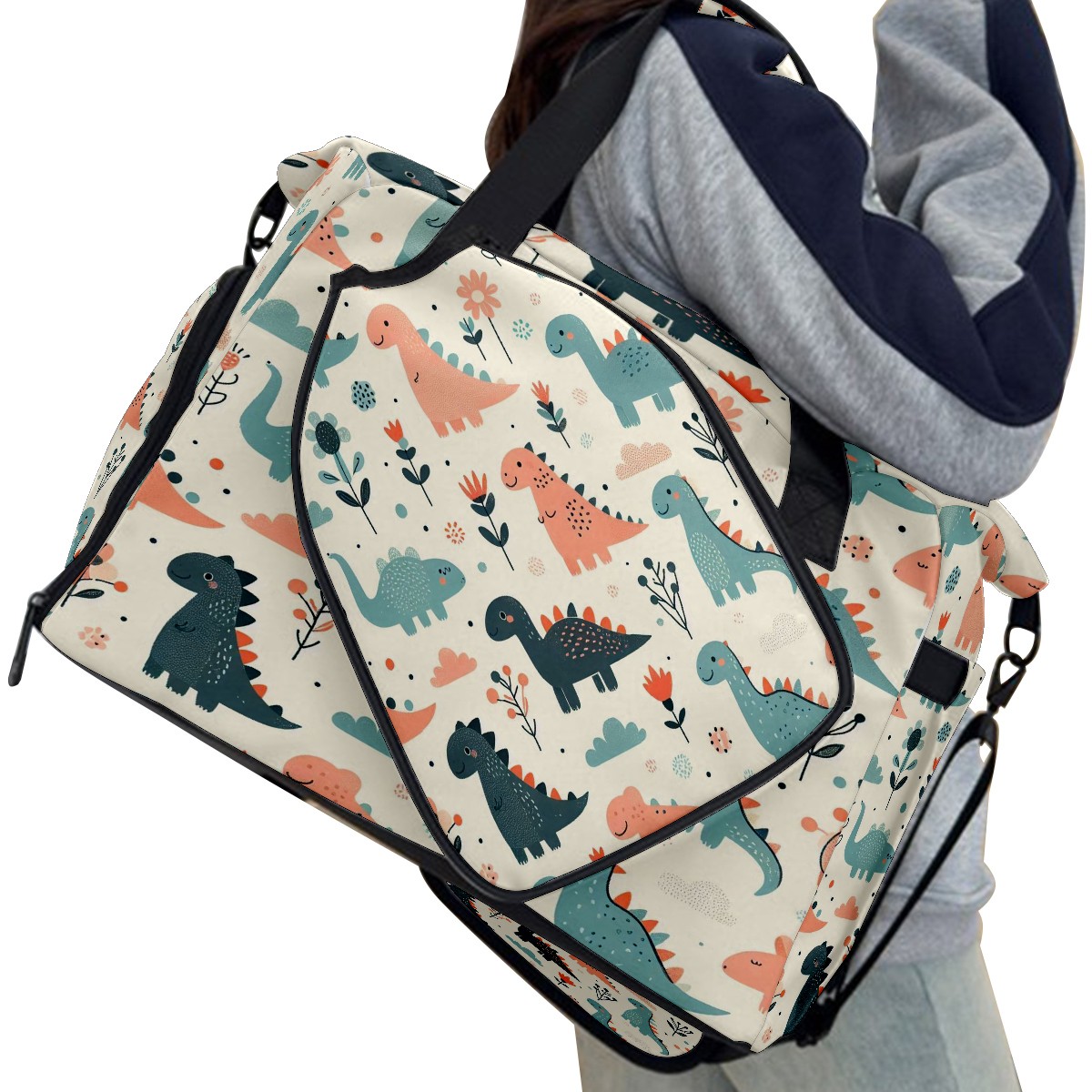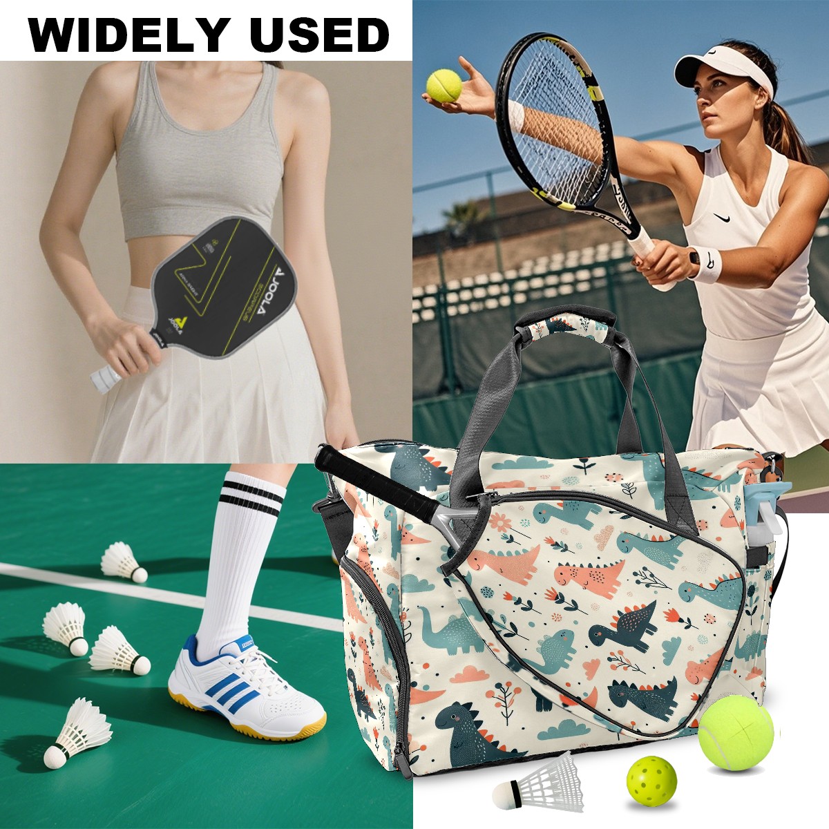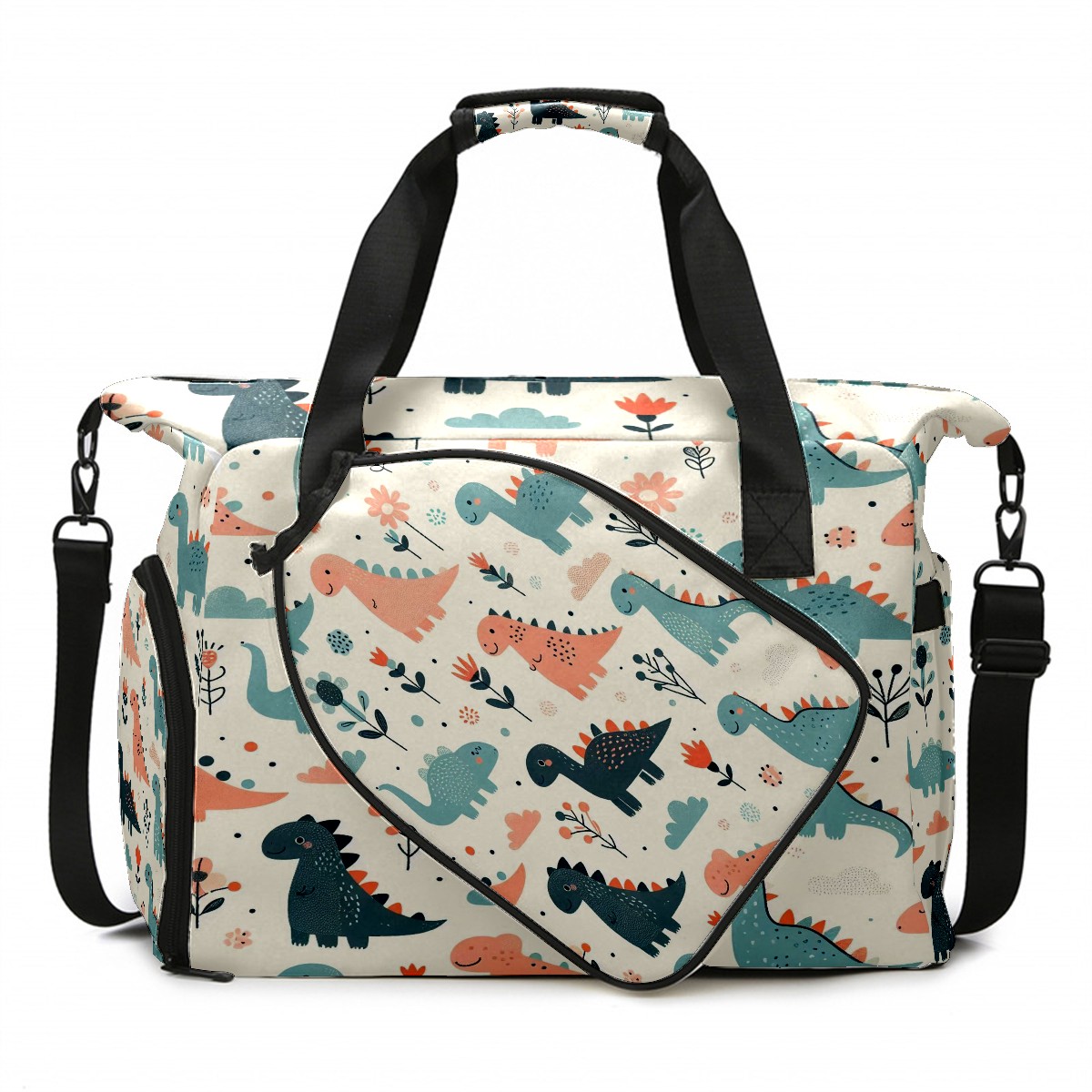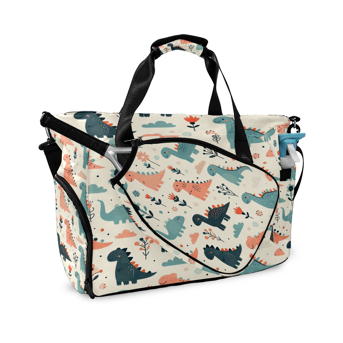 Tennis Bag with Shoe Compartment Large Capacity & Waterproof Tennis Racquet Bags for Men Women Racket Backpack with Removable Shoulder Strap Light Blue Pink Dino Floral