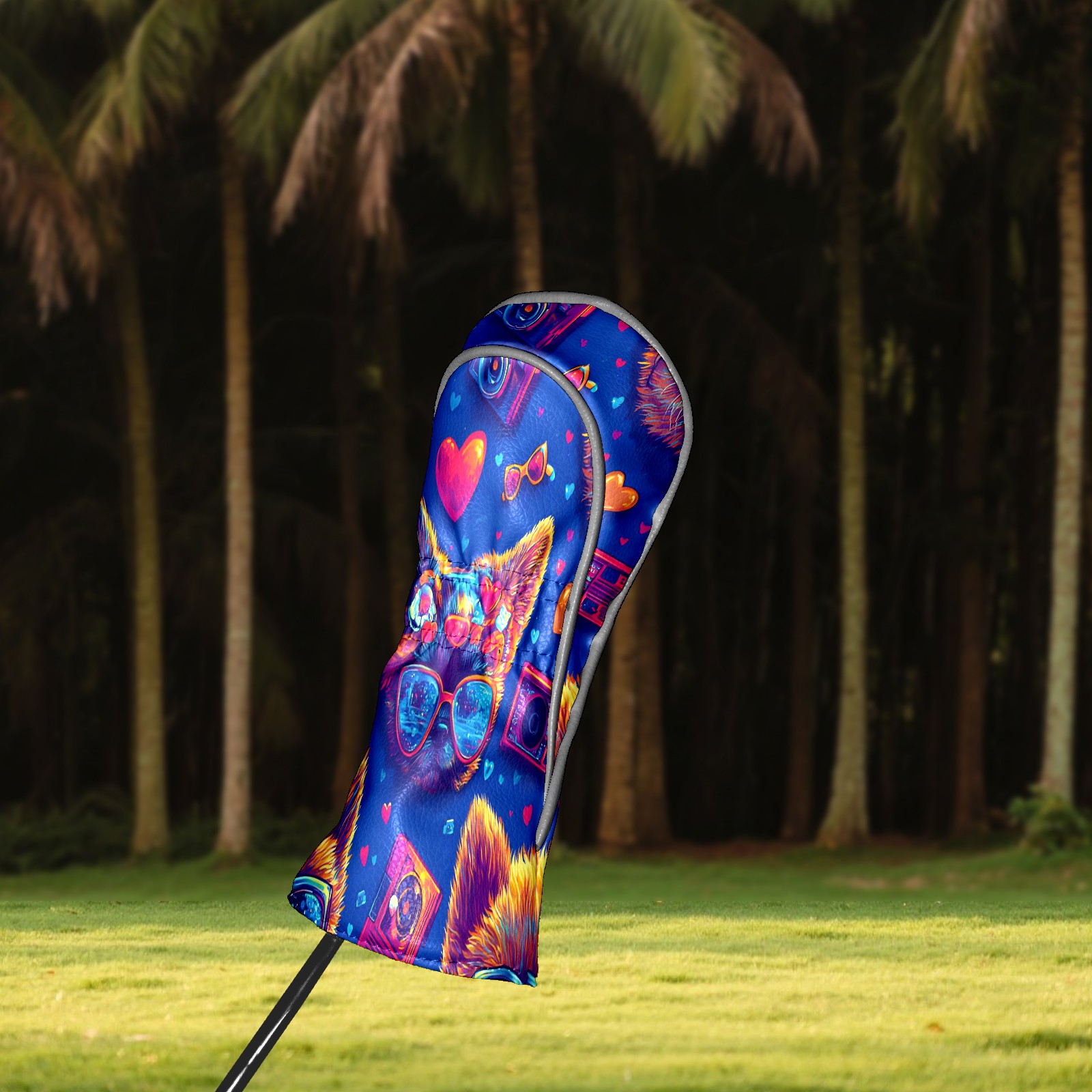 Golf Club Head Covers Counullo for Driver & Fairway Woods Blue Cat Premium Plush Velvet Lining, Waterproof Golf Headcovers for Scratch Protection Novelty Gift for Men & Women