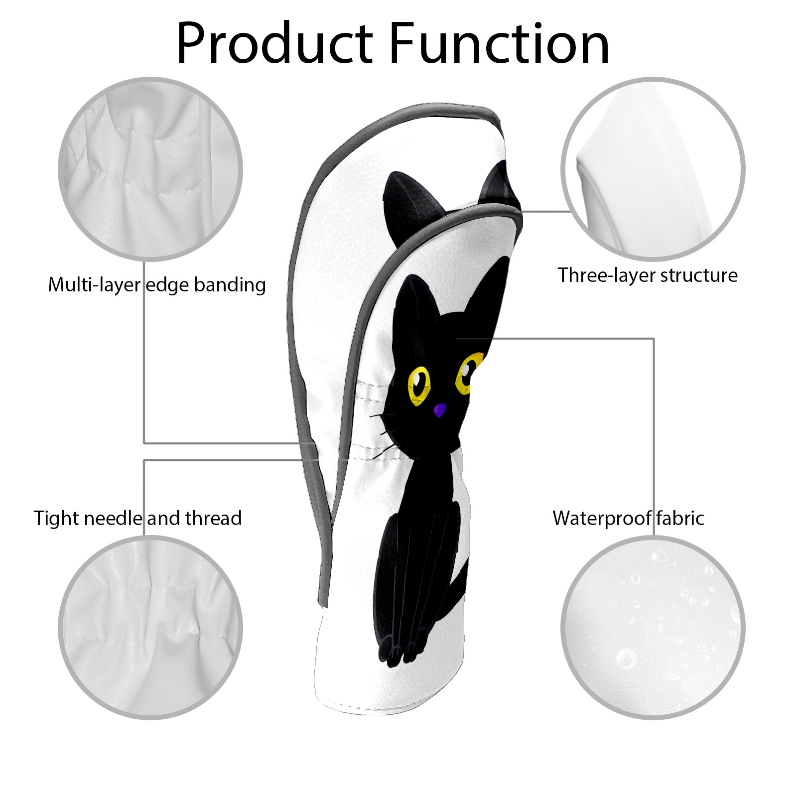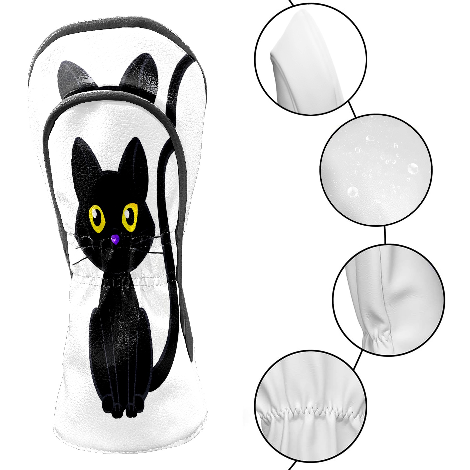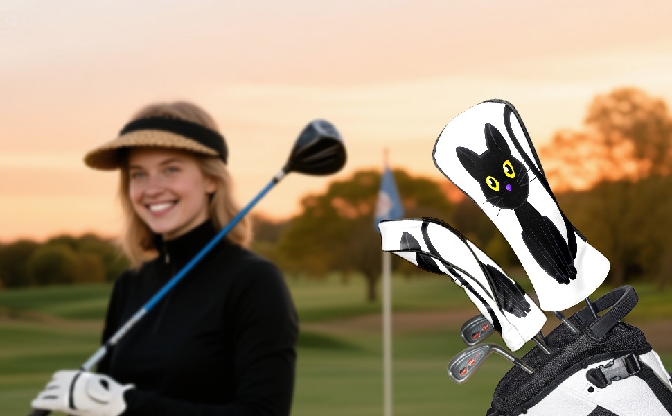 Golf Club Head Covers Counullo for Driver & Fairway Woods Black Cat Premium Plush Velvet Lining, Waterproof Golf Headcovers for Scratch Protection Novelty Gift for Men & Women
