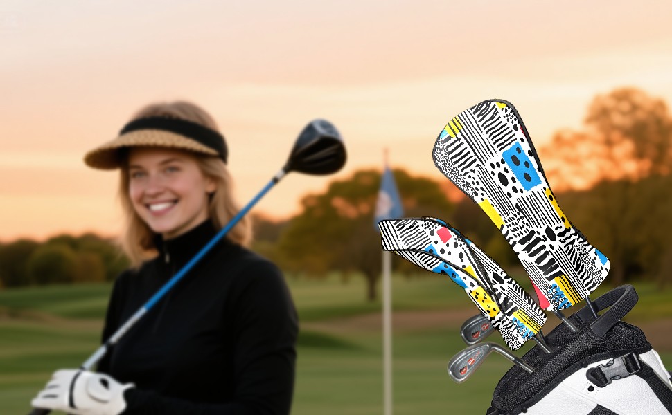 Golf Club Head Covers Counullo for Driver & Fairway Woods Colorful Shape Premium Plush Velvet Lining, Waterproof Golf Headcovers for Scratch Protection Novelty Gift for Men & Women