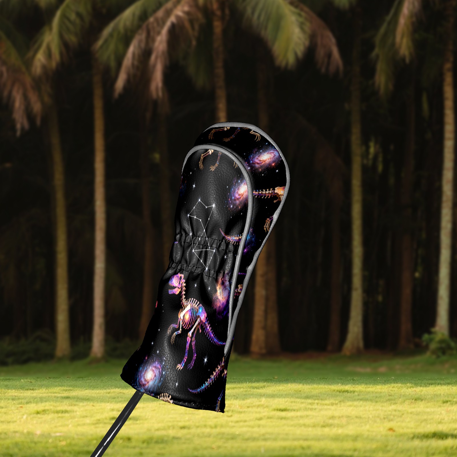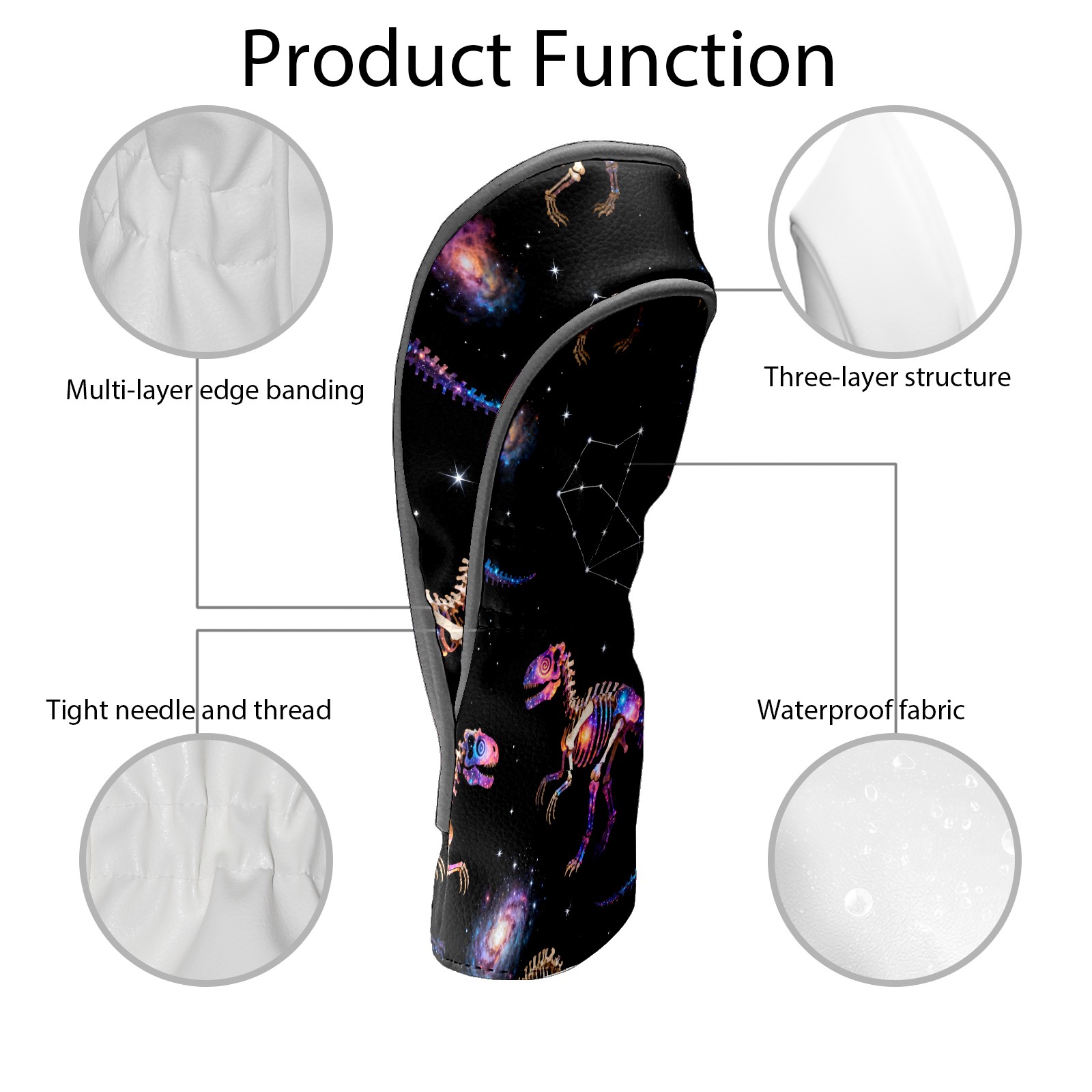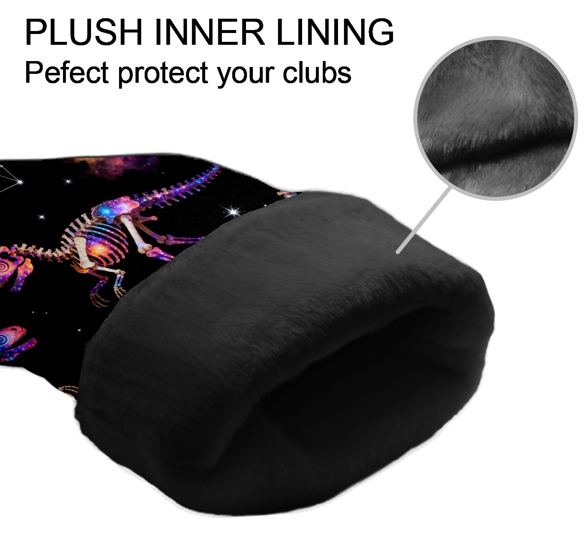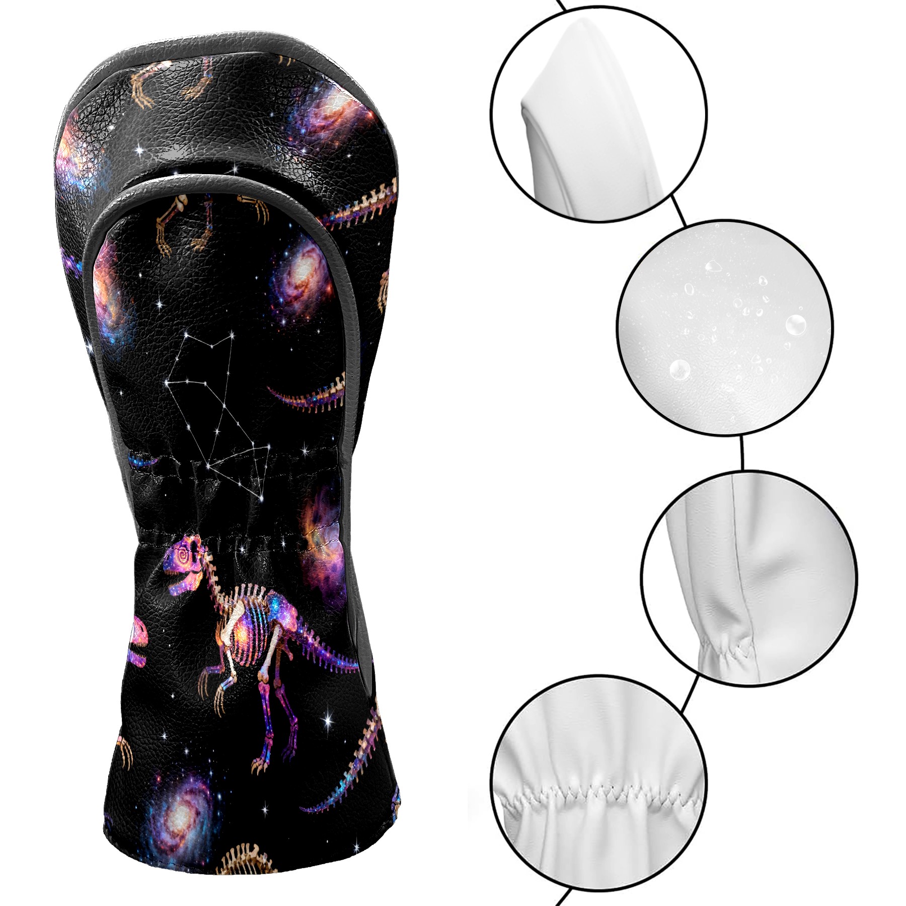 Golf Club Head Covers Black Dinosaur for Driver, Hybrid, Putter - Waterproof, Velvet Lining, Gift for Men & Women