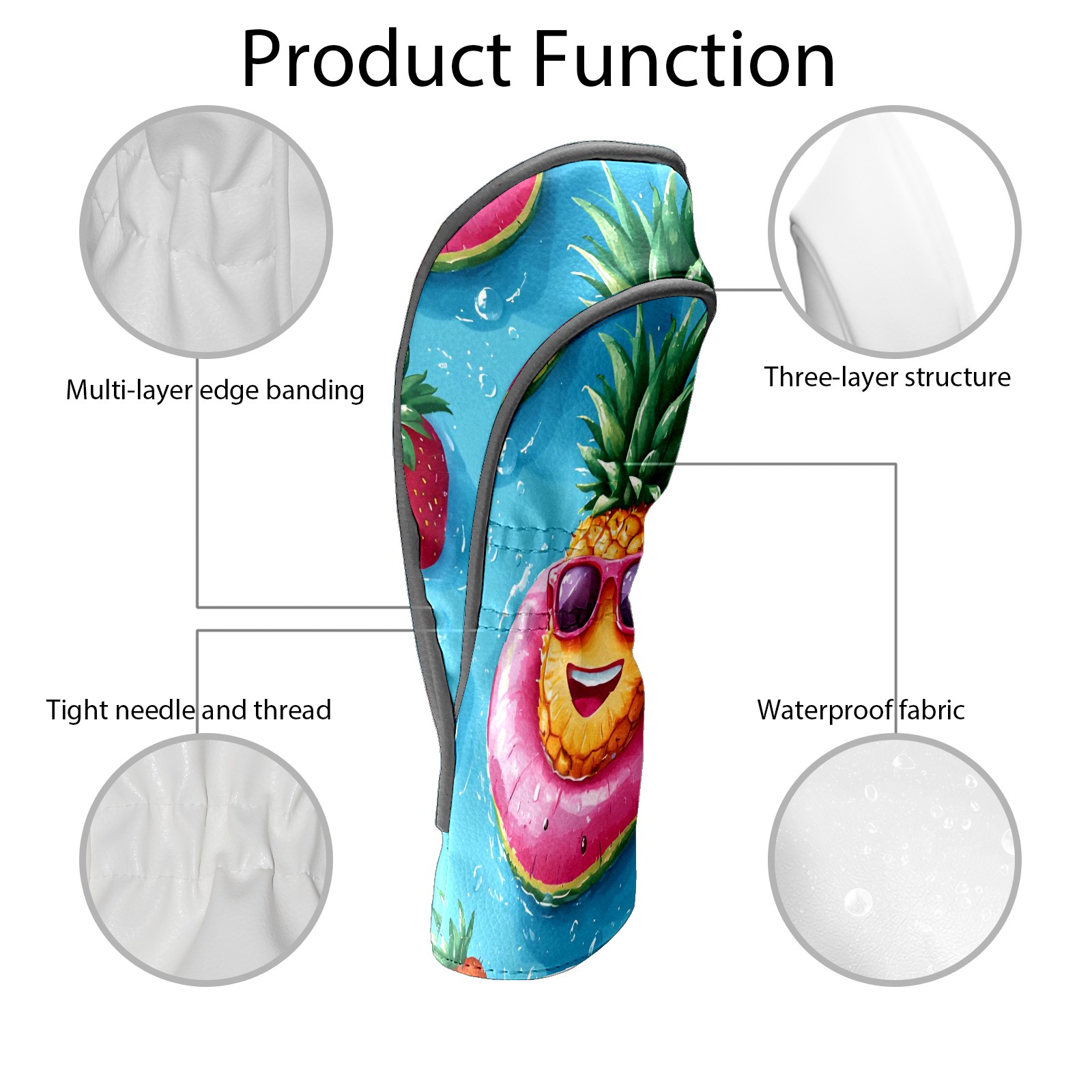 Golf Club Head Covers Blue FruitFloat for Driver, Hybrid, Putter - Waterproof, Velvet Lining, Gift for Men & Women