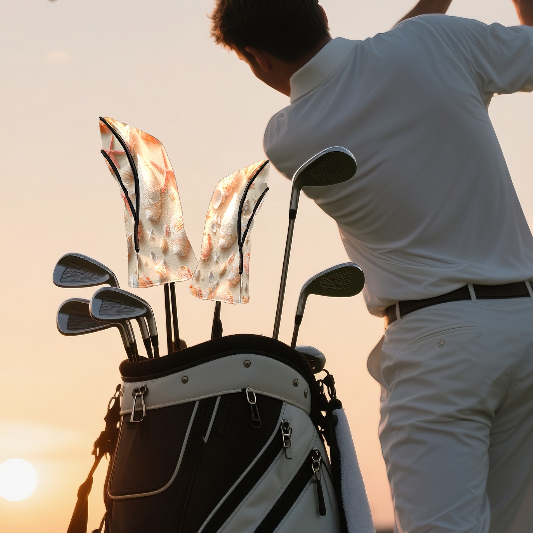 Golf Club Head Covers Beige Shell for Driver, Hybrid, Putter - Waterproof, Velvet Lining, Gift for Men & Women