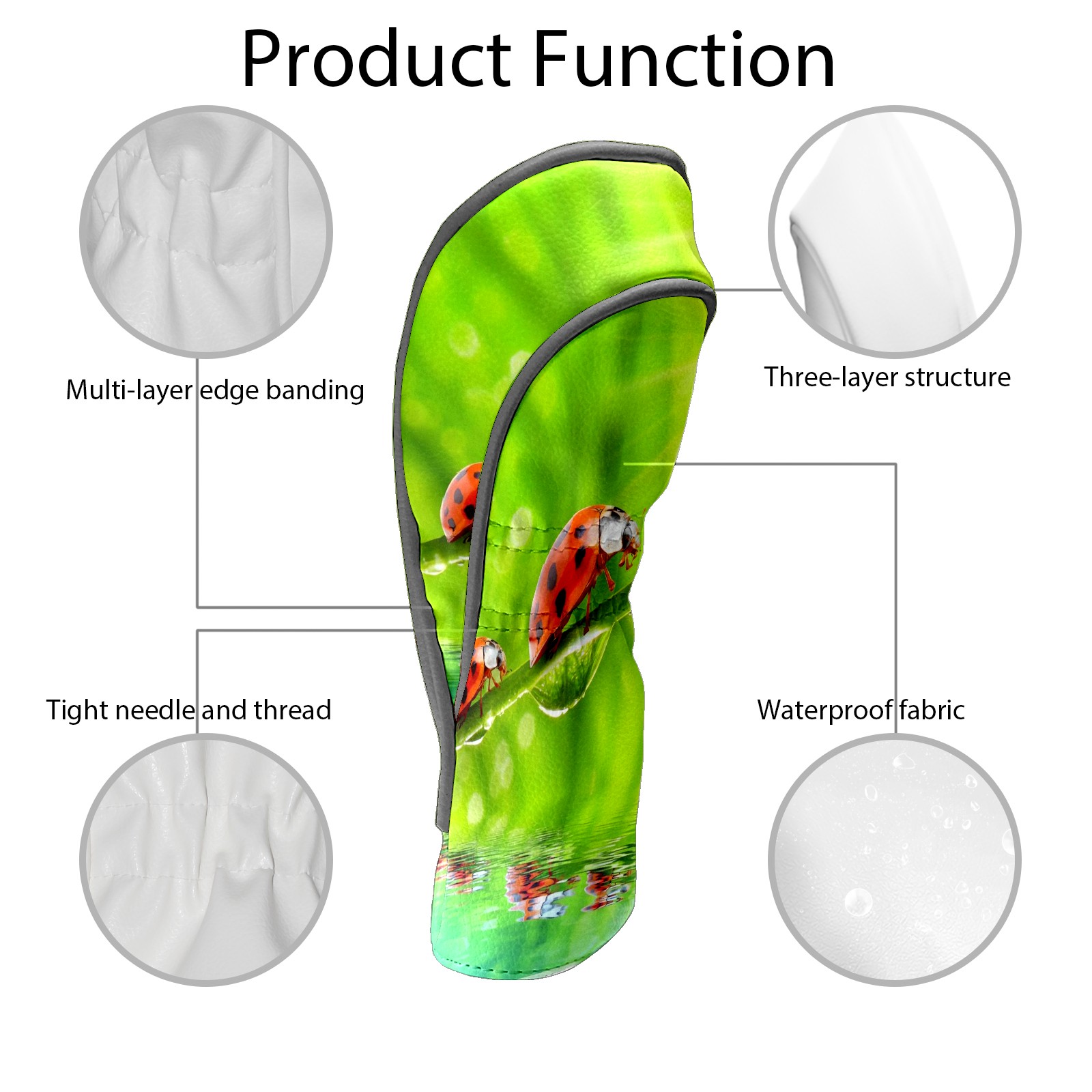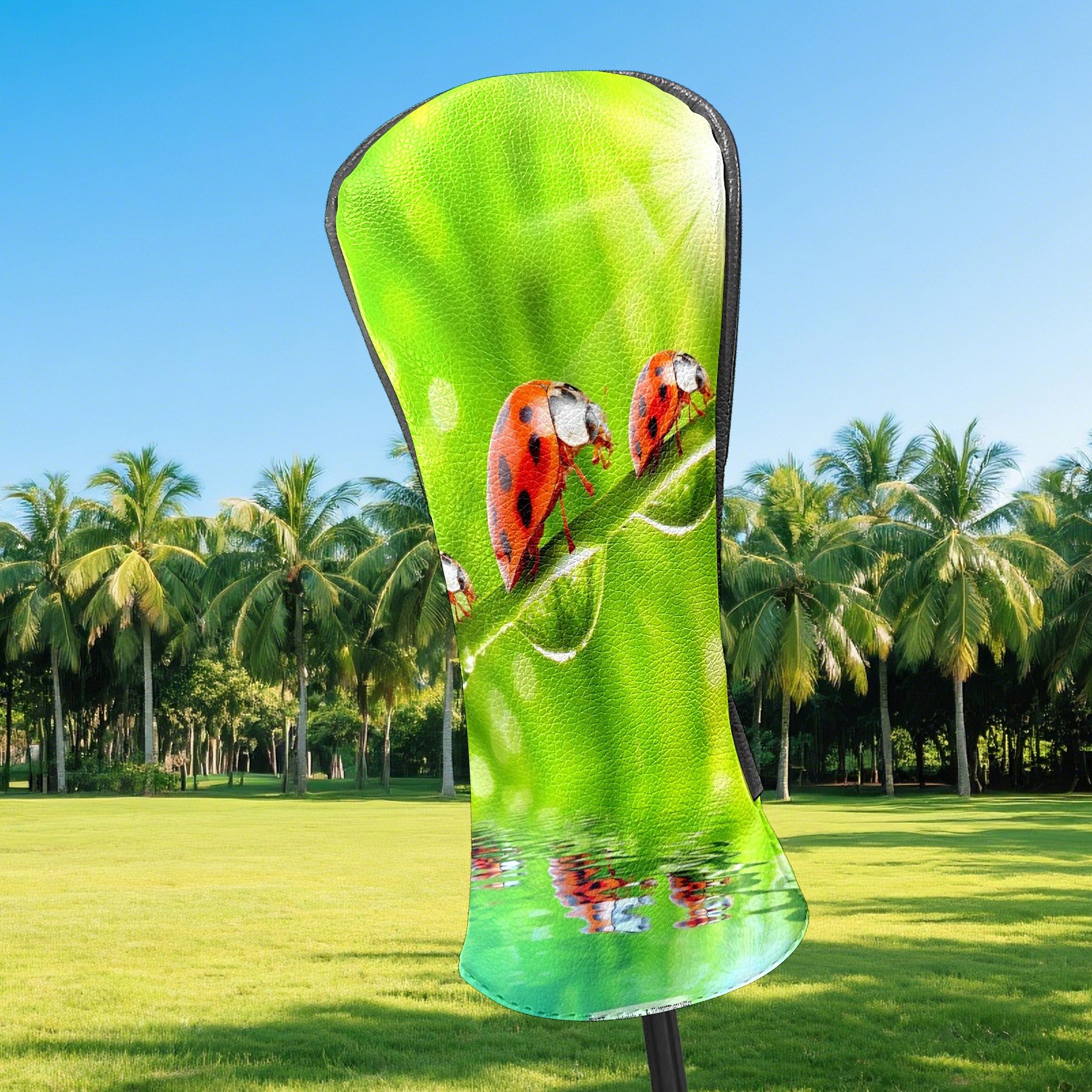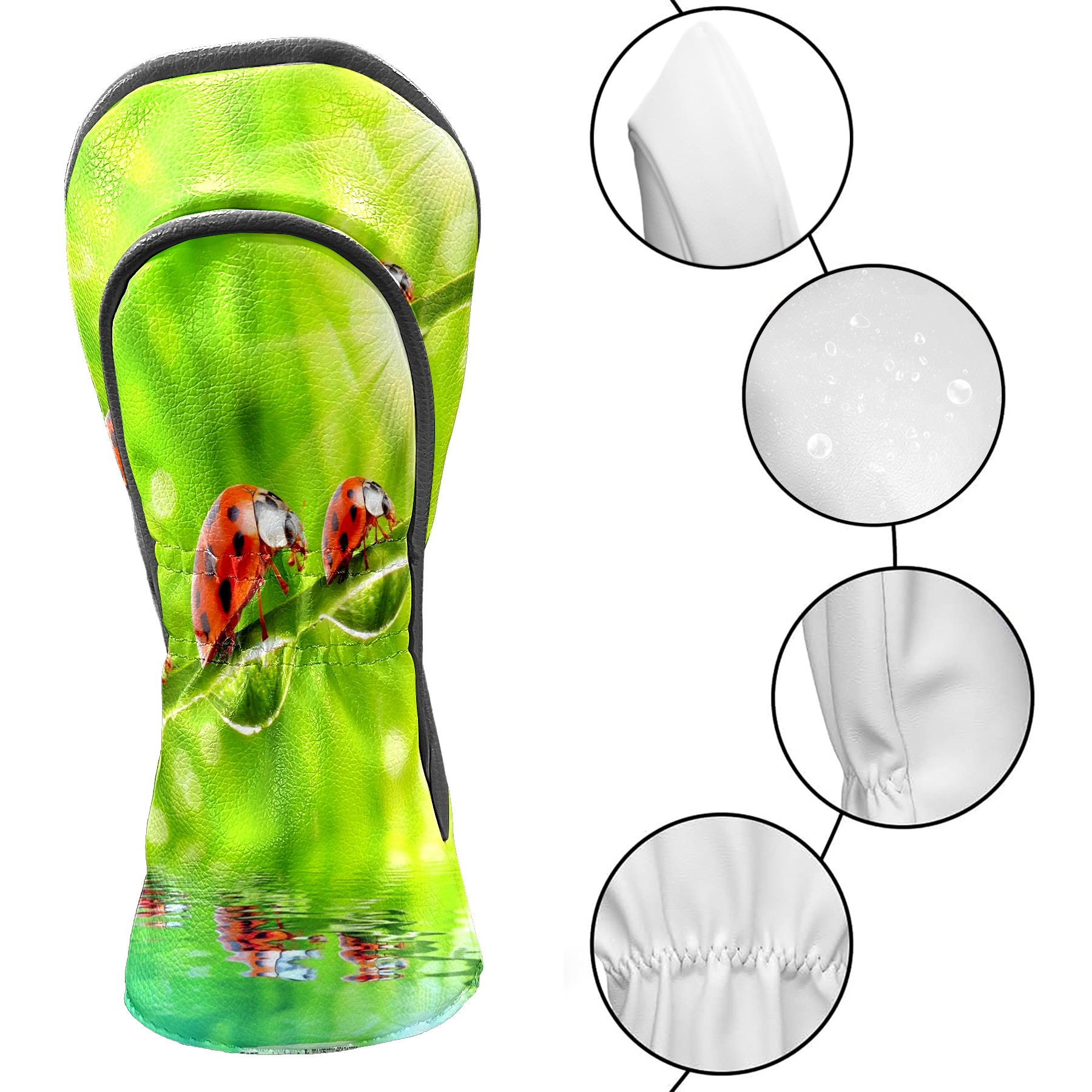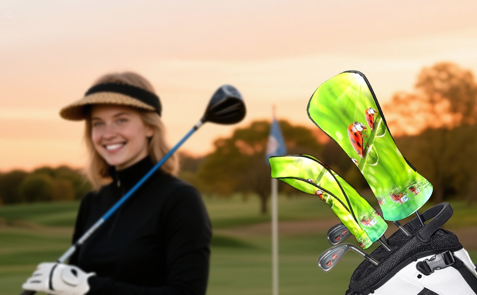 Golf Driver Head Covers Fairway Wood Headcovers, Premium Leather Golf Club Covers with Anti-Scratch Lining 1/3/5 Wood Cover for golf clubs for Women Men (Ladybugs Green (1))