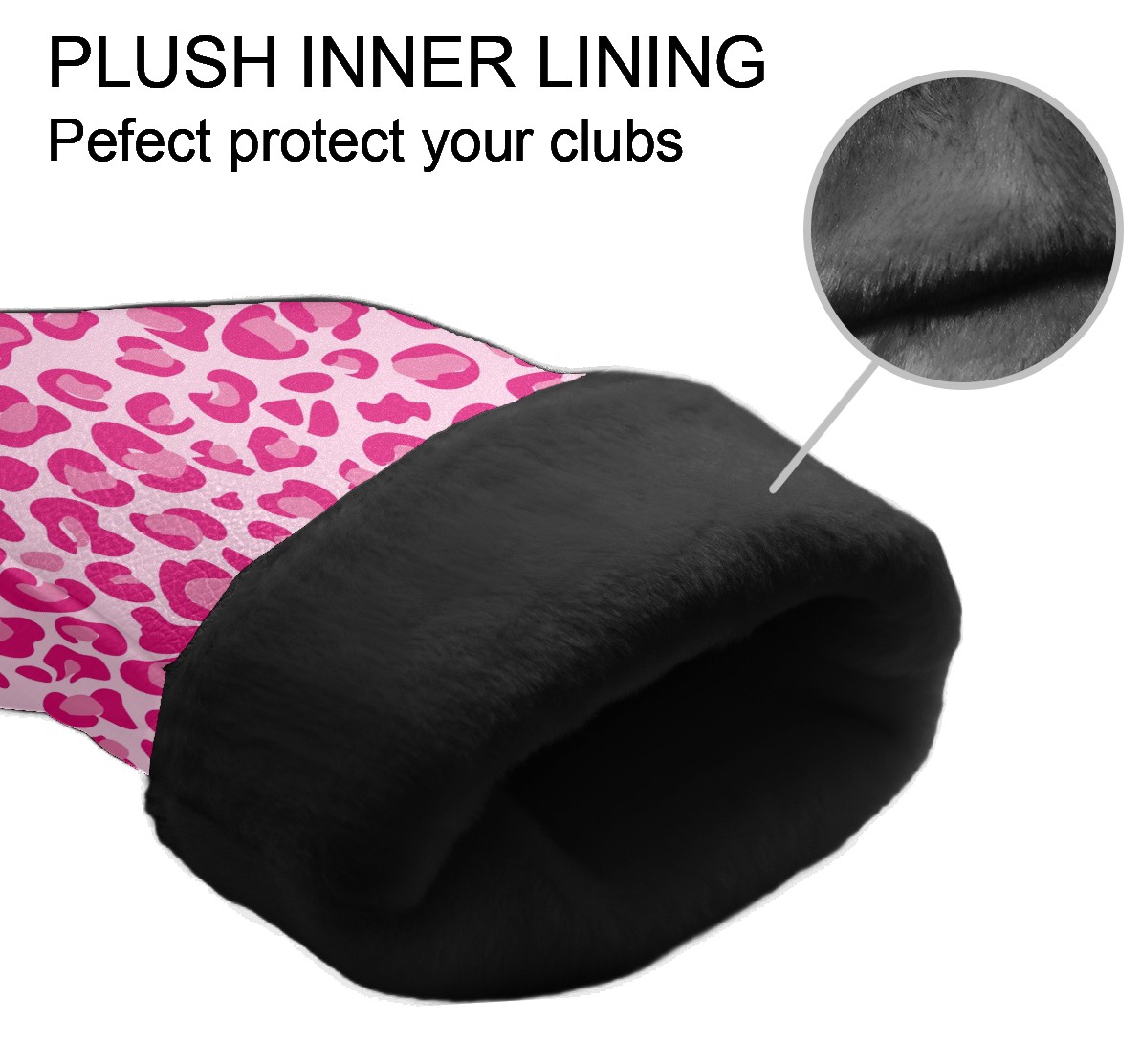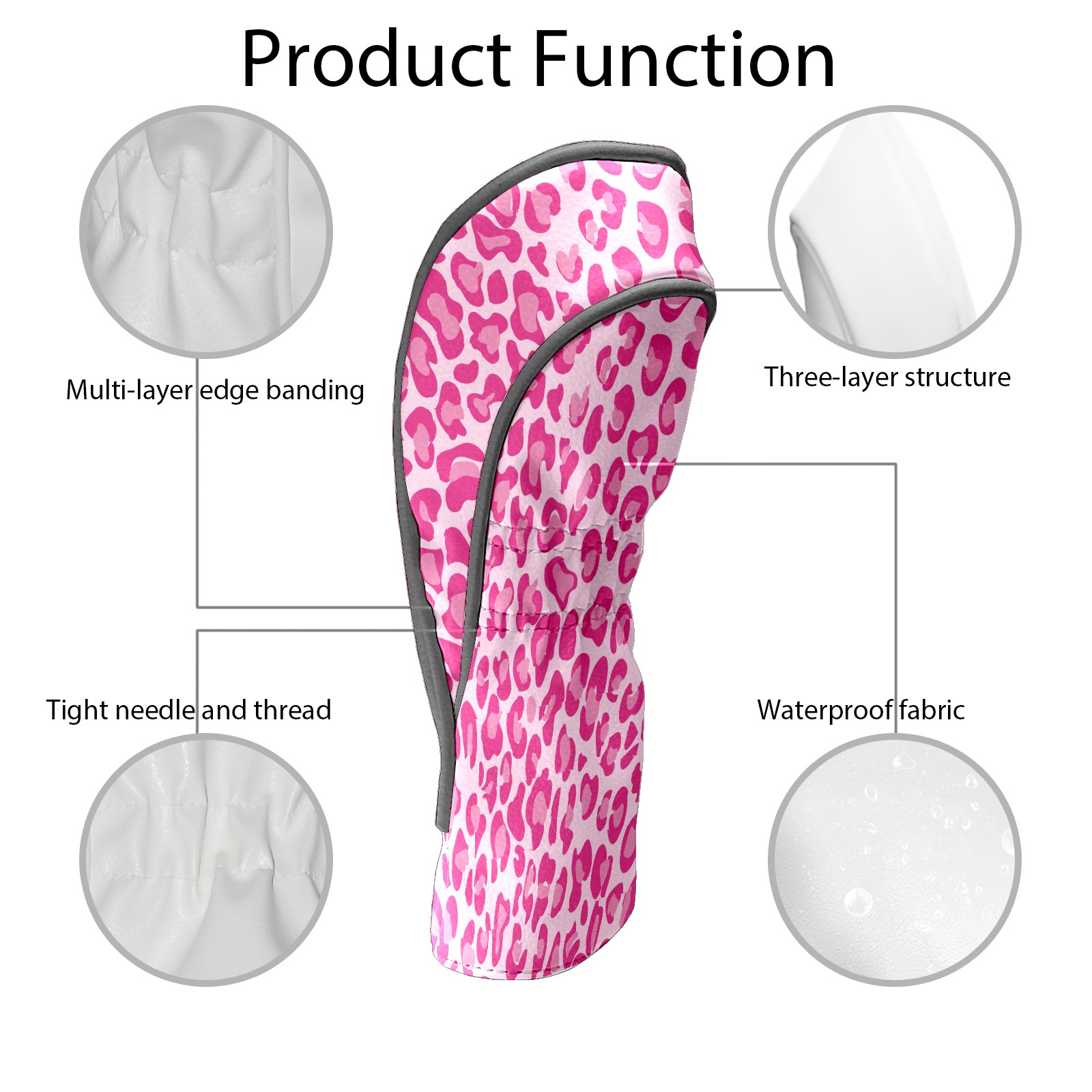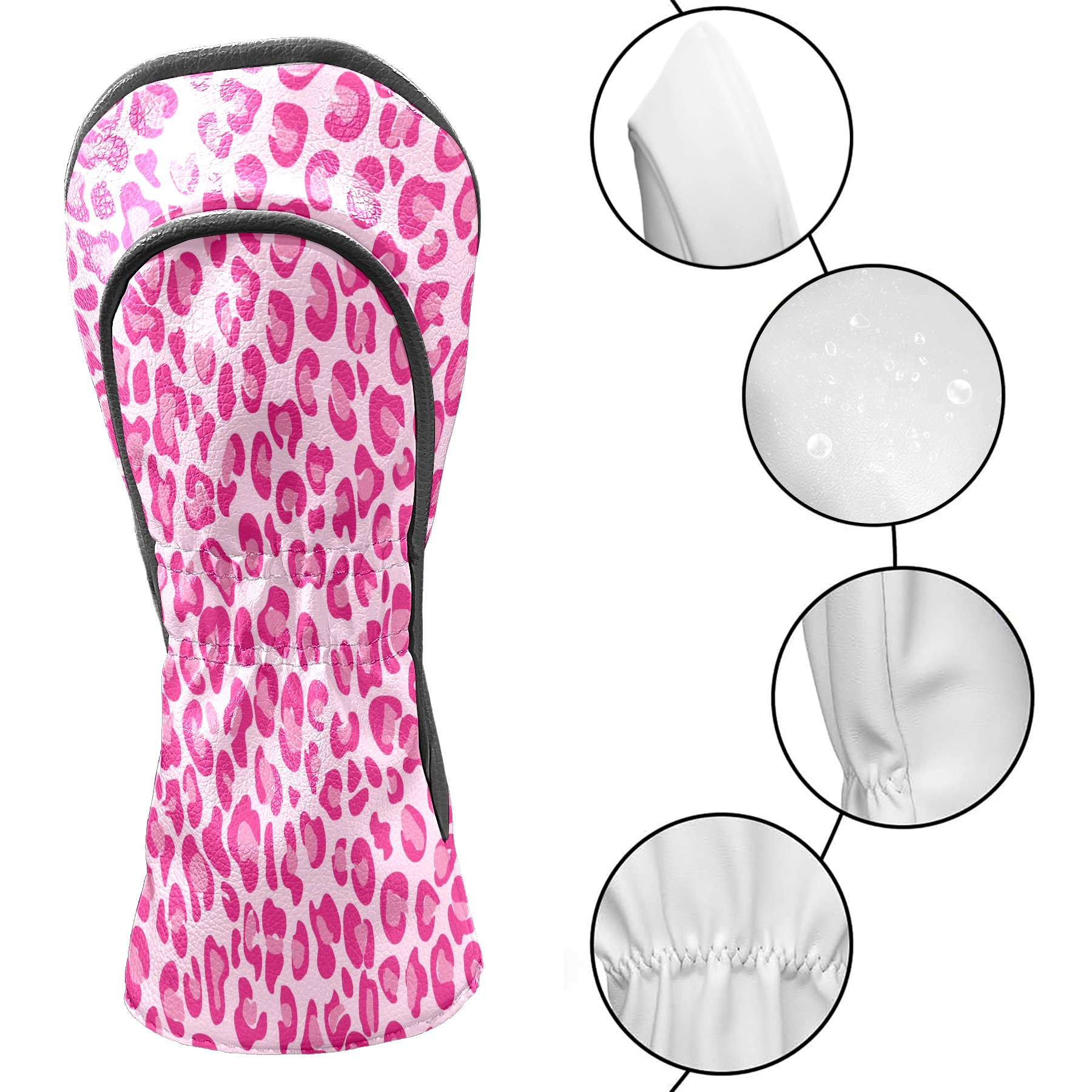 Golf Driver Head Covers Fairway Wood Headcovers, Premium Leather Golf Club Covers with Anti-Scratch Lining 1/3/5 Wood Cover for golf clubs for Women Men (Pink Leopard Print)