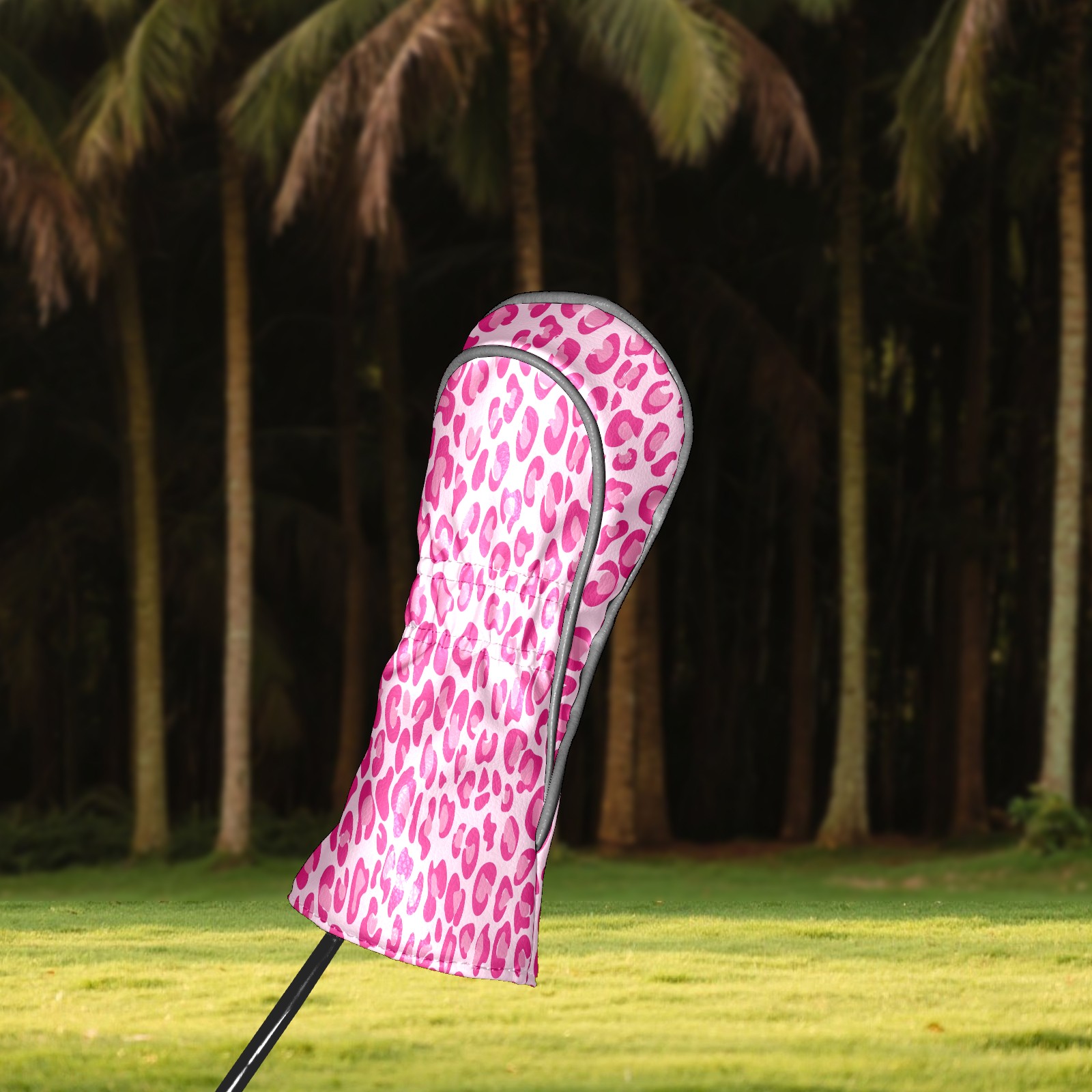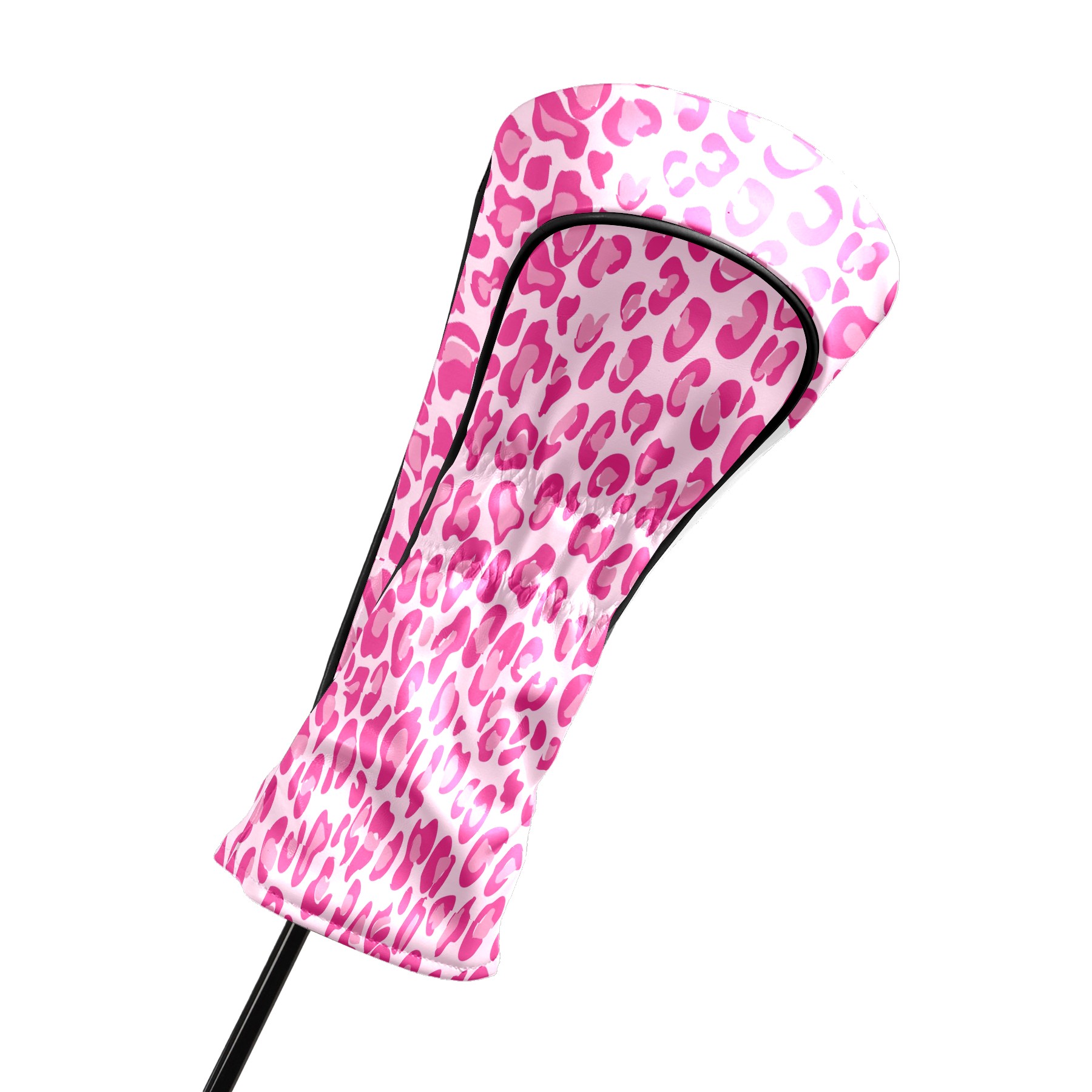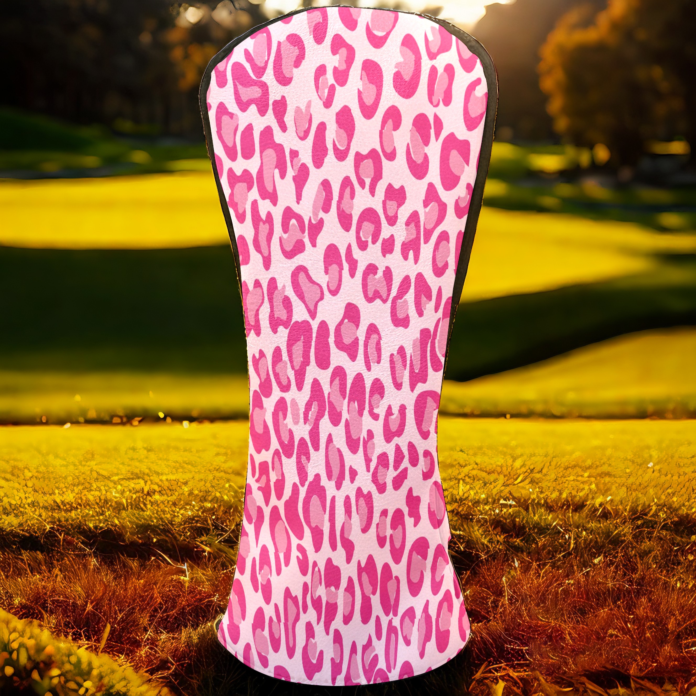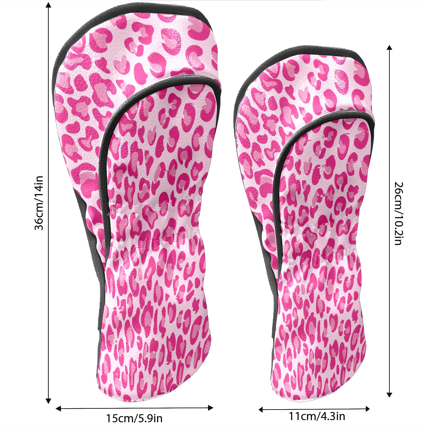 Golf Driver Head Covers Fairway Wood Headcovers, Premium Leather Golf Club Covers with Anti-Scratch Lining 1/3/5 Wood Cover for golf clubs for Women Men (Pink Leopard Print)
