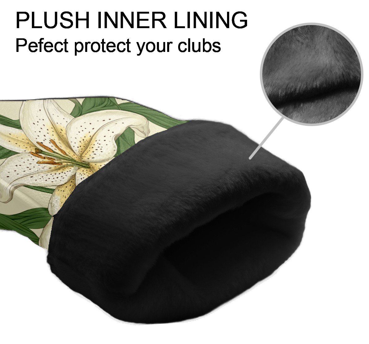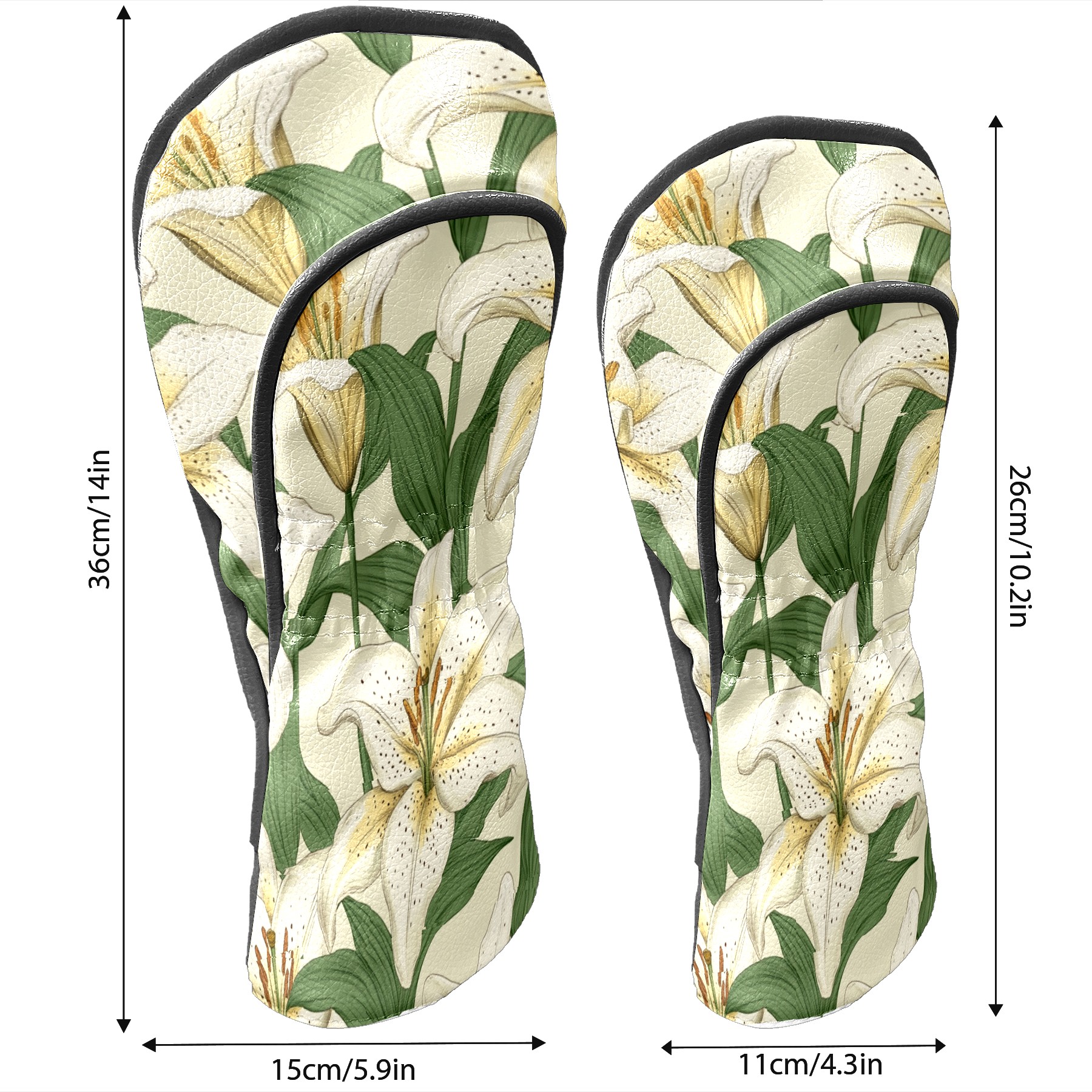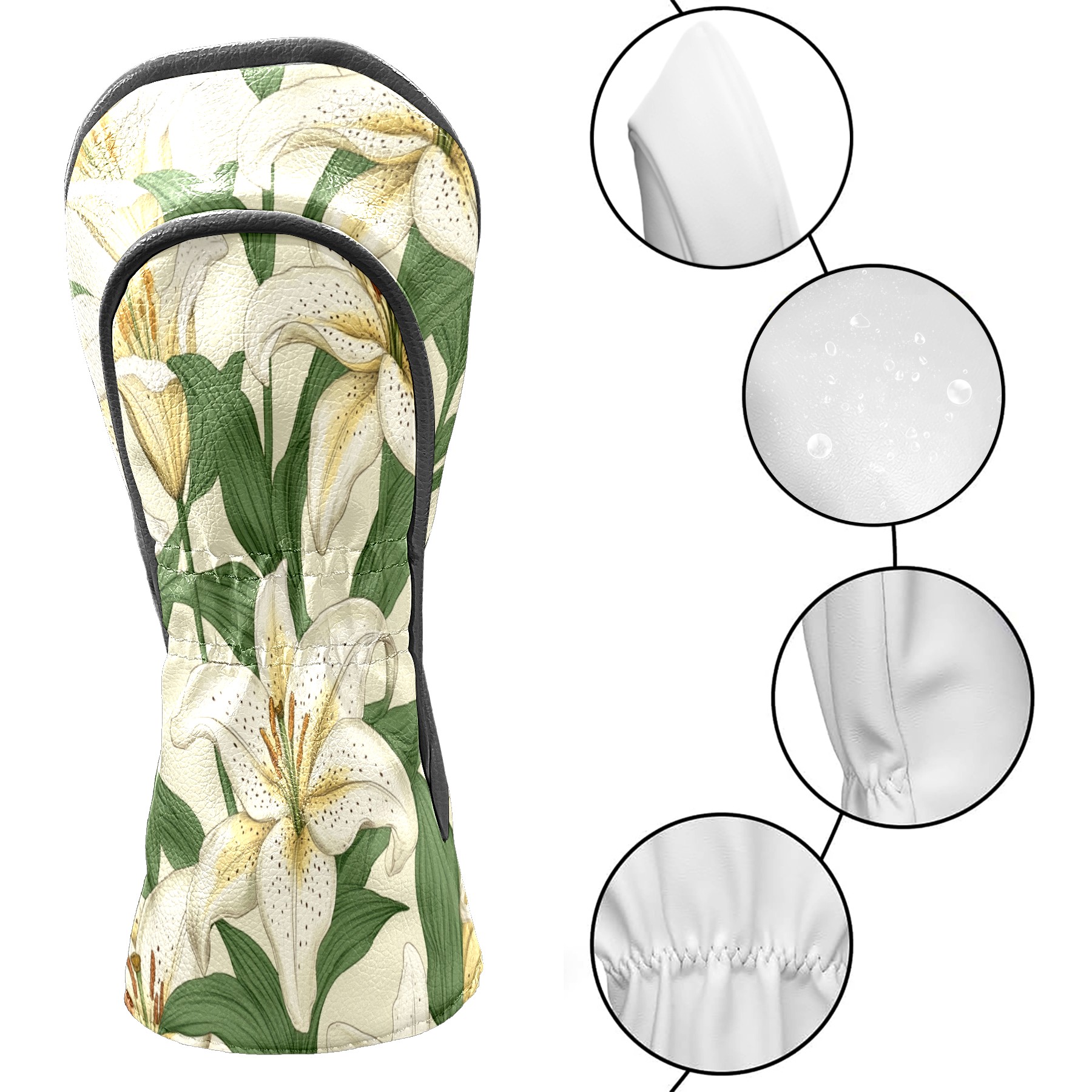 Golf Club Covers PU Leather Waterproof,Golf Club Head Covers for Fairway Woods and Hybrids Light Yellow Lilies Unisex Suitable for Most Brands