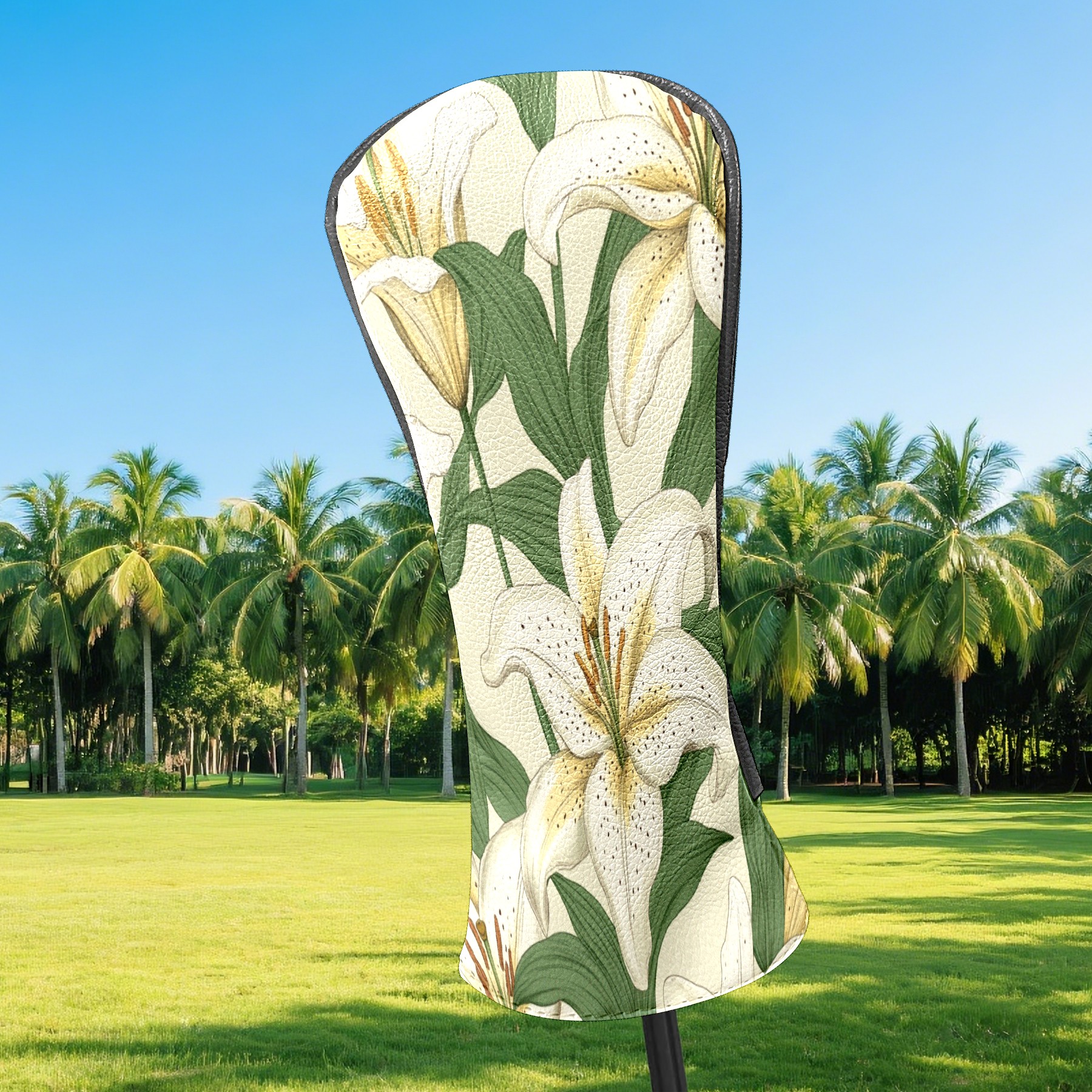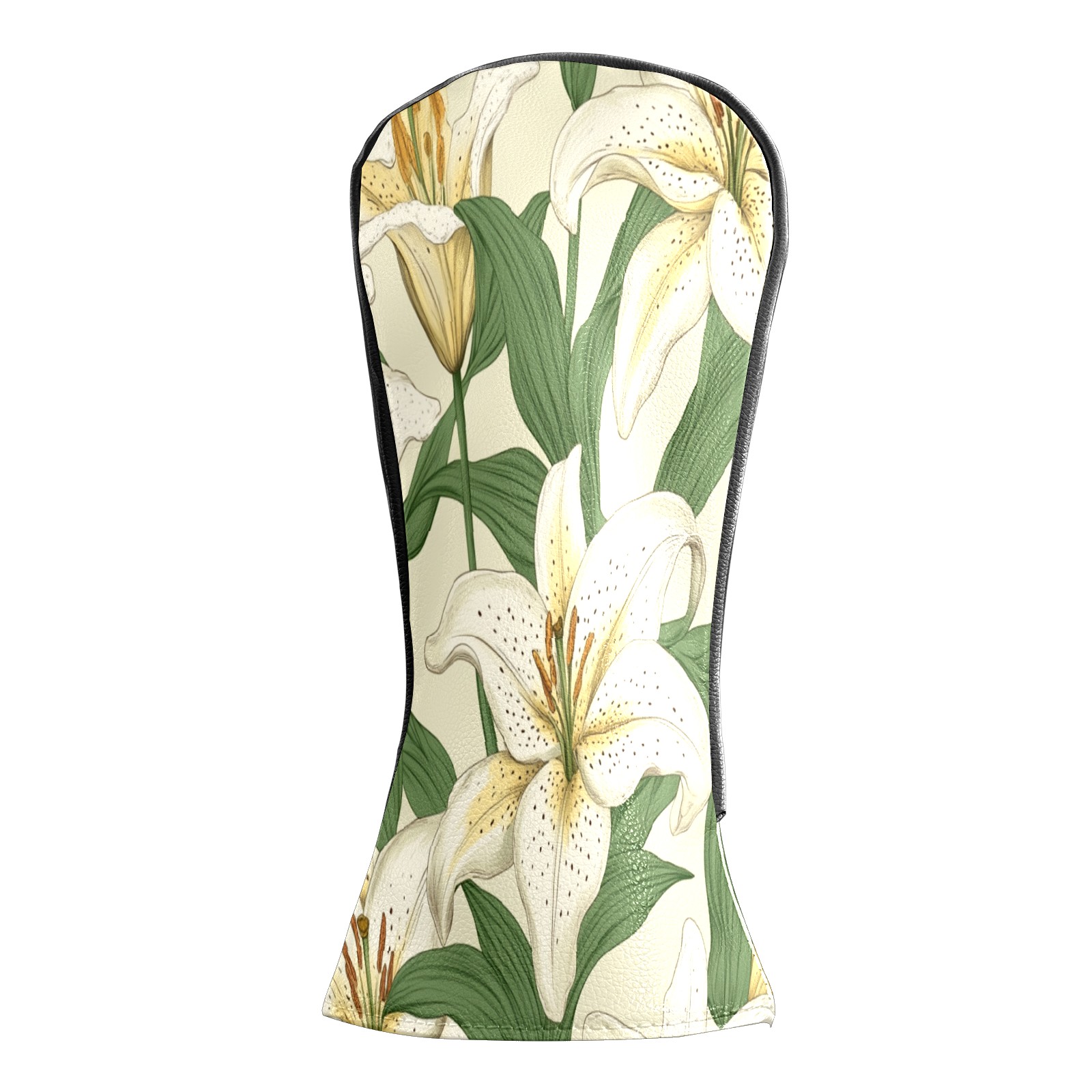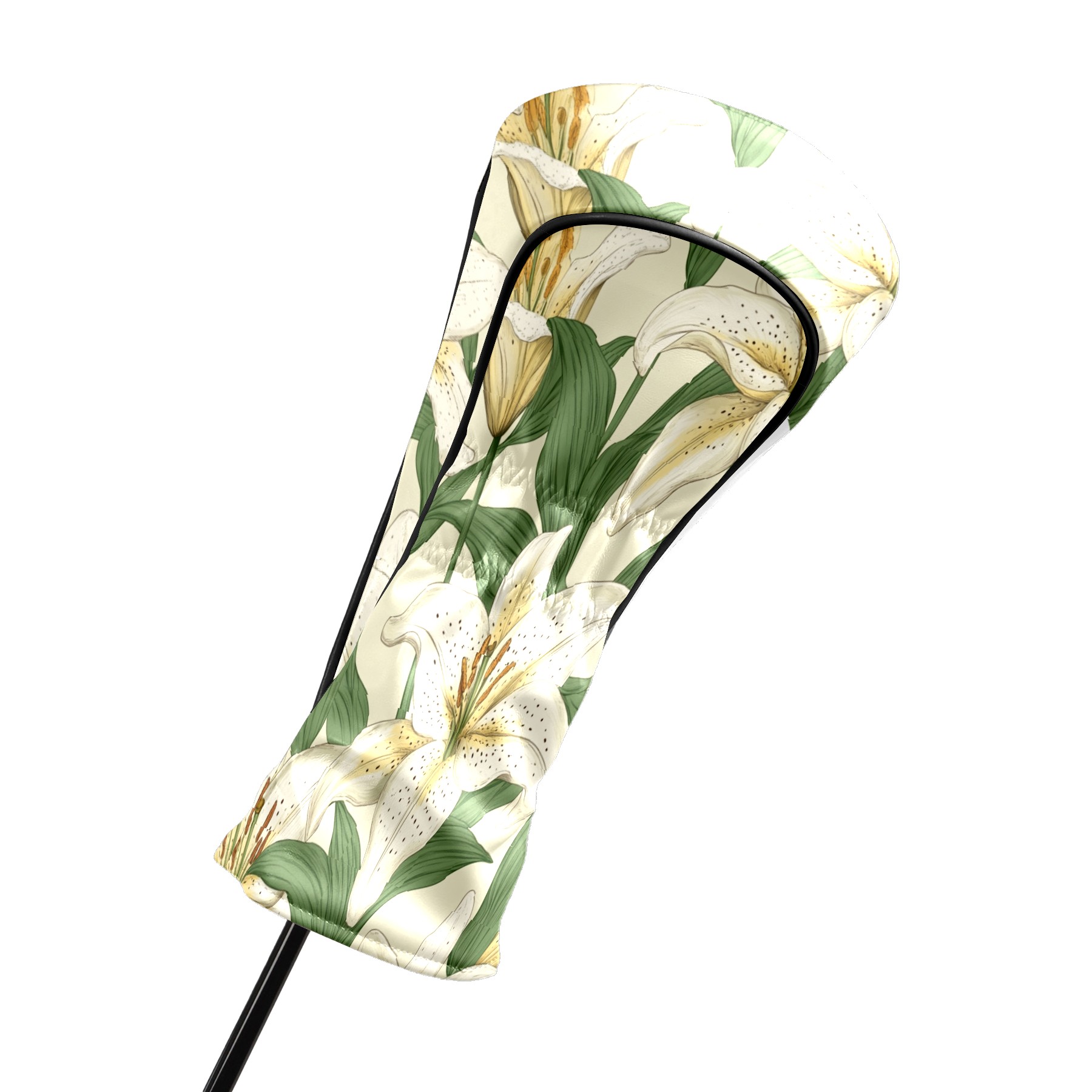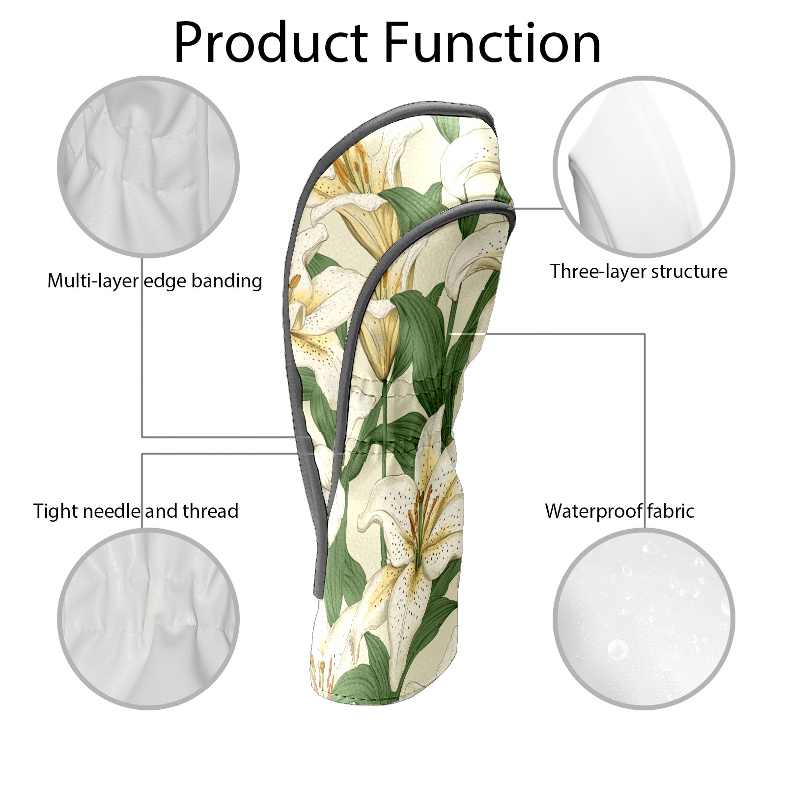 Golf Club Covers PU Leather Waterproof,Golf Club Head Covers for Fairway Woods and Hybrids Light Yellow Lilies Unisex Suitable for Most Brands