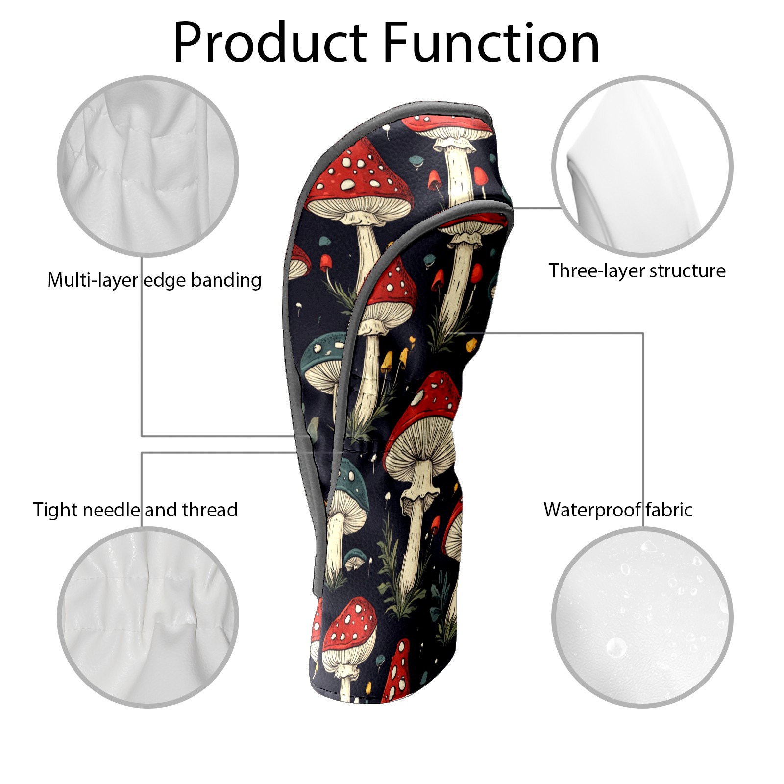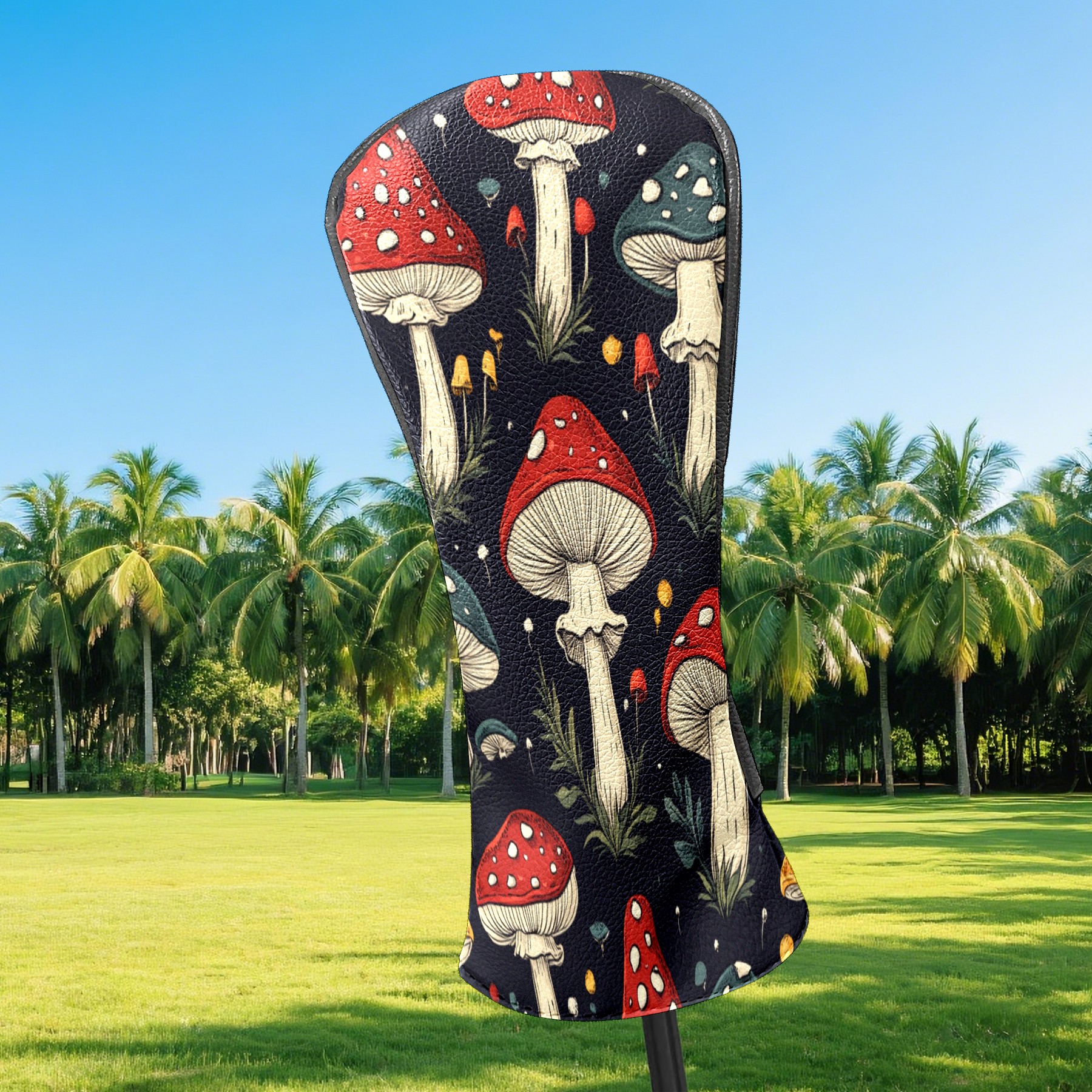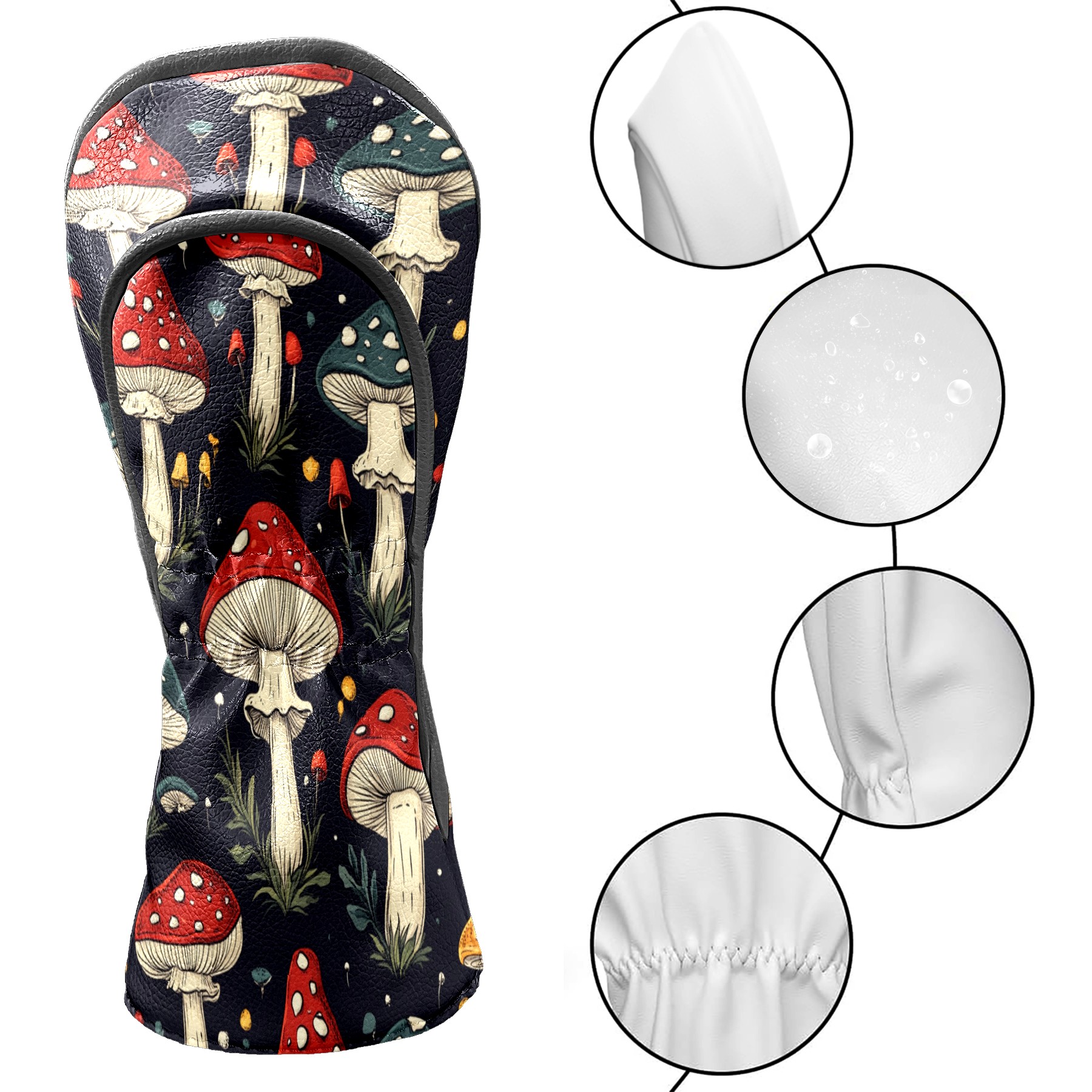 Golf Club Covers PU Leather Waterproof,Golf Club Head Covers for Fairway Woods and Hybrids Mushroom Pattern Unisex Suitable for Most Brands