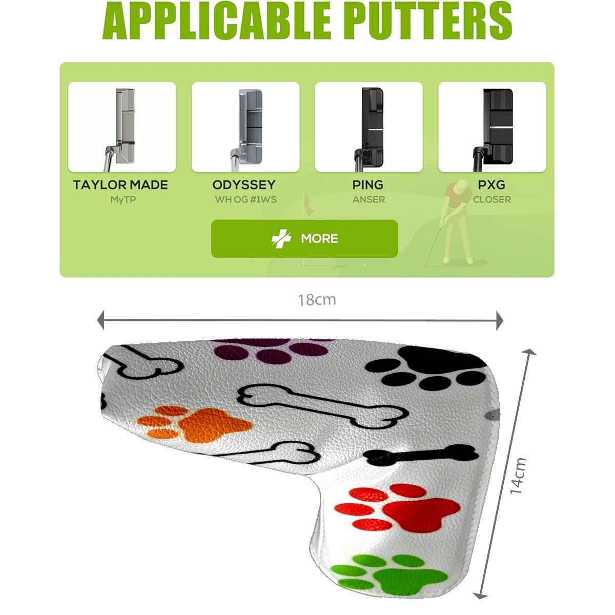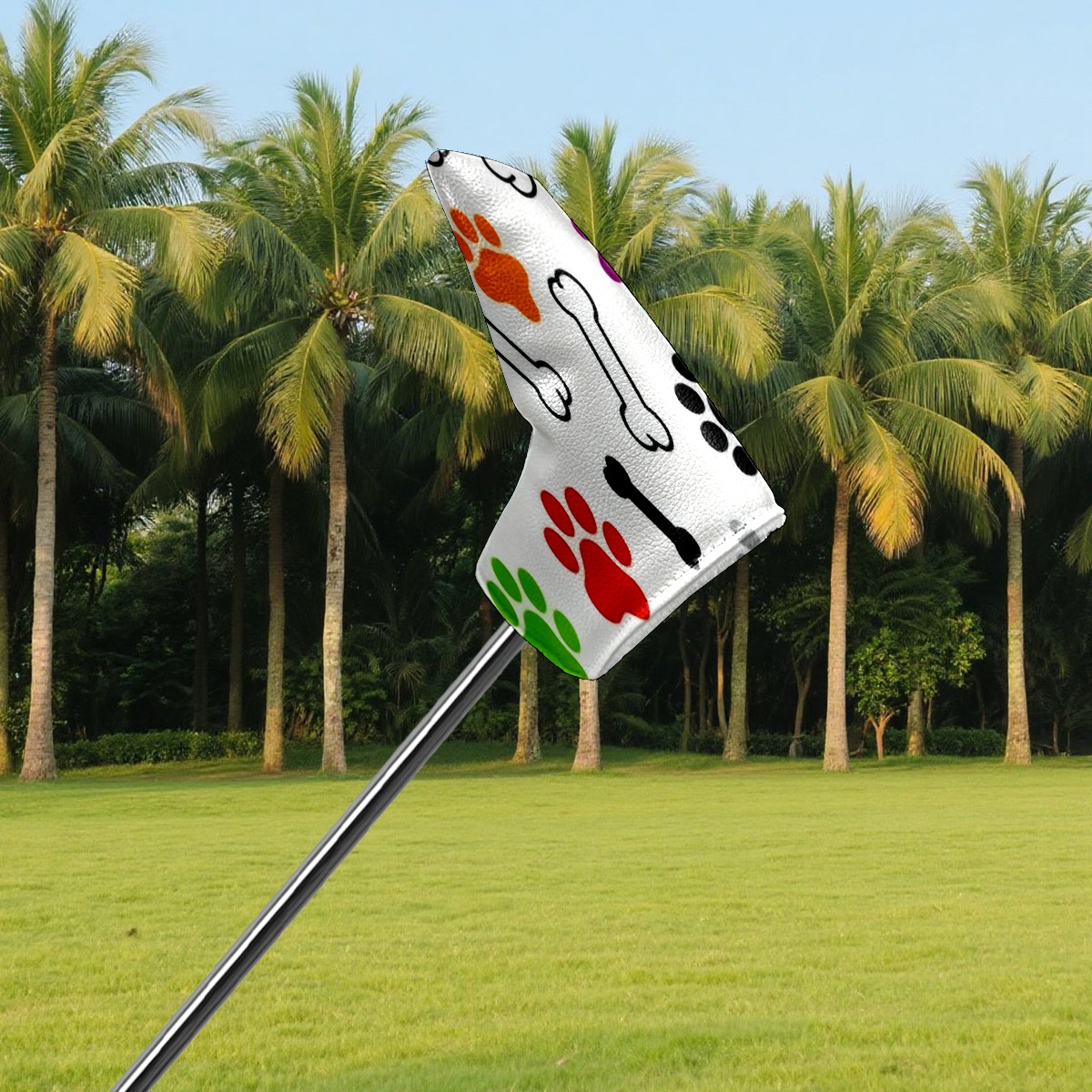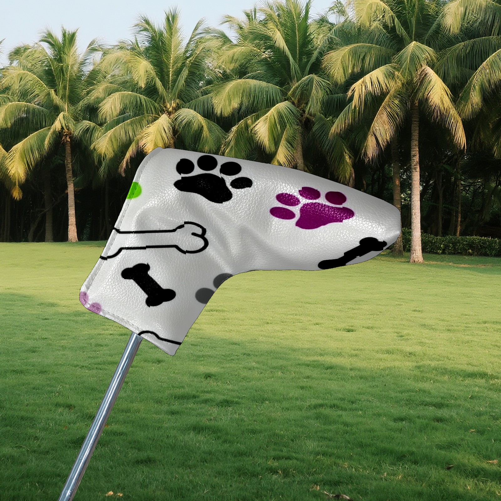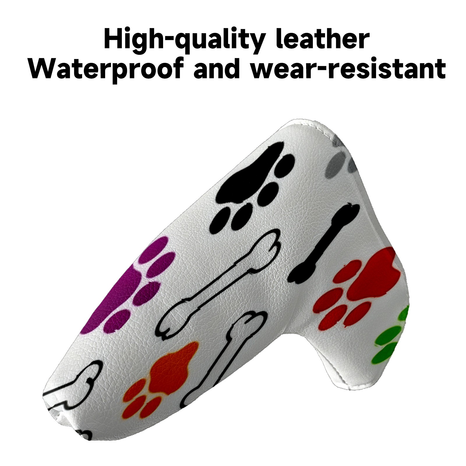Golf Putter Cover, Water Resistant and Fleece Lined Golf Club Head Covers, PU Leather Head Covers for Men and Women Golfers Bone Footprints