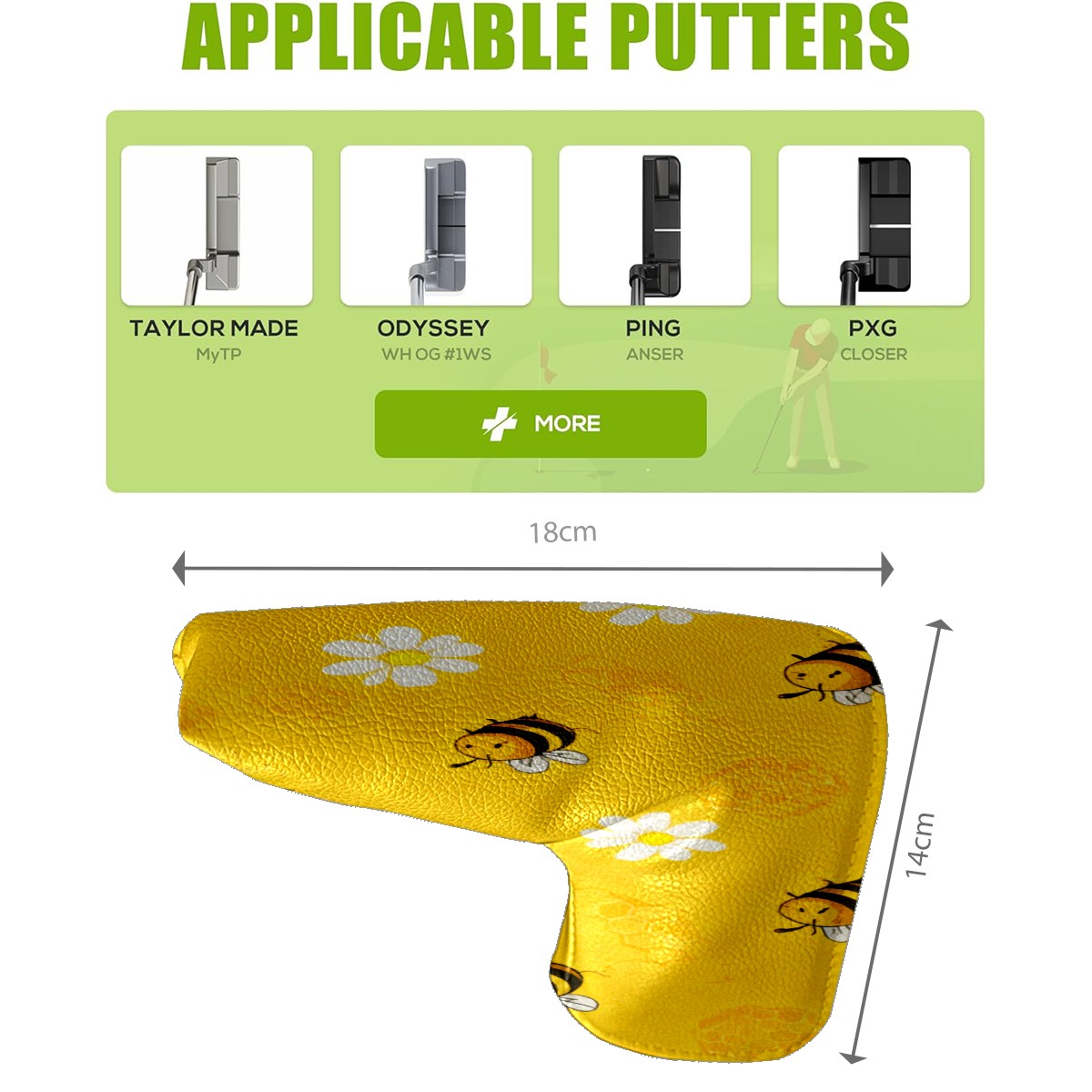 Golf Putter Cover, Water Resistant and Fleece Lined Golf Club Head Covers, PU Leather Head Covers for Men and Women Golfers Bee