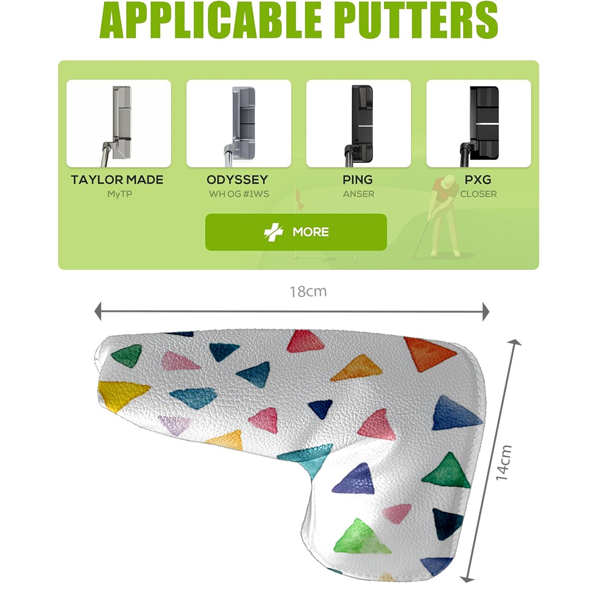 • <p>In the world of golfing equipment, the details often show professionalism and care. We carefully present this putter head protector as a classic golf accessory that will bring a new upgrade to your golf experience. It is a fusion of precision and fashion. The exterior is made of high-quality leather with a tough and textured texture that can effectively resist wear and tear and scratches from daily use. The soft inner lining wraps a gentle protective film around the putter head, avoiding minor scratches and damages caused by collisions and prolonging the life of the putter. The unique closure design is the finishing touch, super strong adhesive force, no matter how you walk on the course, bumps, it is as stable as a mountain, will not easily fall off. It is very convenient to take off the putter cover and put it into the stroke with just one pull, so that every operation is smooth and natural. It is the crystallization of retro and practical. With a strong retro flavor, it pays tribute to the classic tradition of golf. Its shape perfectly fits the unique shape of a mallet putter, providing all-around wrap-around protection for the putter head. The design of the mallet putter head protector is inspired by the golden age of golf, and the retro pattern and color combination make people feel as if they have traveled through time and space to experience the deep historical heritage of the game of golf. Whether on a traditional style golf course or a modern and fashionable course, it fits perfectly and adds a unique charm to your clubs.<br></p>