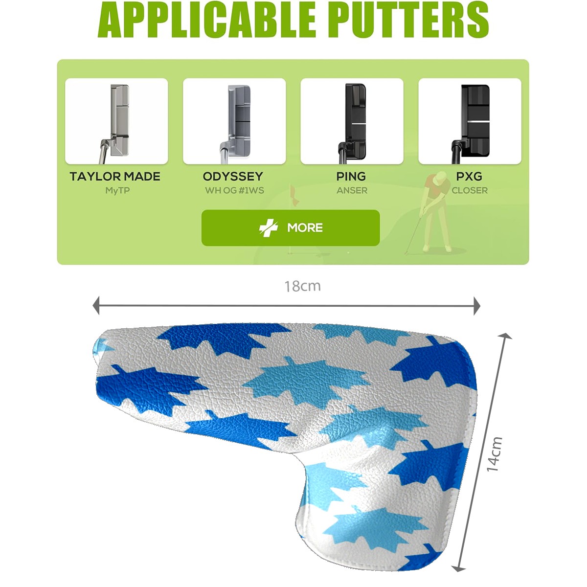 Golf Putter Cover, Water Resistant and Fleece Lined Golf Club Head Covers, PU Leather Head Covers for Men and Women Golfers Blue