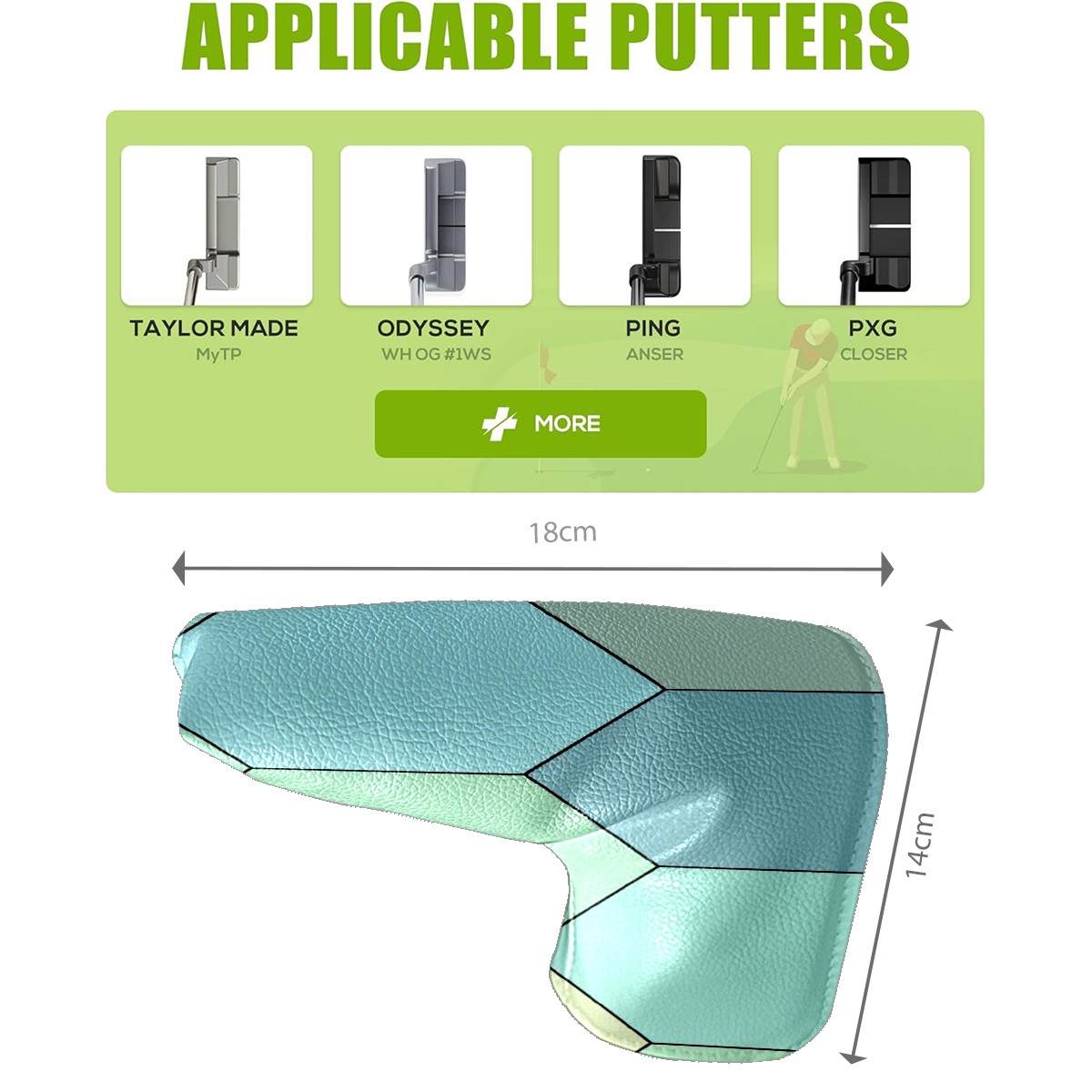 • <p>In the world of golfing equipment, the details often show professionalism and care. We carefully present this putter head protector as a classic golf accessory that will bring a new upgrade to your golf experience. It is a fusion of precision and fashion. The exterior is made of high-quality leather with a tough and textured texture that can effectively resist wear and tear and scratches from daily use. The soft inner lining wraps a gentle protective film around the putter head, avoiding minor scratches and damages caused by collisions and prolonging the life of the putter. The unique closure design is the finishing touch, super strong adhesive force, no matter how you walk on the course, bumps, it is as stable as a mountain, will not easily fall off. It is very convenient to take off the putter cover and put it into the stroke with just one pull, so that every operation is smooth and natural. It is the crystallization of retro and practical. With a strong retro flavor, it pays tribute to the classic tradition of golf. Its shape perfectly fits the unique shape of a mallet putter, providing all-around wrap-around protection for the putter head. The design of the mallet putter head protector is inspired by the golden age of golf, and the retro pattern and color combination make people feel as if they have traveled through time and space to experience the deep historical heritage of the game of golf. Whether on a traditional style golf course or a modern and fashionable course, it fits perfectly and adds a unique charm to your clubs.<br></p>