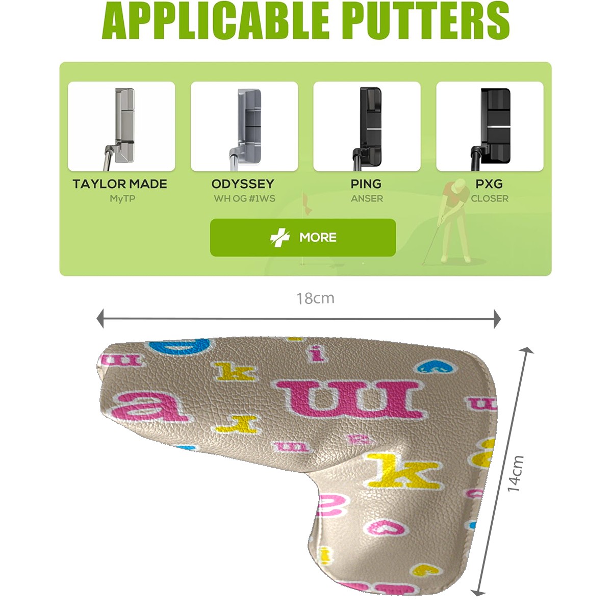 Golf Putter Cover, Water Resistant and Fleece Lined Golf Club Head Covers, PU Leather Head Covers for Men and Women Golfers Letter