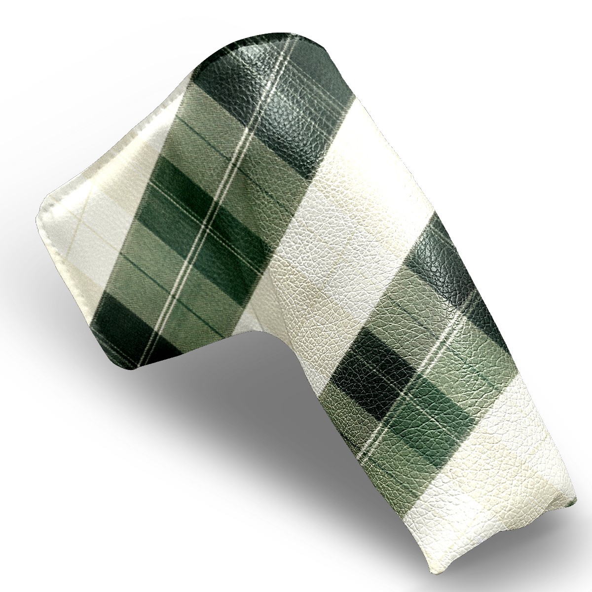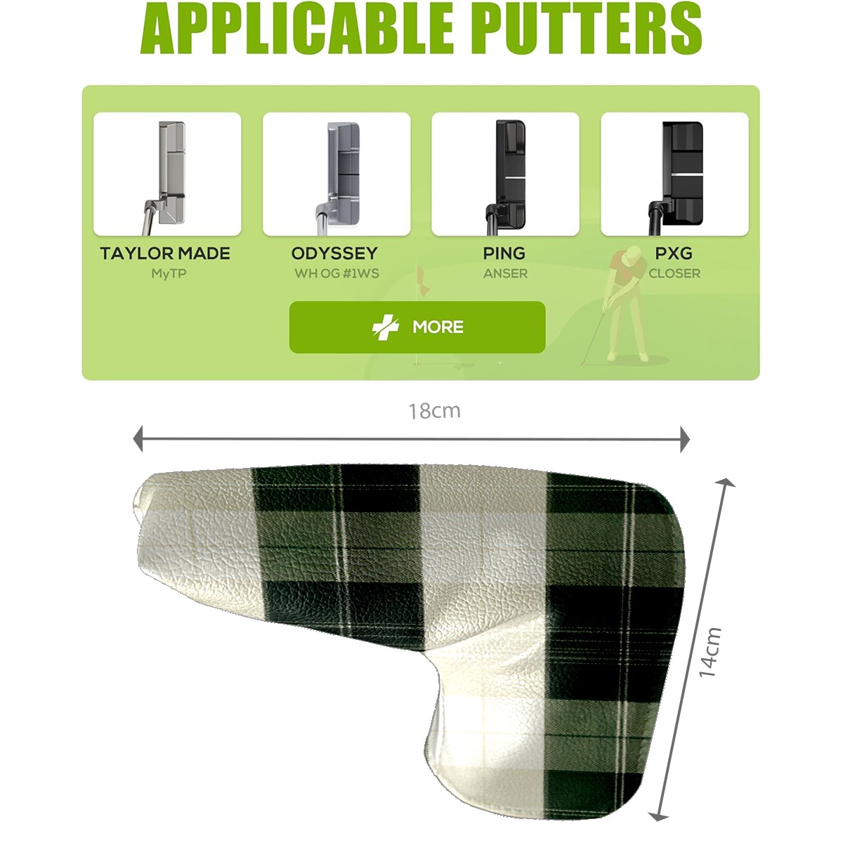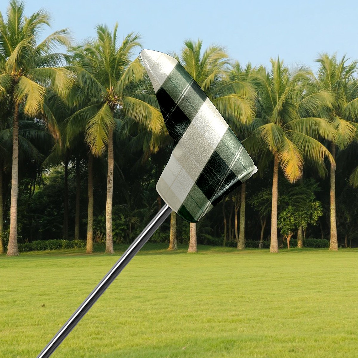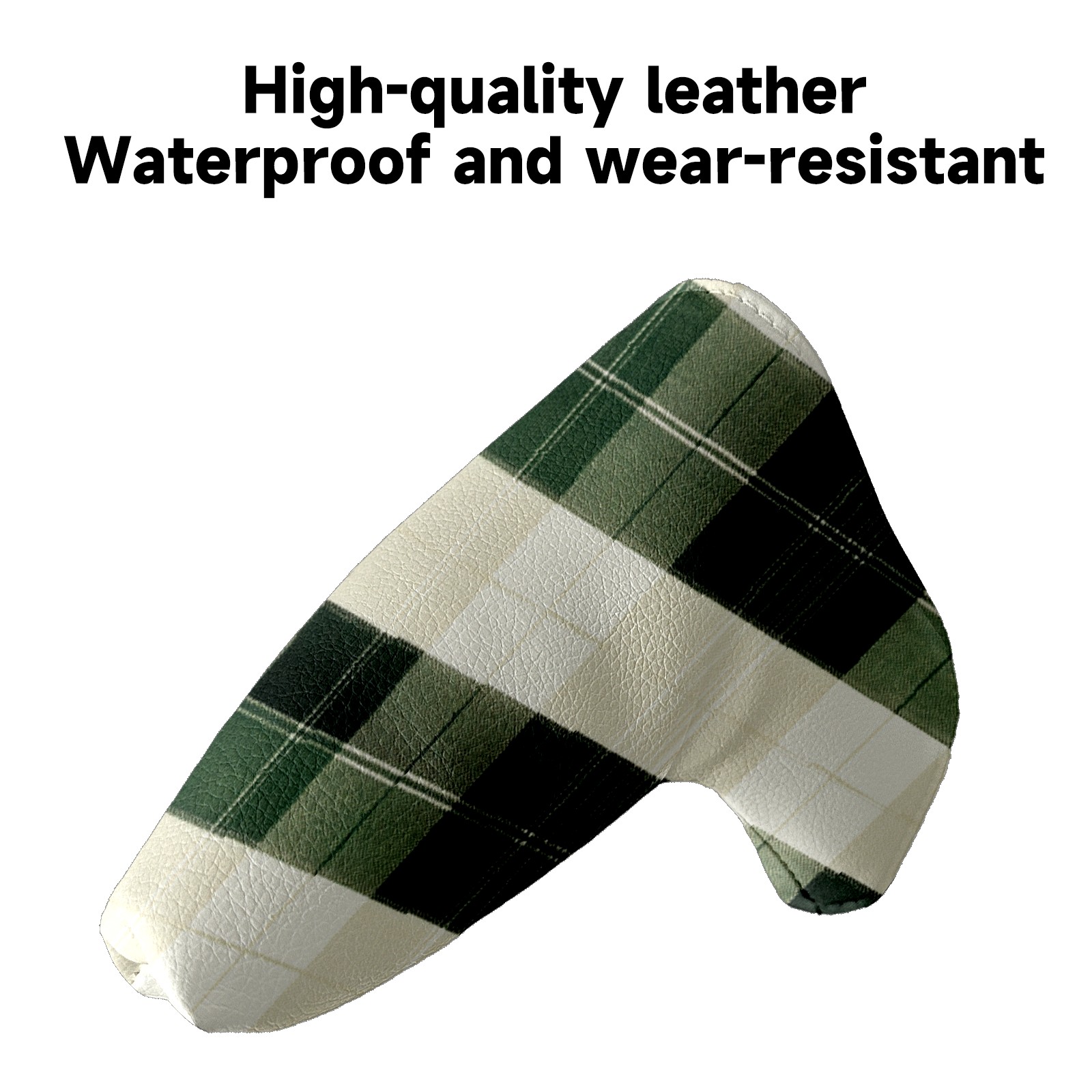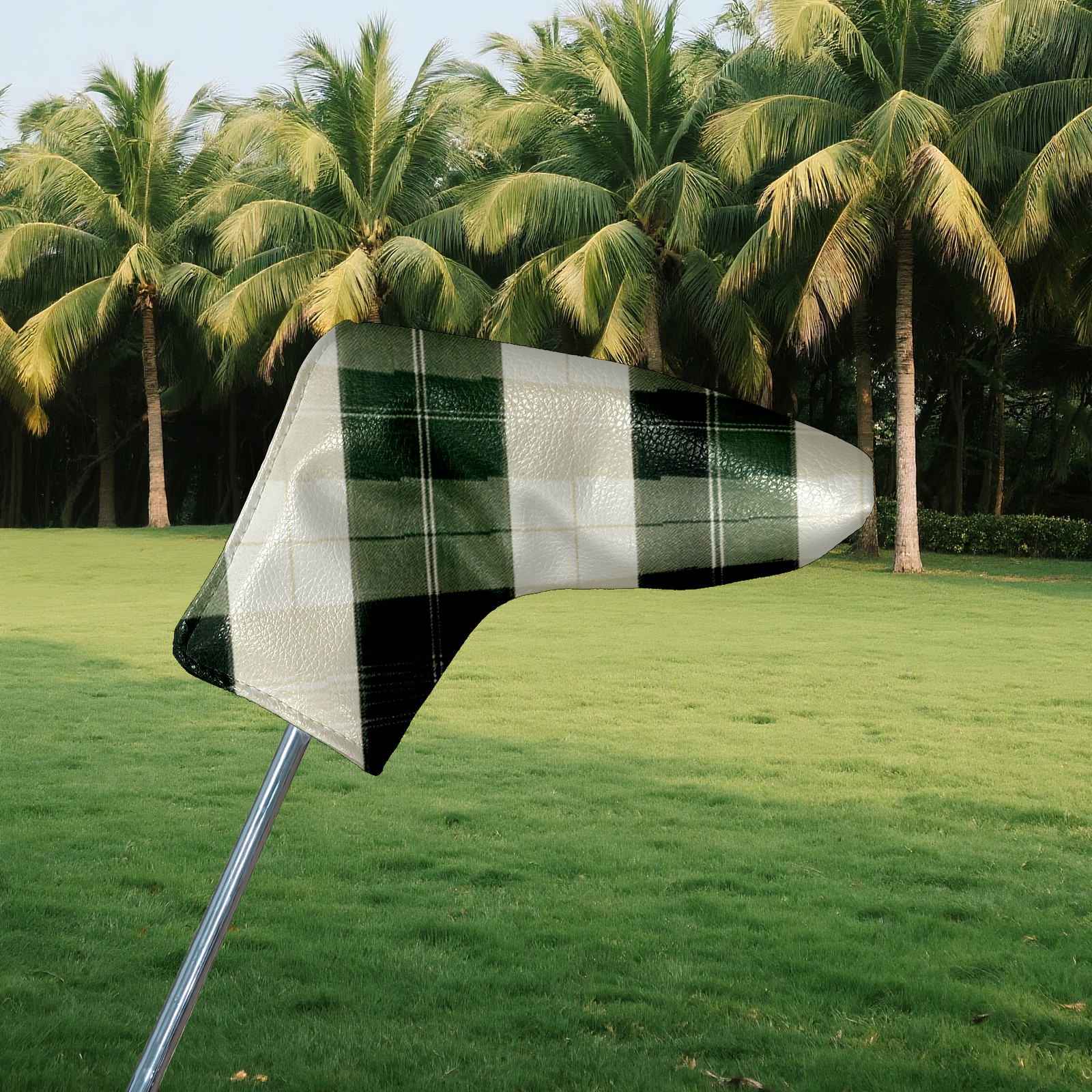 Golf Putter Cover, Water Resistant and Fleece Lined Golf Club Head Covers, PU Leather Head Covers for Men and Women Golfers Green Checkered Pattern